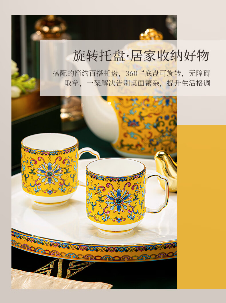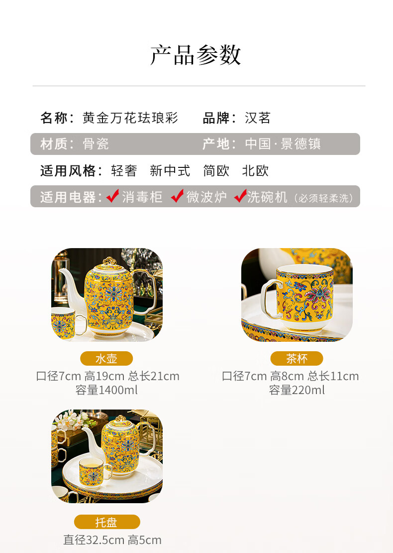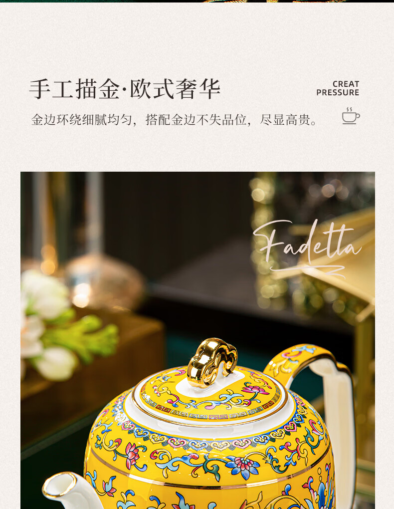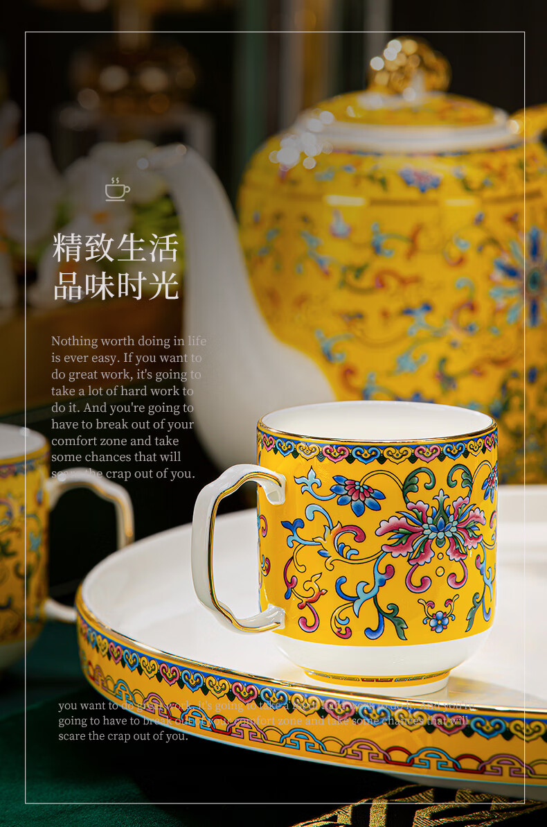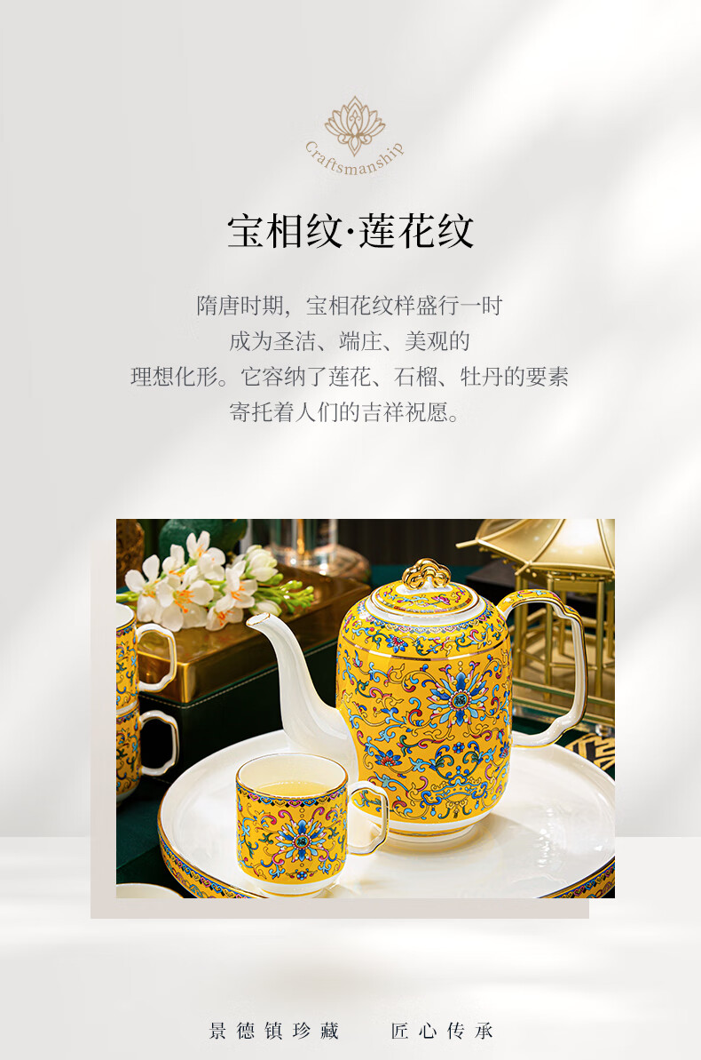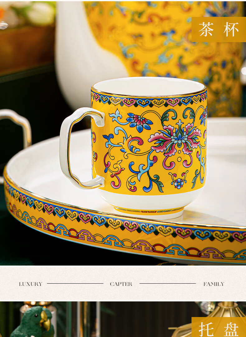 Hanming Jingdezhen Enamel Tea Set High-end Housewarming Gift Ceramic Teapot Water Cup Living Room Household Cup Set High-end Bone China Tea Set 8-piece Gift Box