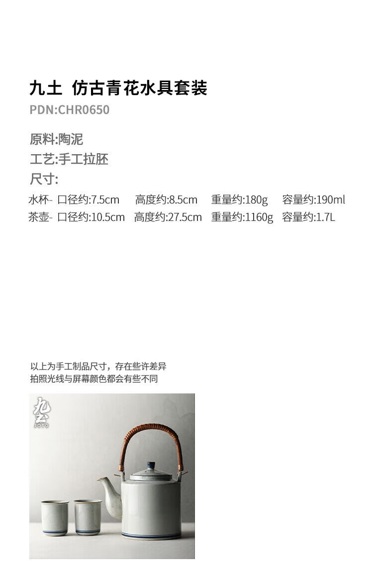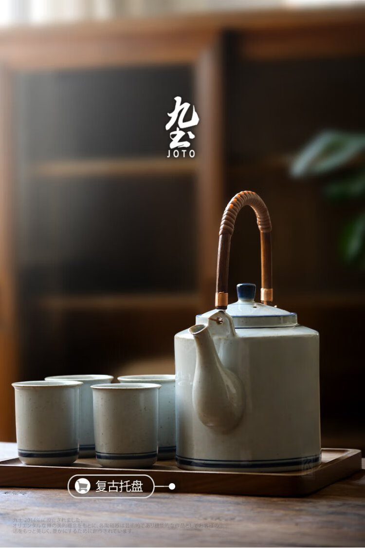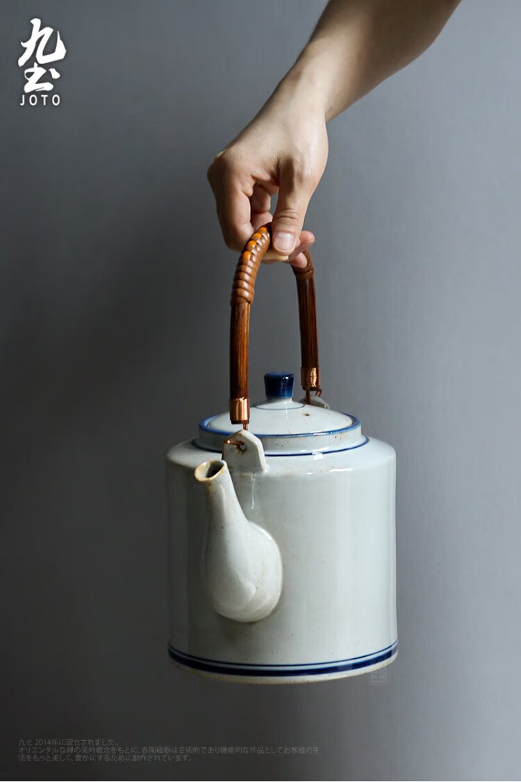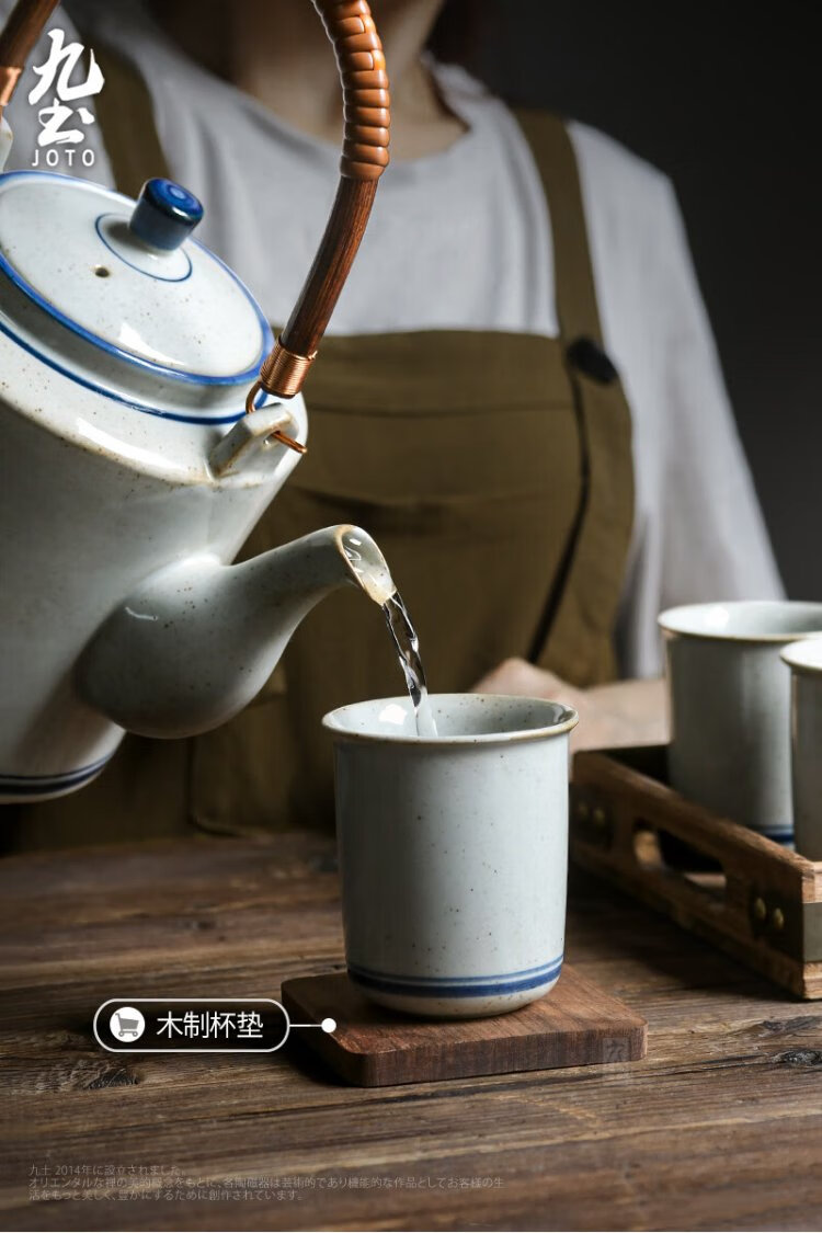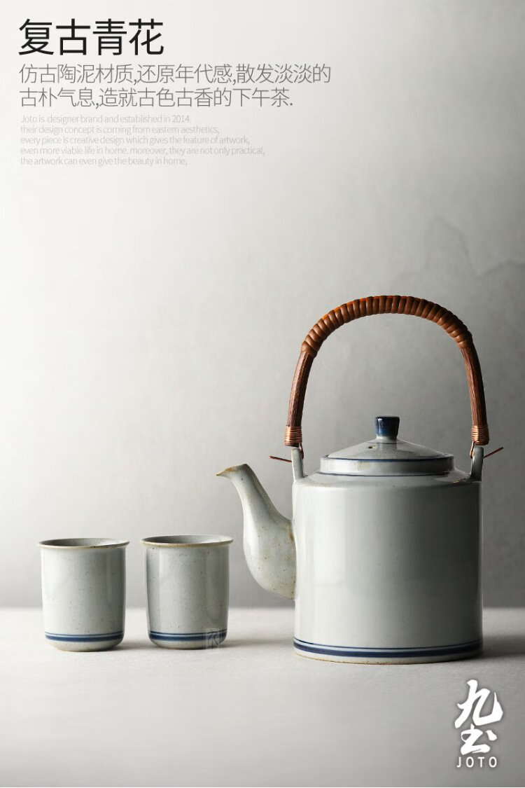 Jiutu household ceramic cold kettle large capacity old-fashioned retro teapot blue and white underglaze color cold kettle teacup blue and white water cup