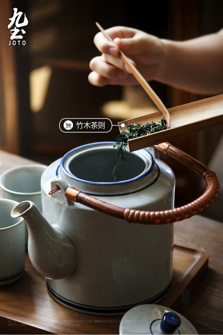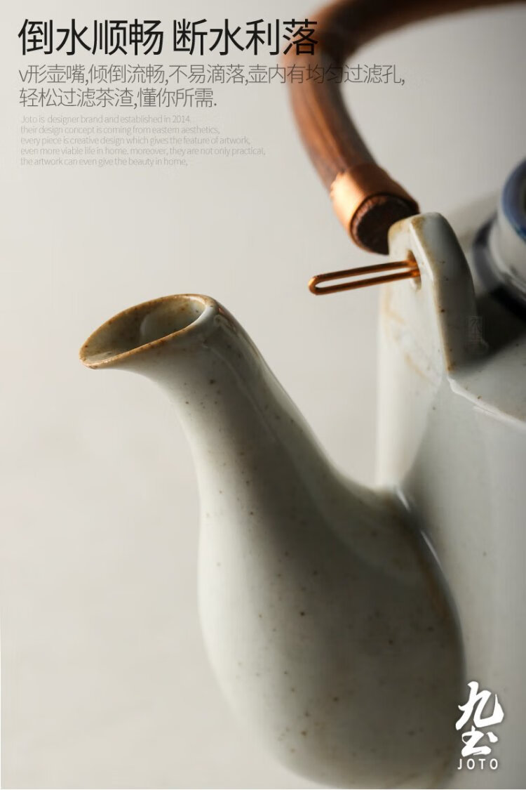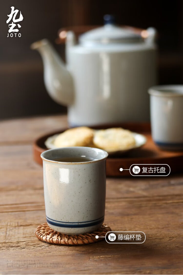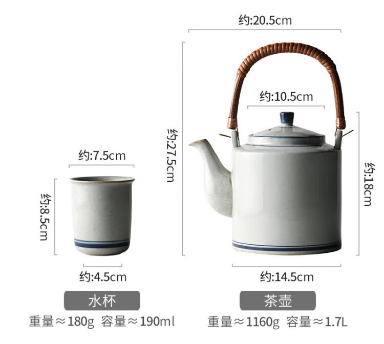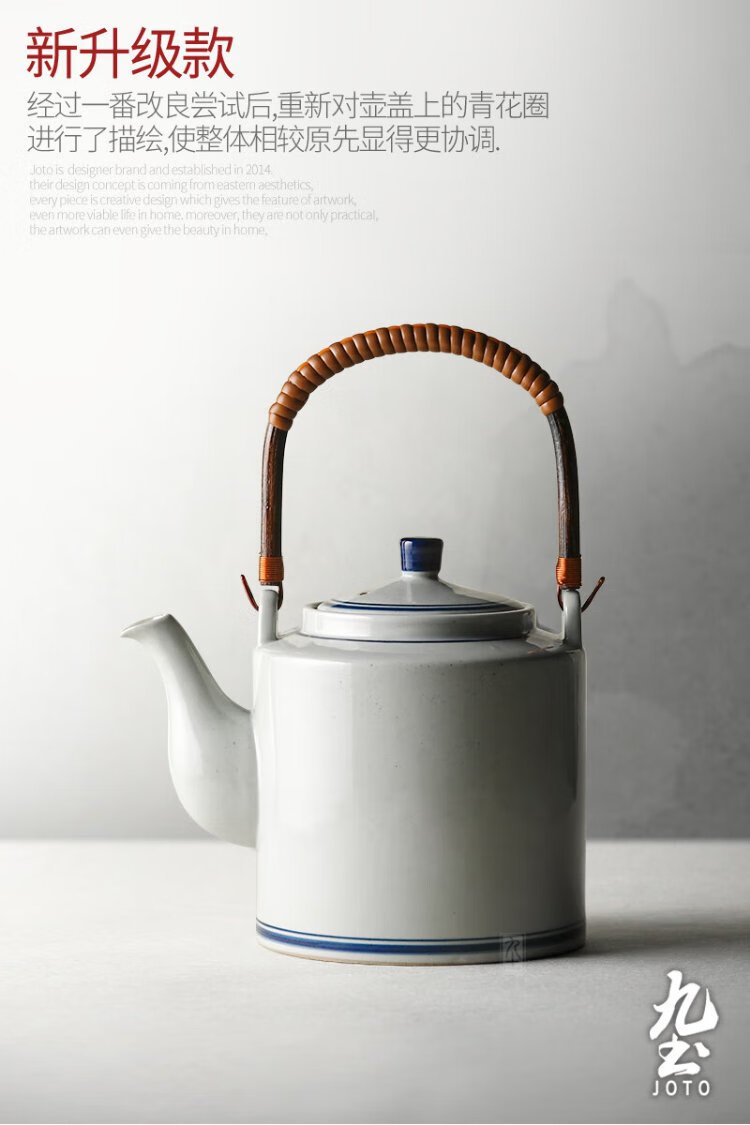 Jiutu household ceramic cold kettle large capacity old-fashioned retro teapot blue and white underglaze color cold kettle teacup blue and white water cup