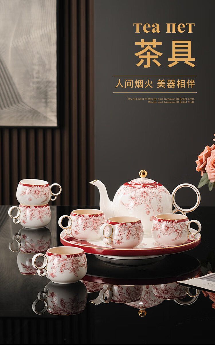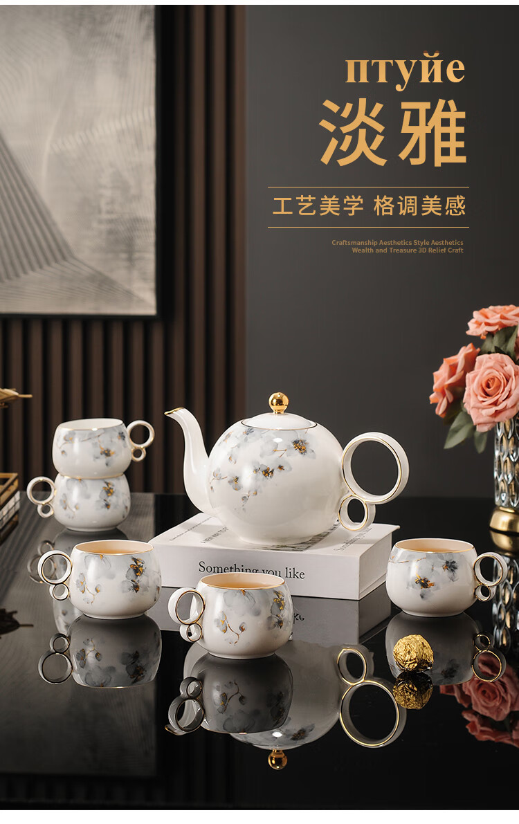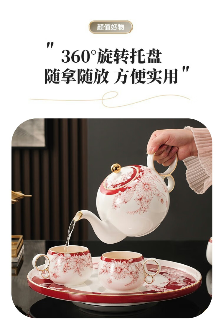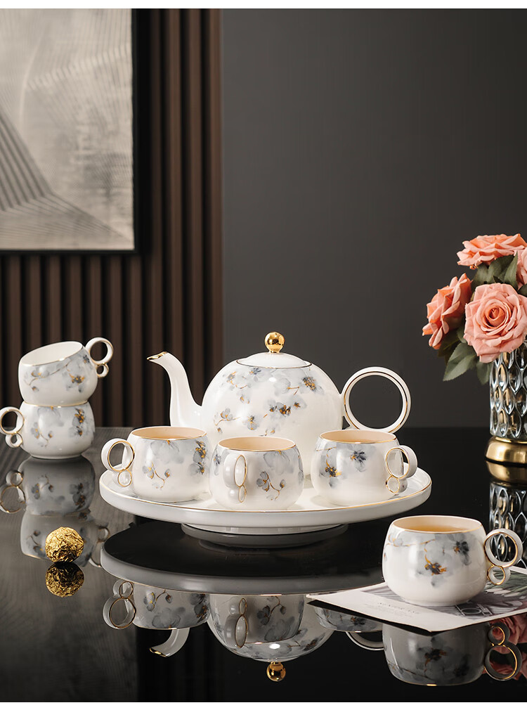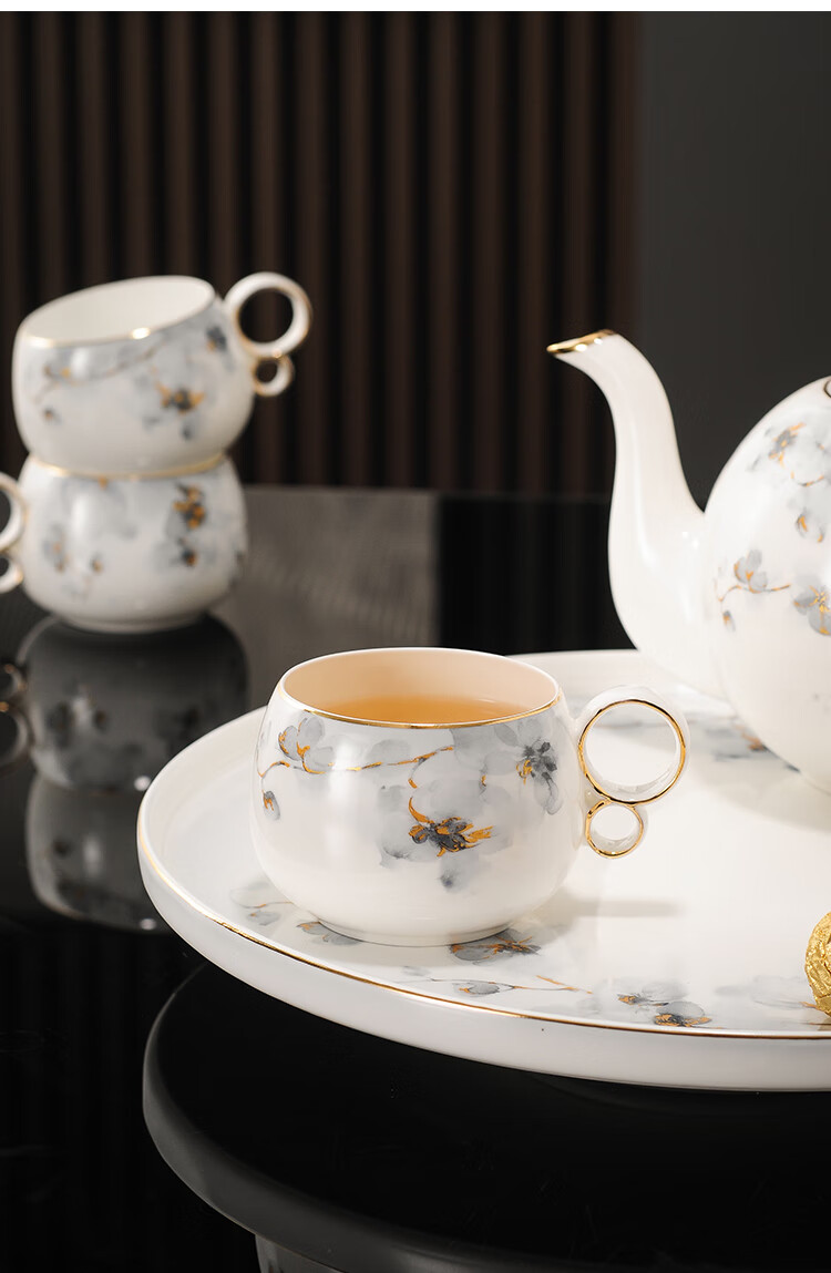 Yanze bone china rotatable water set tea set teapot teacup set opening housewarming gift light luxury high-end gift box bone china Hanmei elegant set-wooden gift box