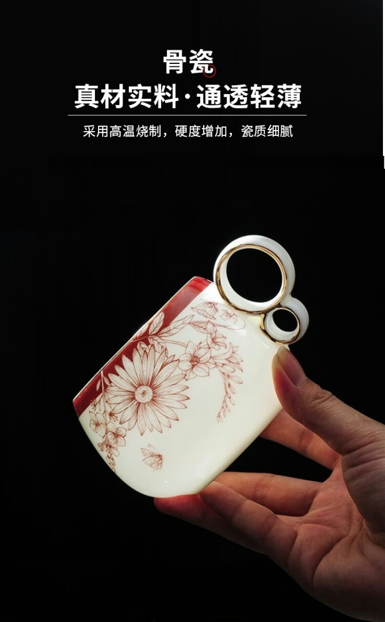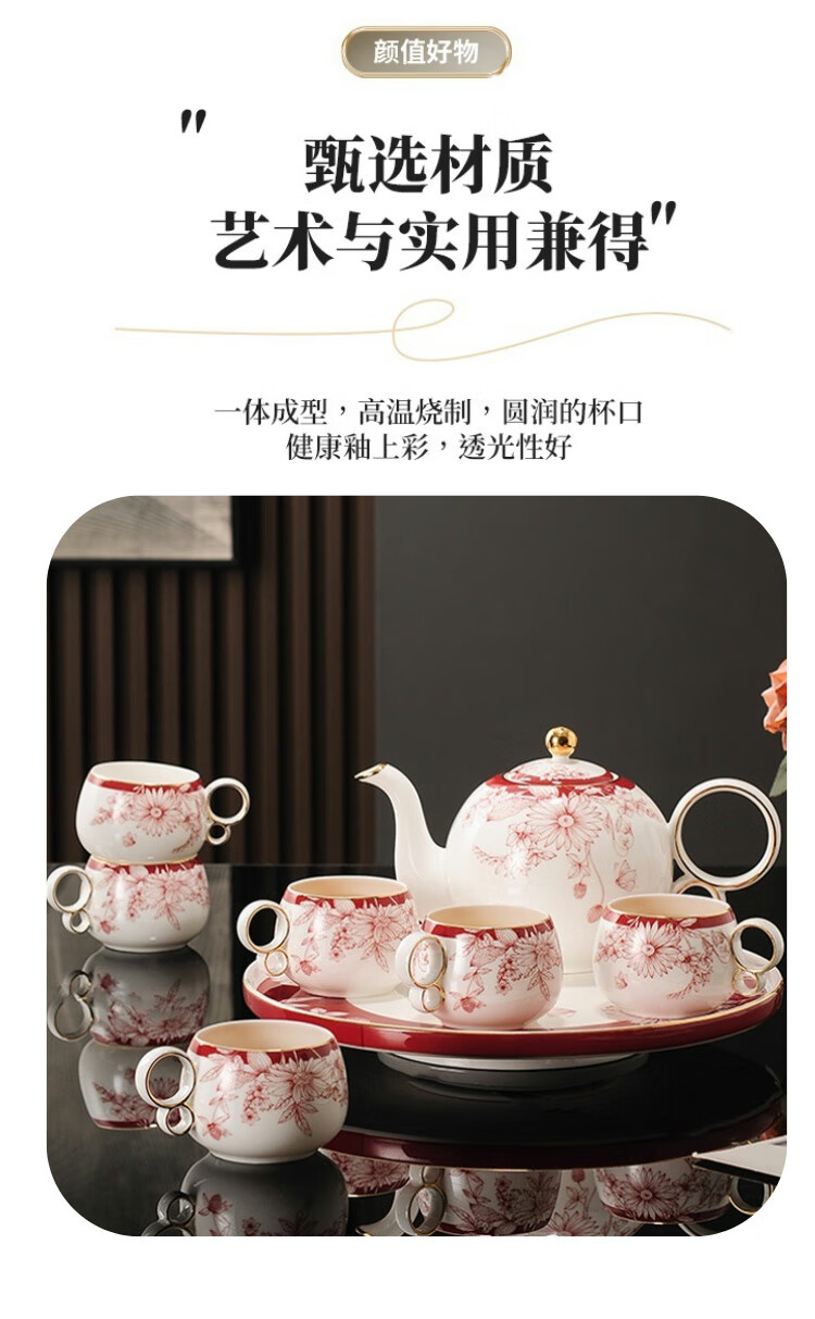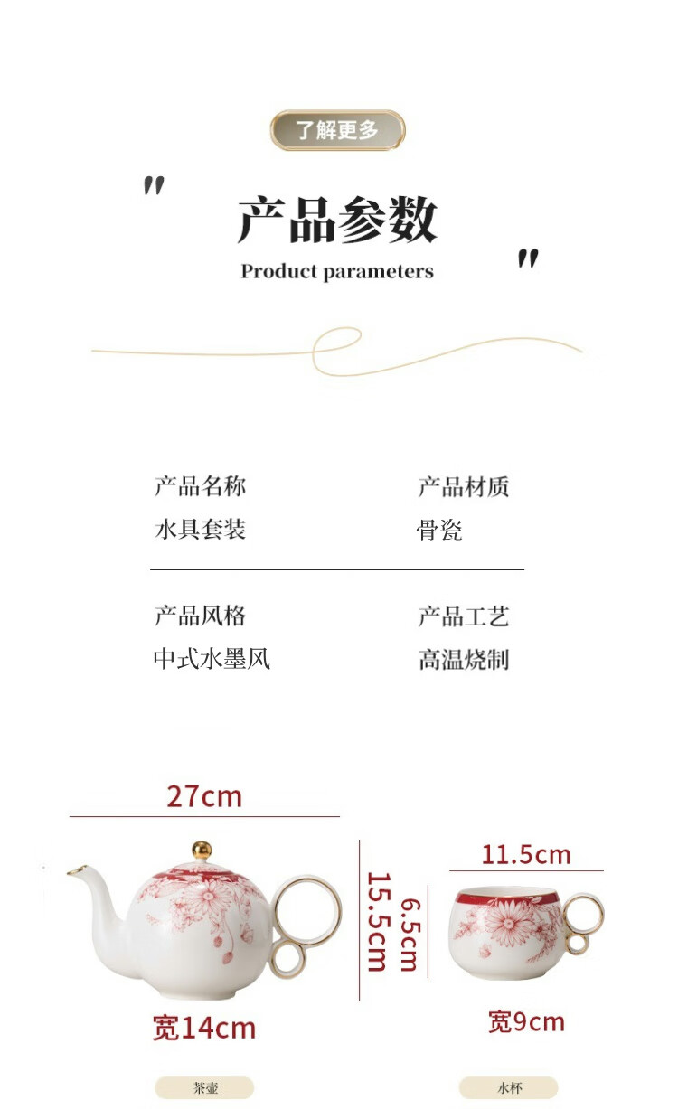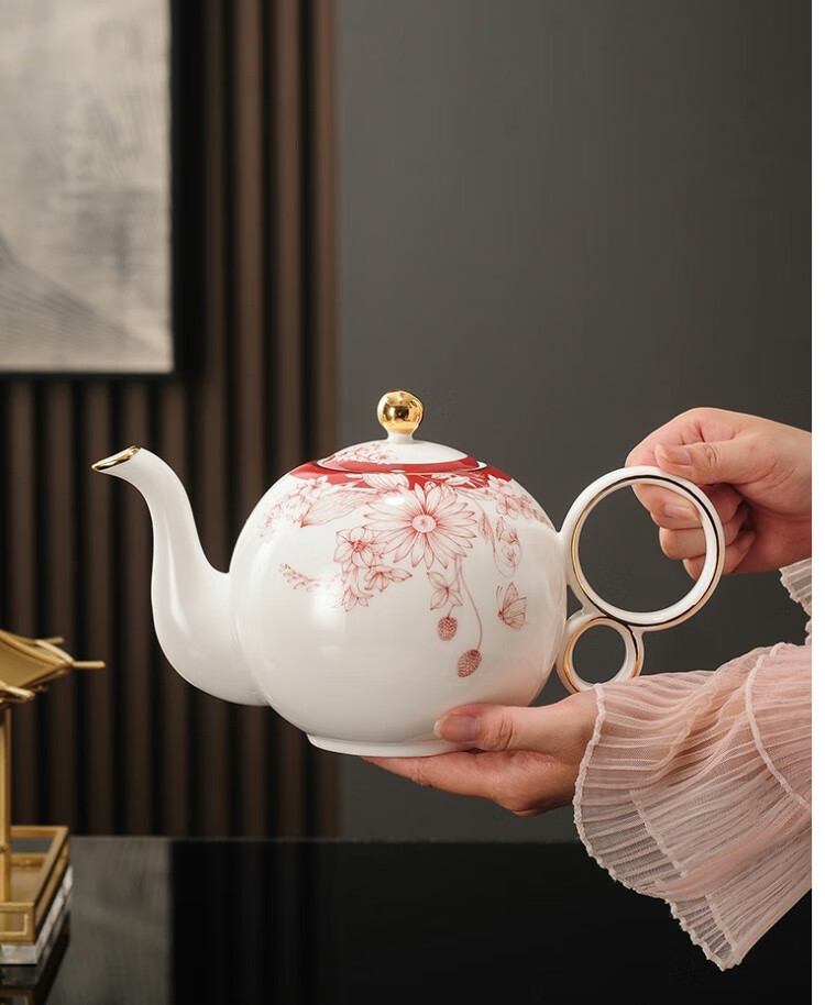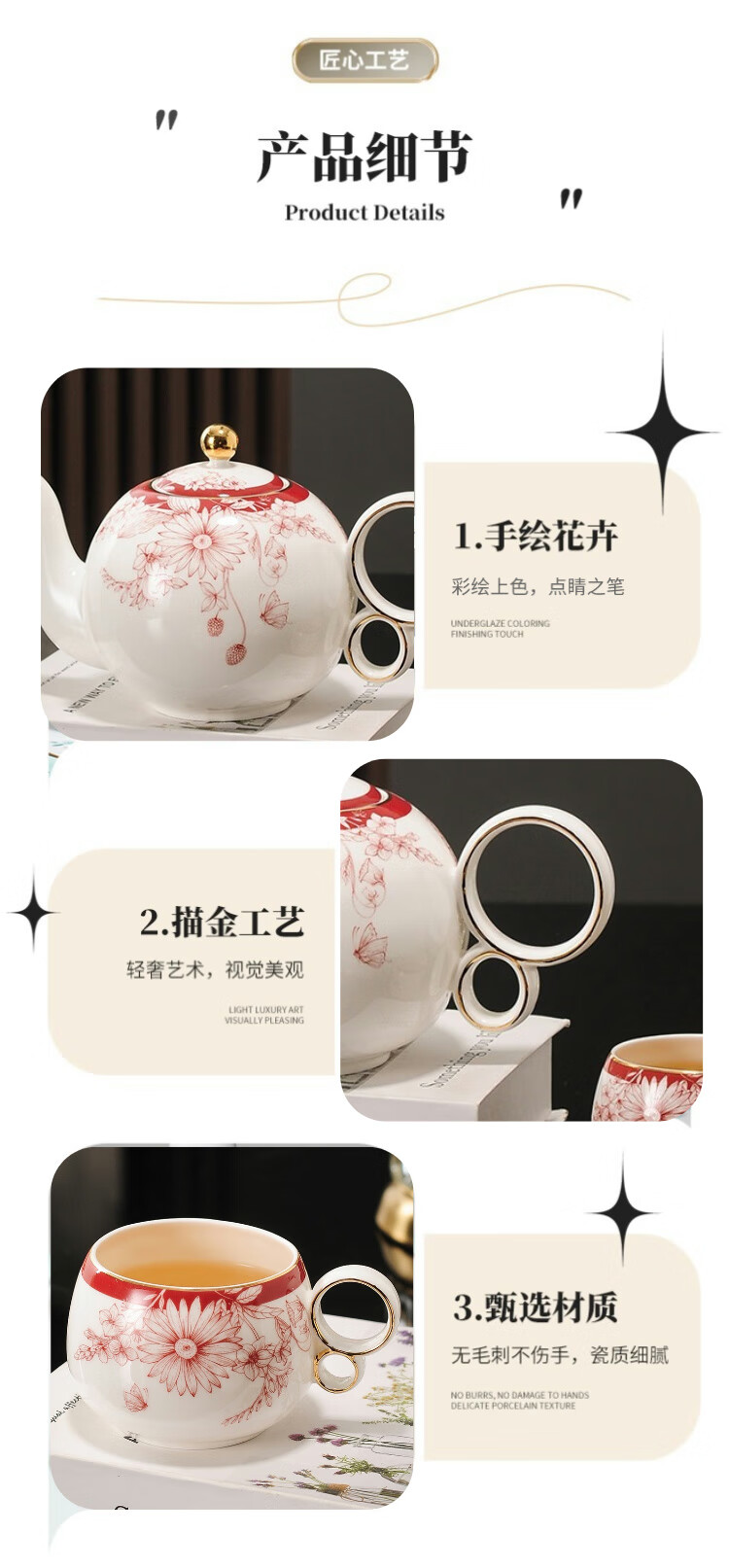 Yanze bone china rotatable water set tea set teapot teacup set opening housewarming gift light luxury high-end gift box bone china Hanmei elegant set-wooden gift box