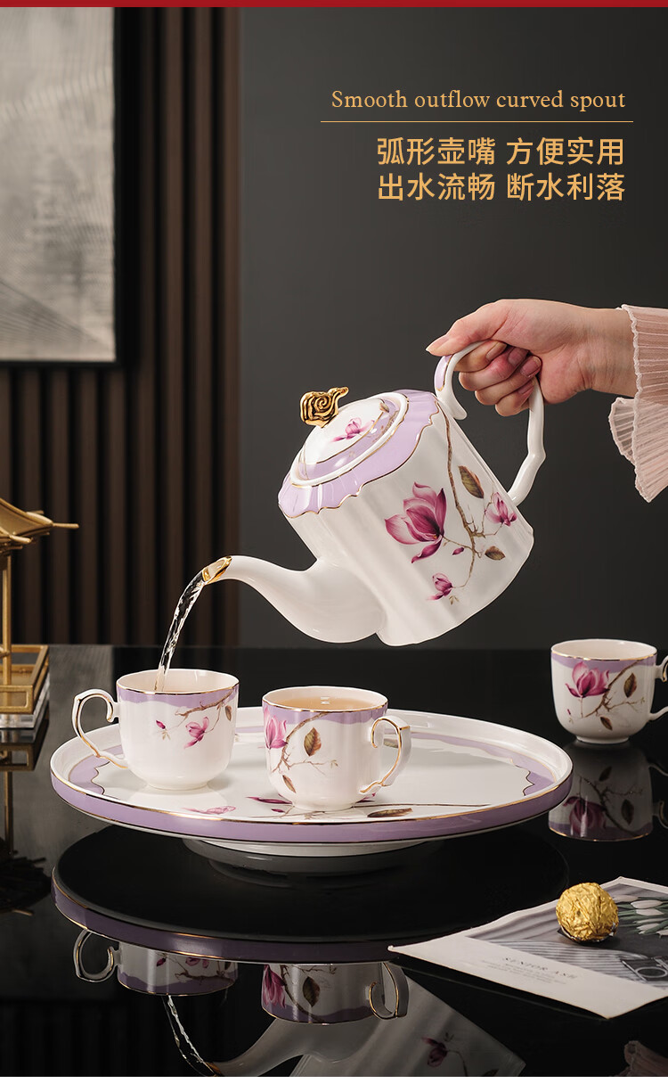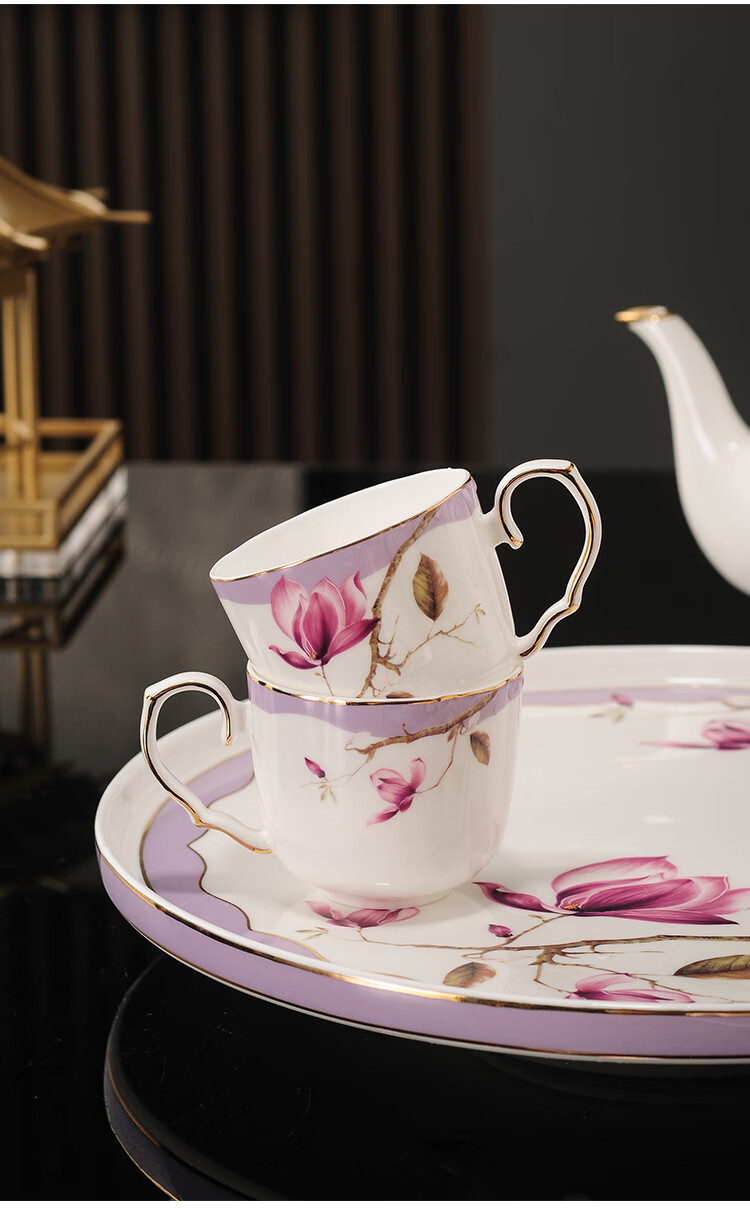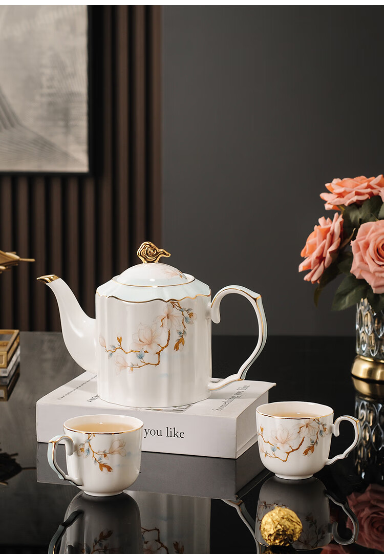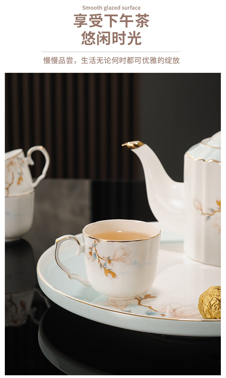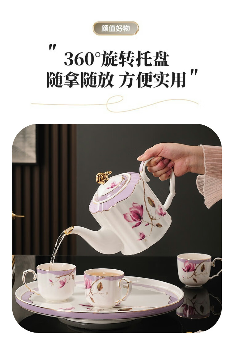 Yanze bone china rotatable water set tea set teapot teacup set opening housewarming gift light luxury high-end gift box bone china magnolia branch set-wooden gift box