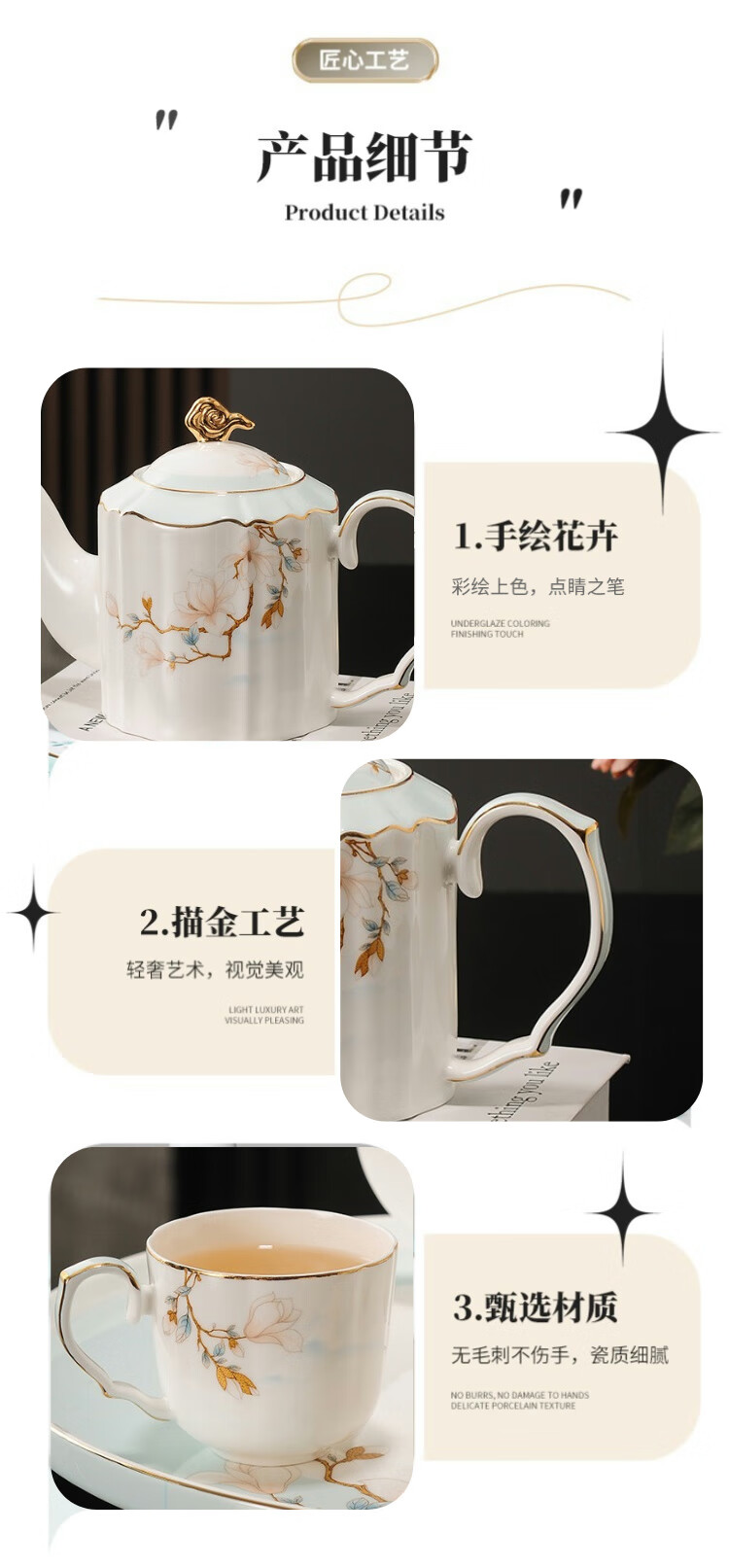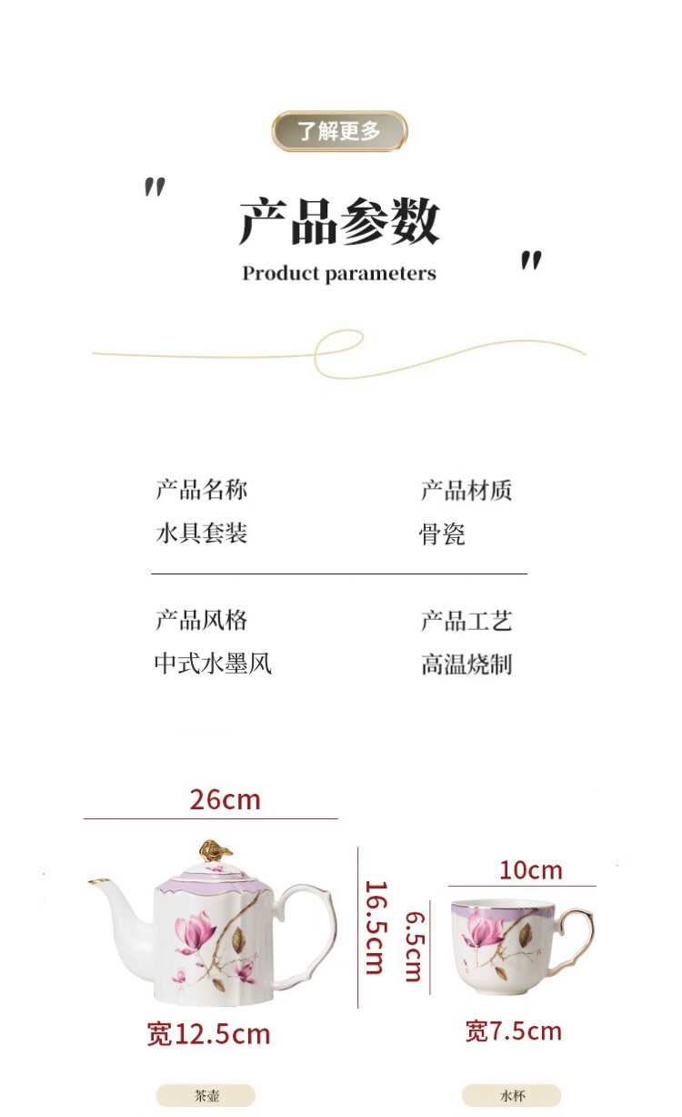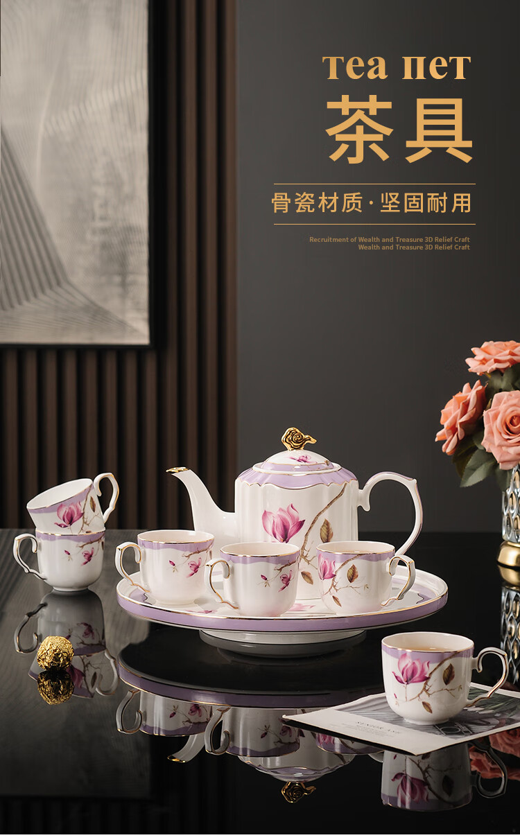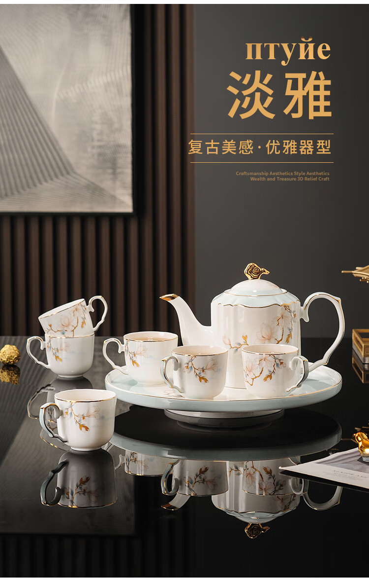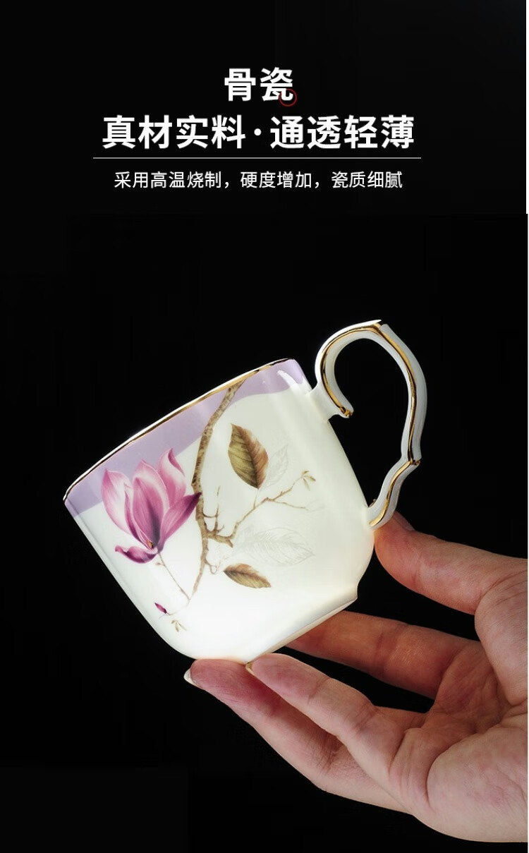 Yanze bone china rotatable water set tea set teapot teacup set opening housewarming gift light luxury high-end gift box bone china magnolia branch set-wooden gift box