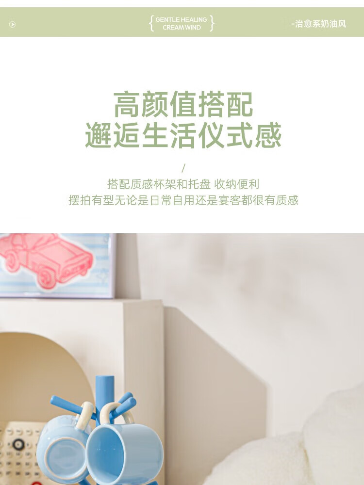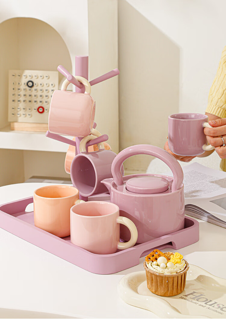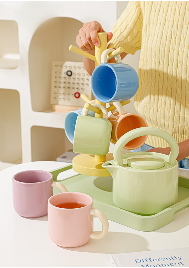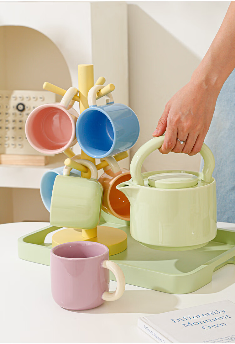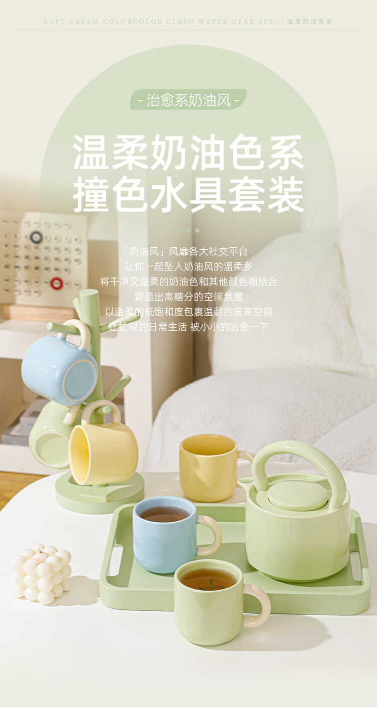 Mud-free cream-style ceramic water cup set for home living room high-end cup set housewarming tea set teacup complete set full color (6 color mix and match) 6 cups