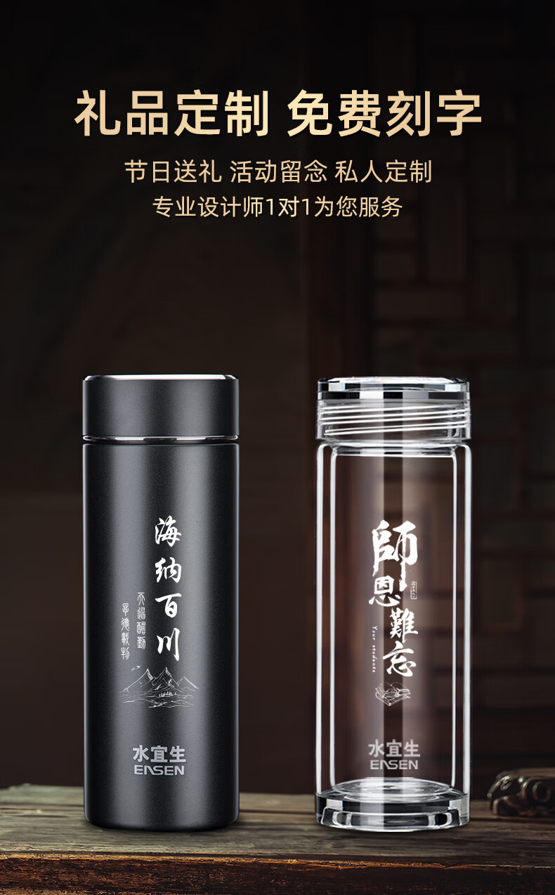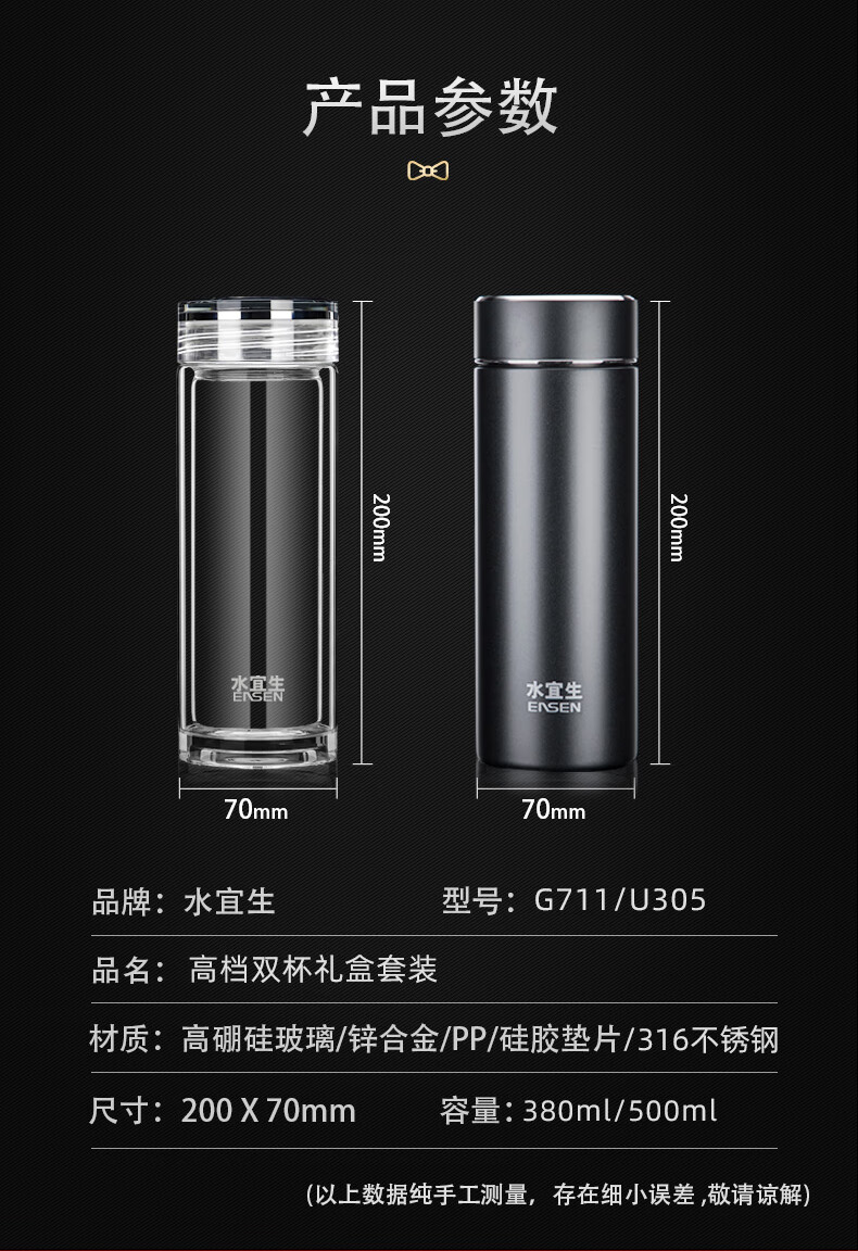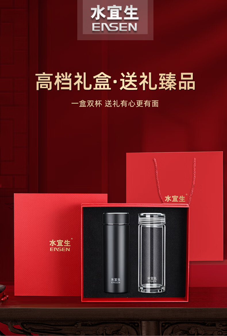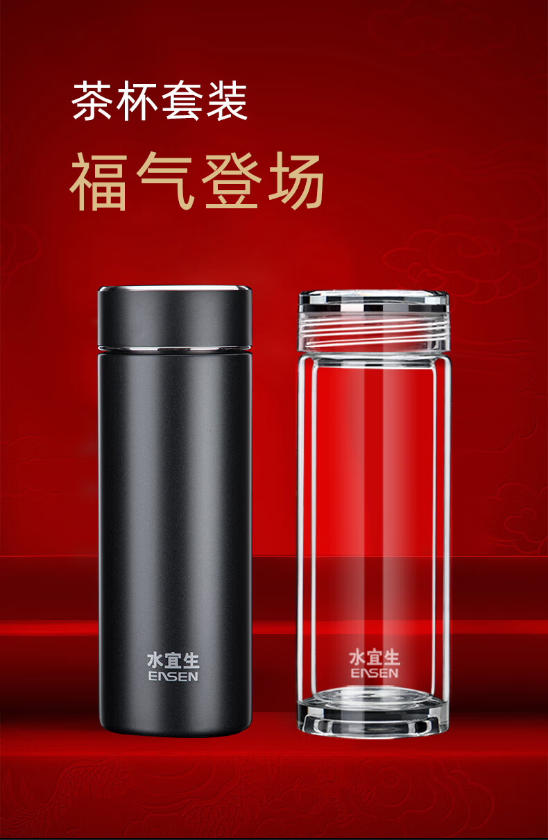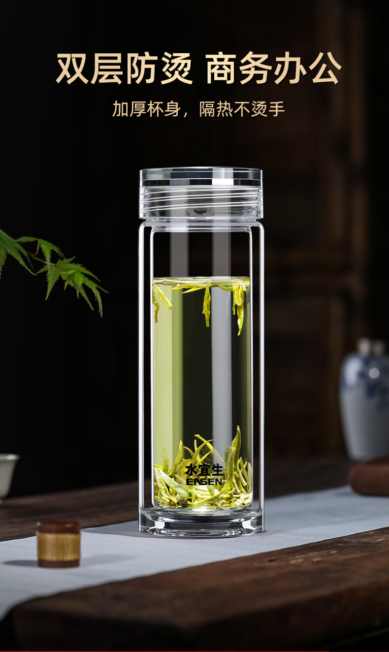 Shui Yisheng Insulated Cup Glass Pure Titanium Antibacterial Teacher's Day Gift Practical Birthday Gift Box for Elder Men and Women Double-layer Tea Cup Office Cup + Glass Cup