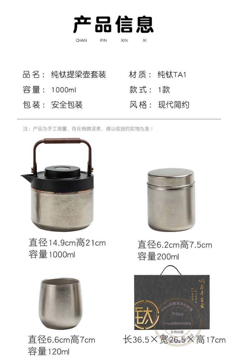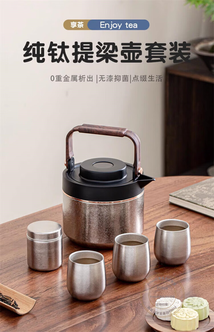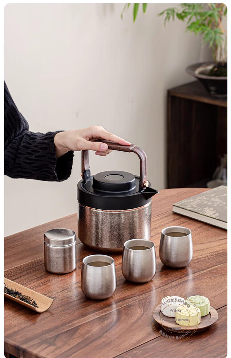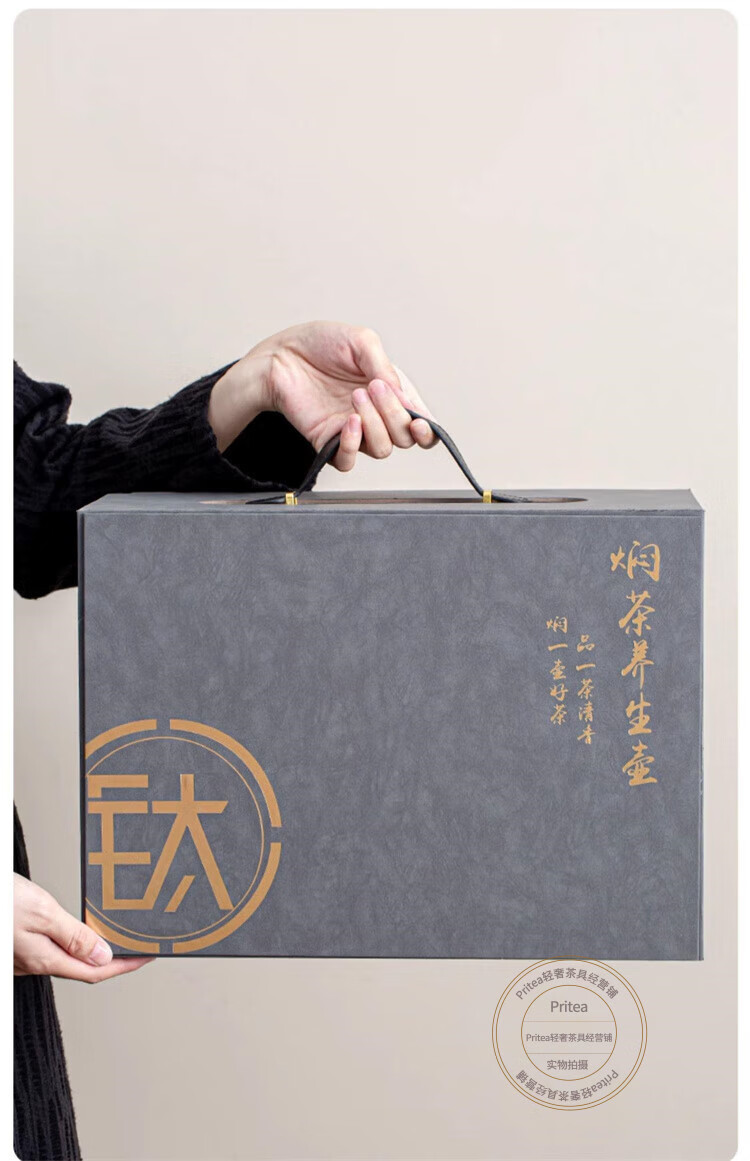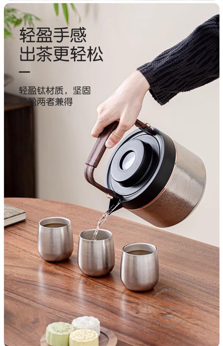 Pritea pure titanium handle teapot large capacity tea set gift box stuffy teapot teacup high-end light luxury gift to the elders pure titanium handle tea set