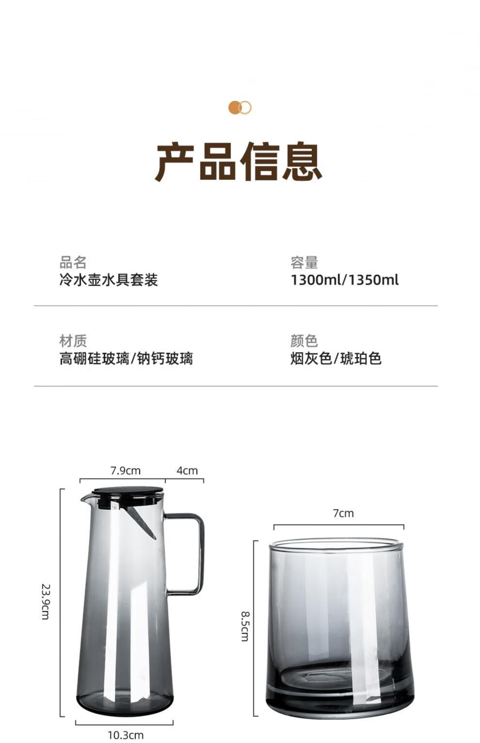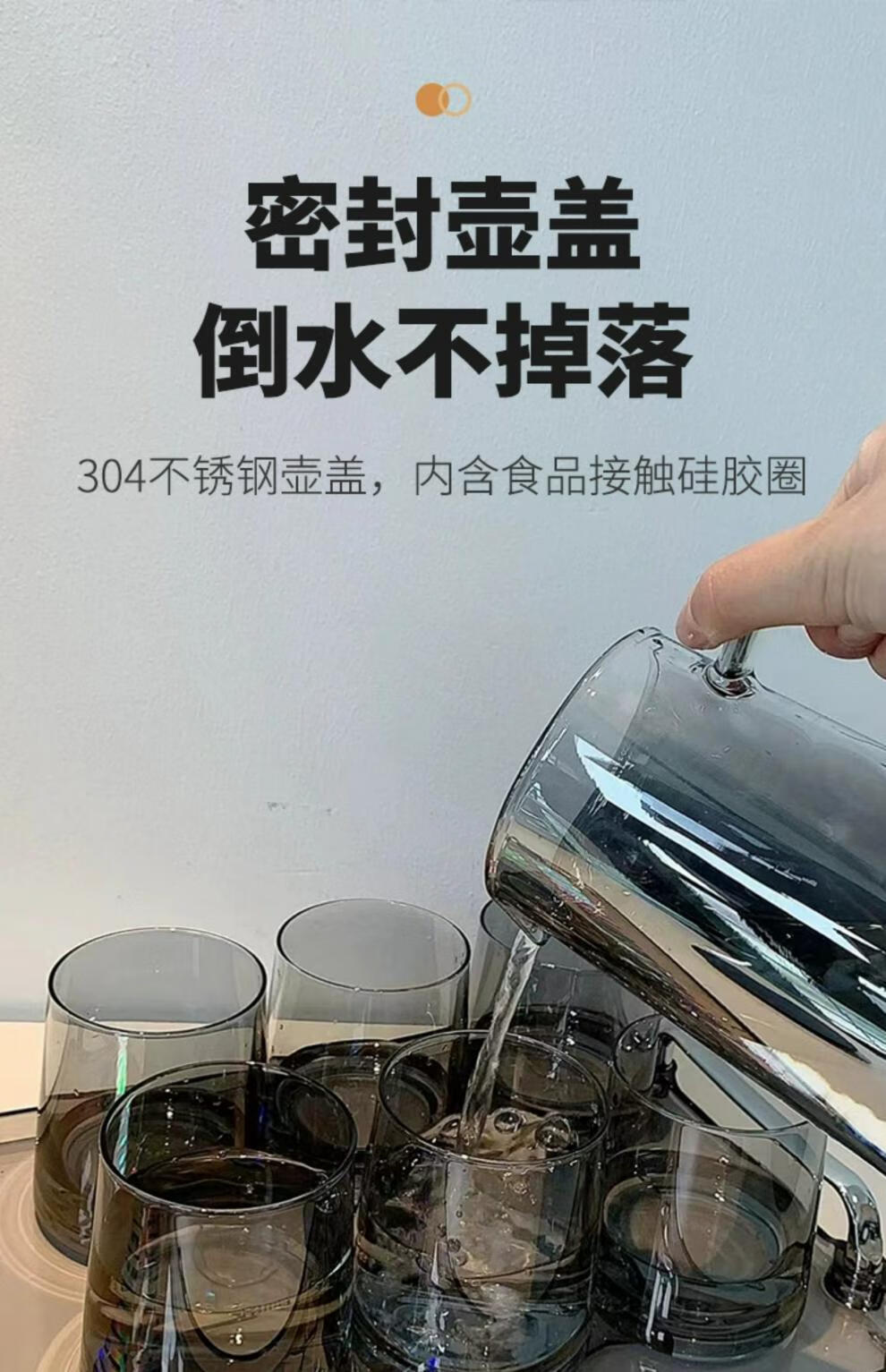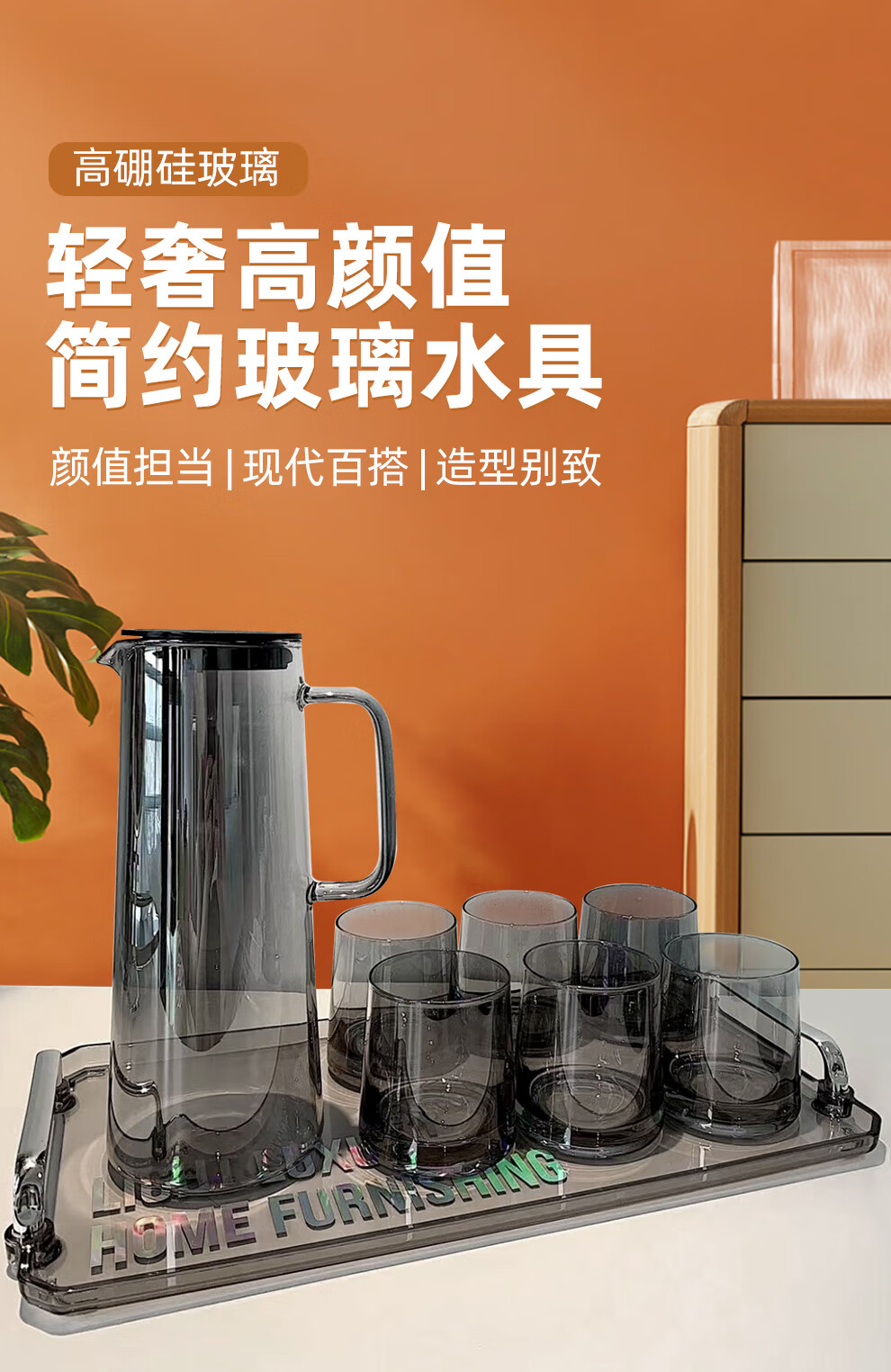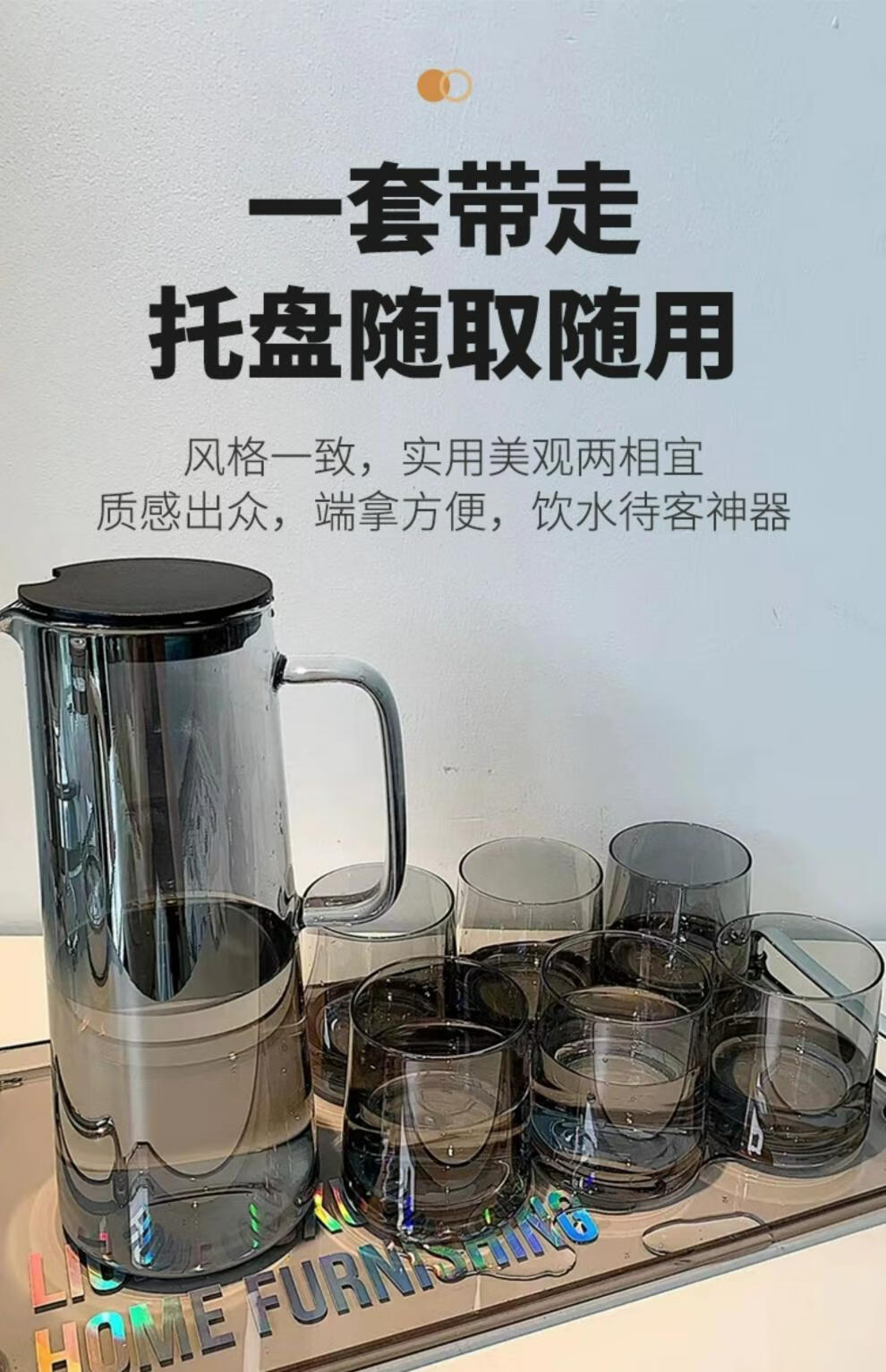 Chino glass household Nordic water cup set for entertaining guests drinking water teacup simple cup living room cold water kettle heat-resistant (same style as the main picture) cigarette ash 1 pot 6 cups + tray