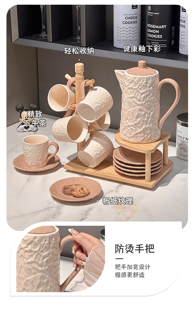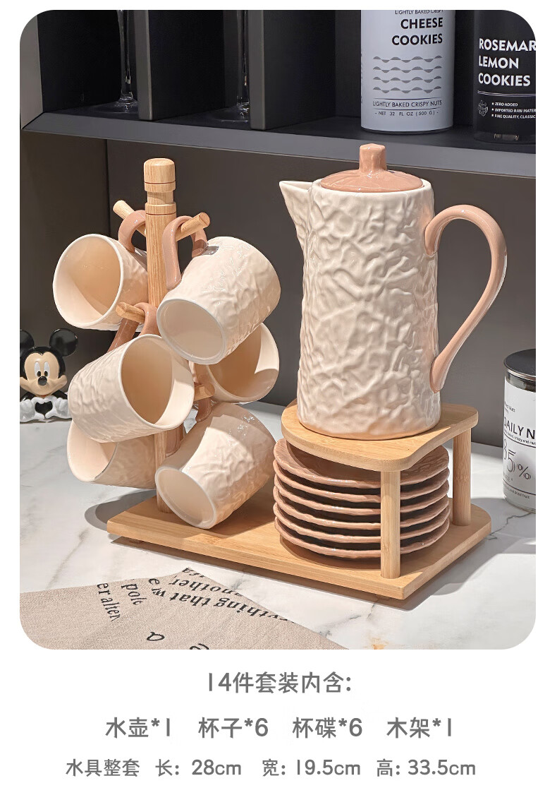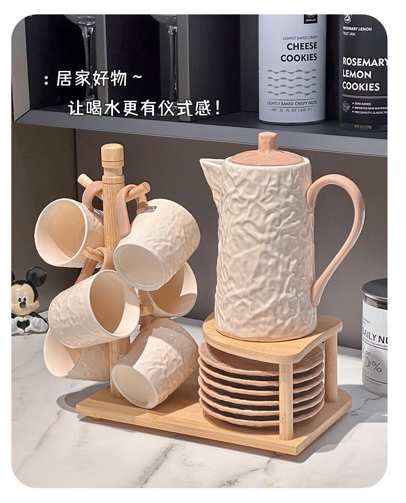 Xibaisheng ceramic tea set complete set for home living room hospitality teapot cup large capacity cold kettle cup set housewarming gift light luxury kettle cup 14-piece set 1285