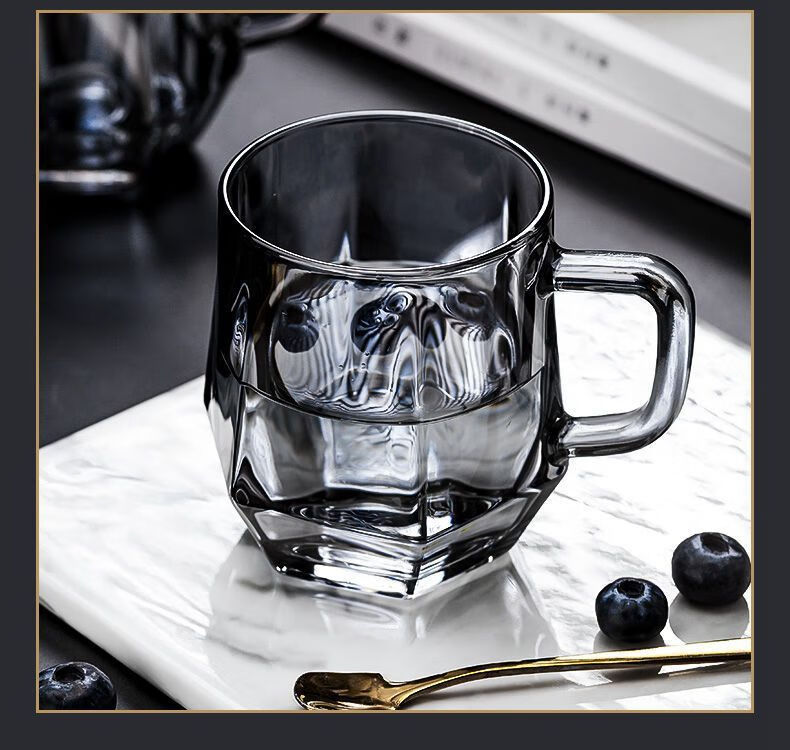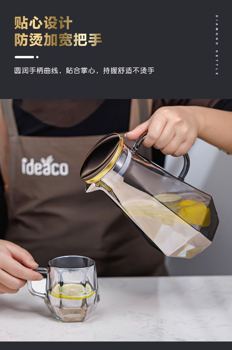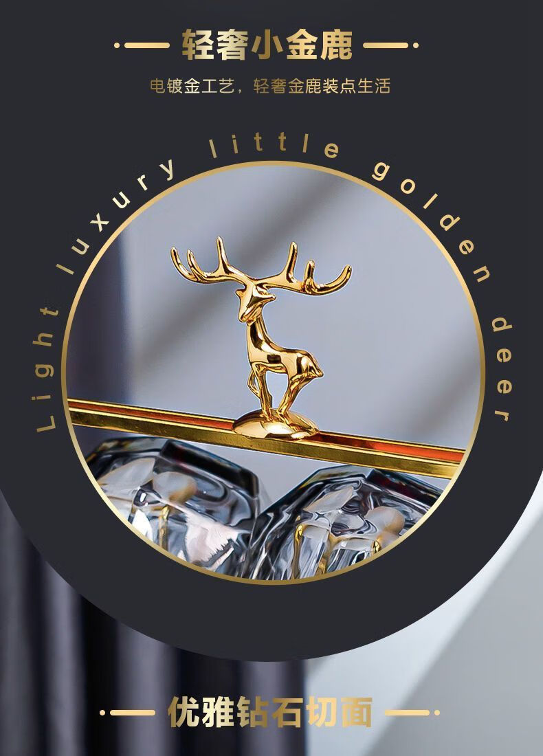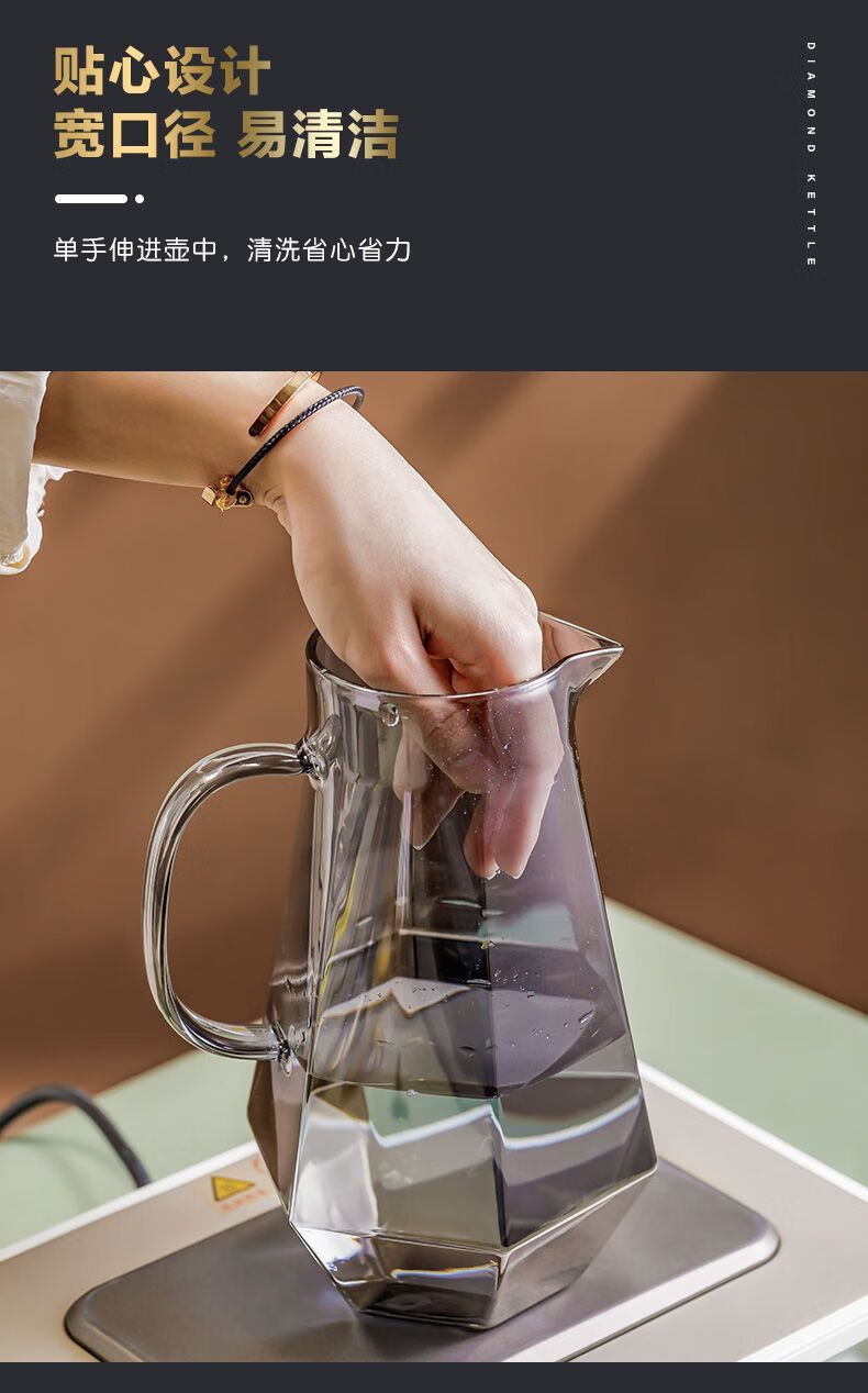 Enshousu simple Nordic style high temperature resistant cold kettle diamond glass water cup home set living room cold kettle cup cup holder diamond pot (elegant gray) + 6 cups + deer stand + tray