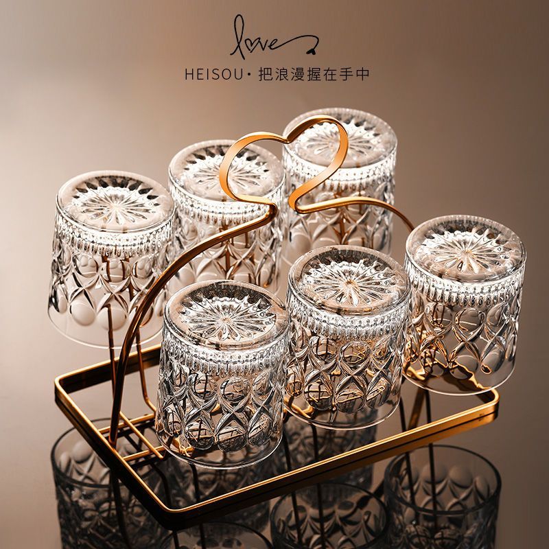 JD Logistics Creative Ins Style Beer Mug High-Value Wineware Whiskey Glass Red Wine Glass Set 6 Diamond Cups + Tea Tray