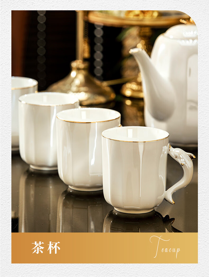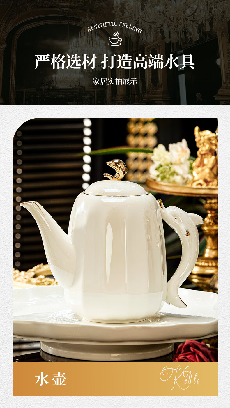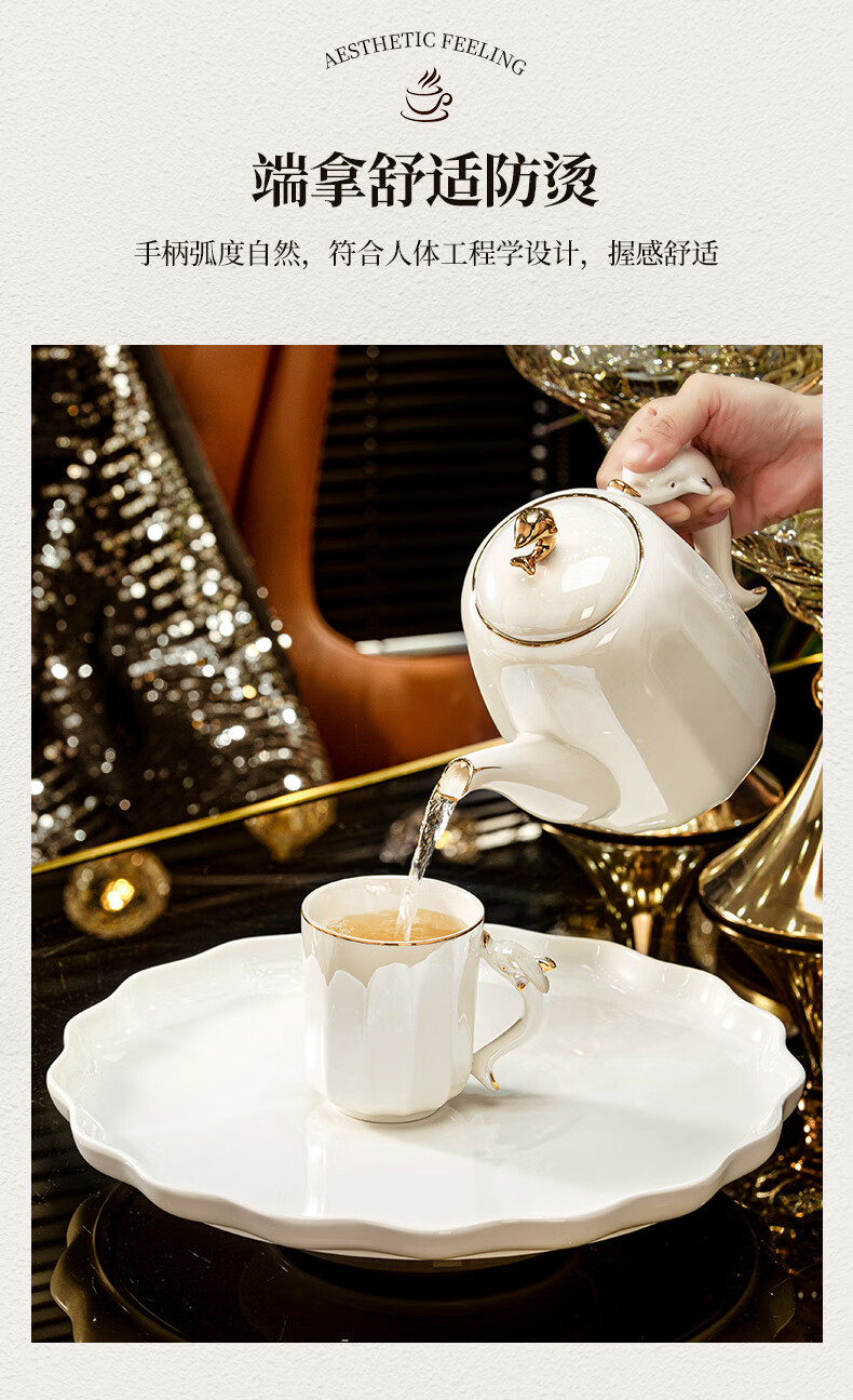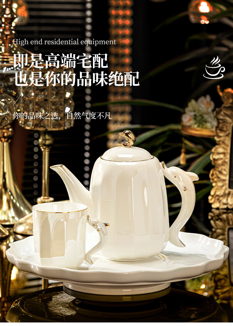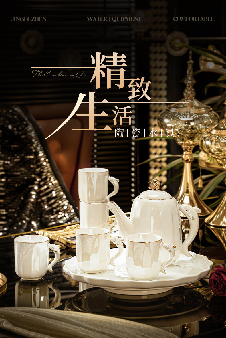 NINE CRANES Creative Jingdezhen Tea Set Light Luxury High-end Housewarming Gift New Home Cup Ceramic Kettle Living Room Hospitality Water Set 8-piece High-end Gift Box