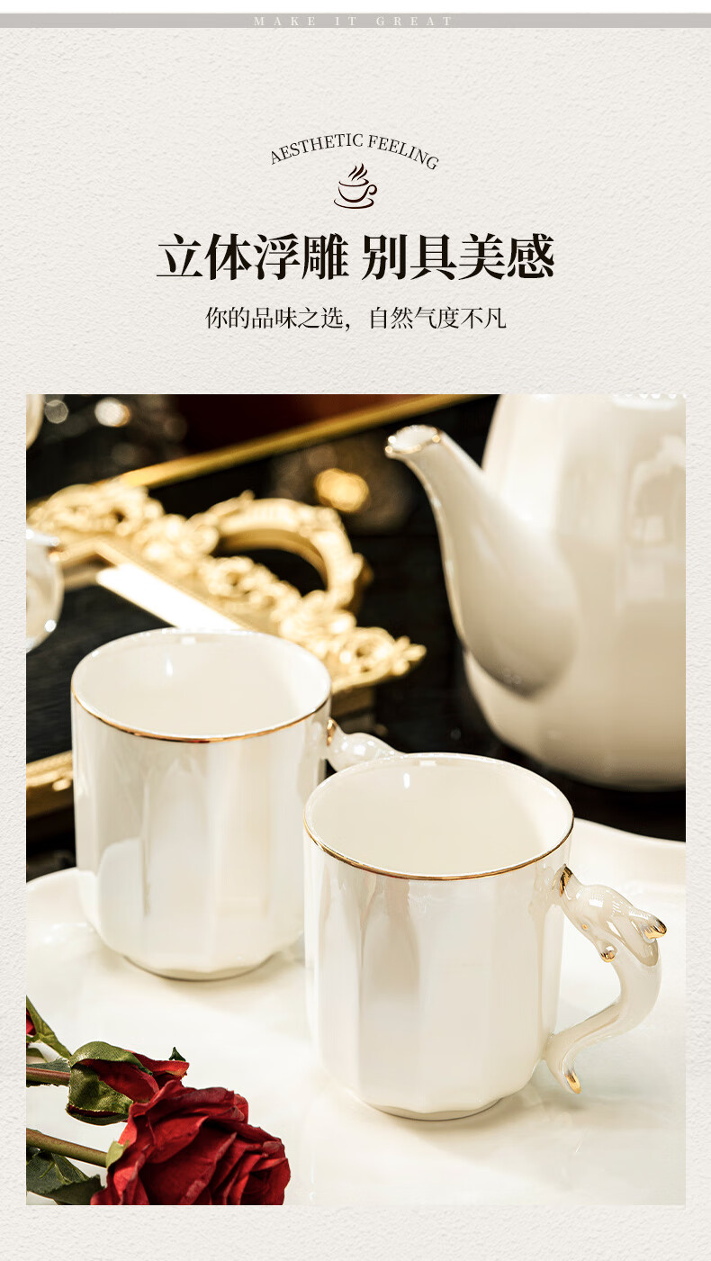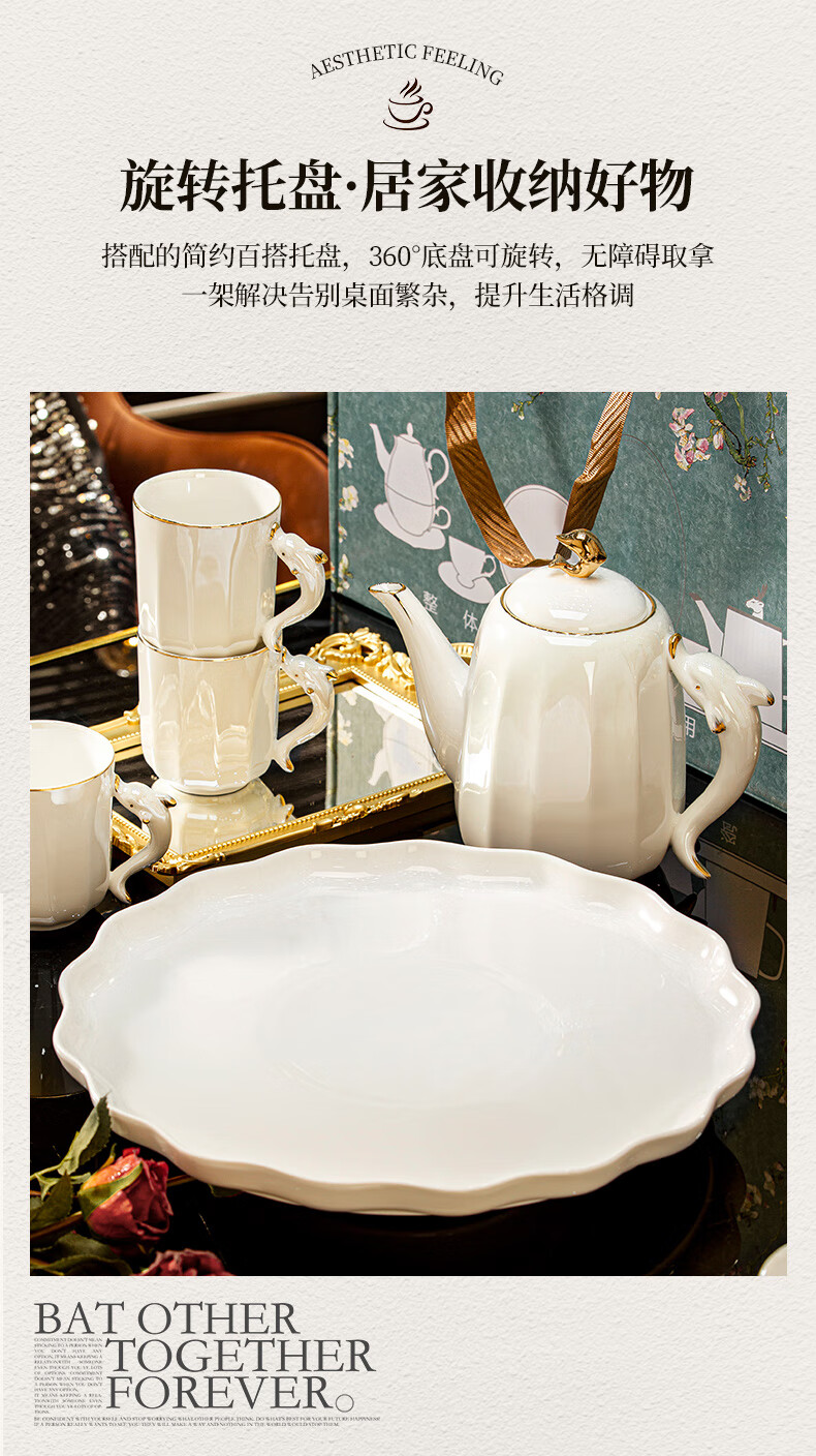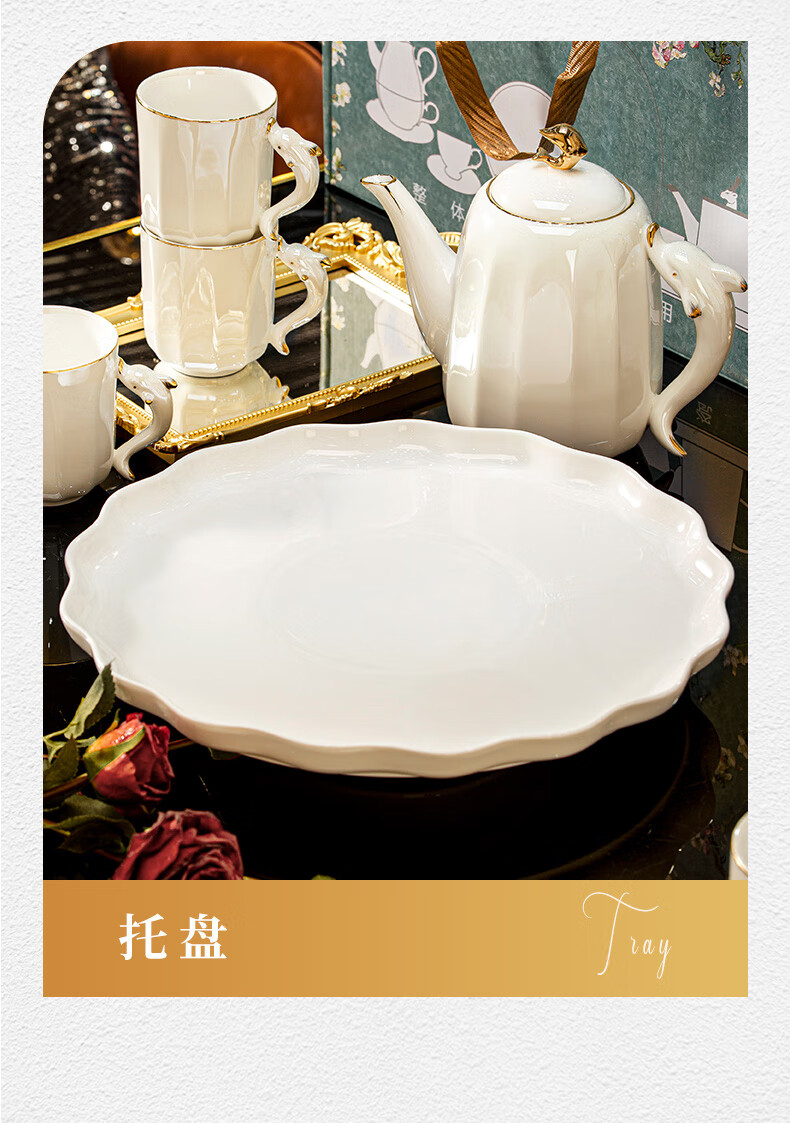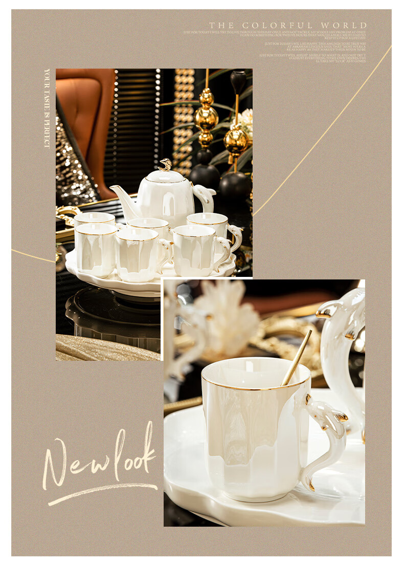 NINE CRANES Creative Jingdezhen Tea Set Light Luxury High-end Housewarming Gift New Home Cup Ceramic Kettle Living Room Hospitality Water Set 8-piece High-end Gift Box