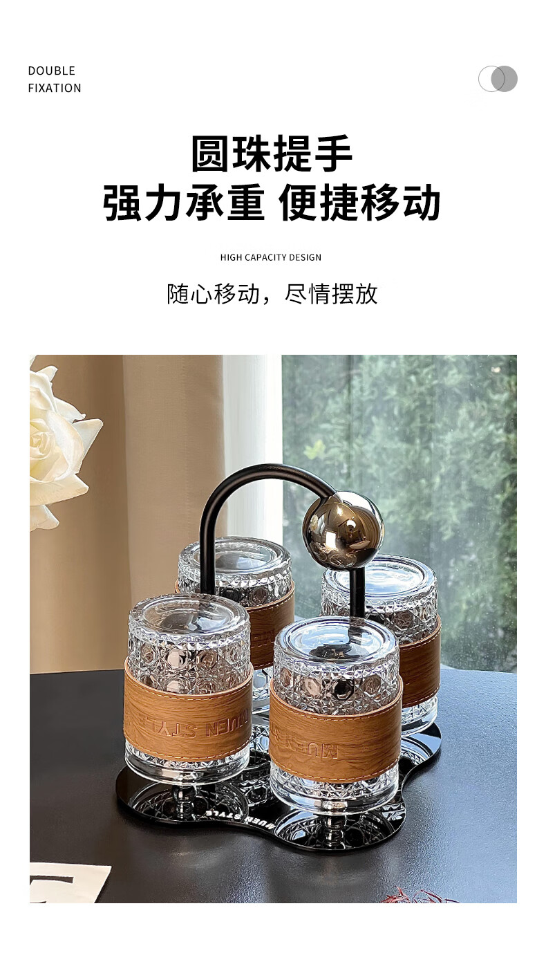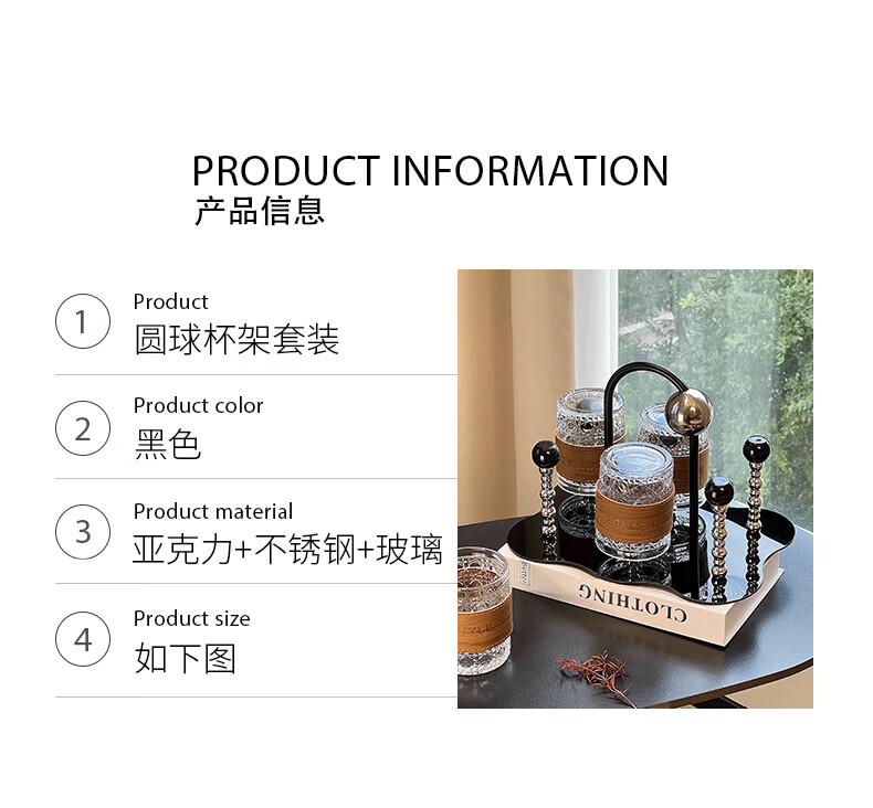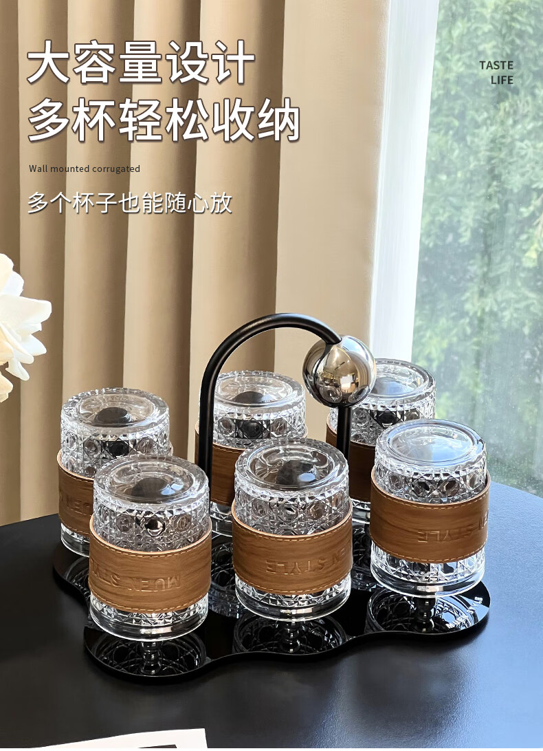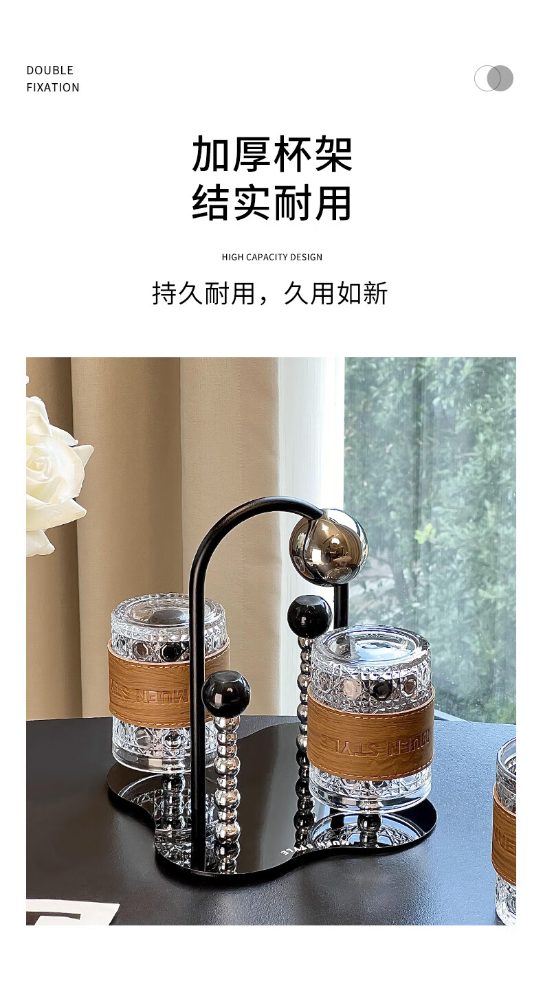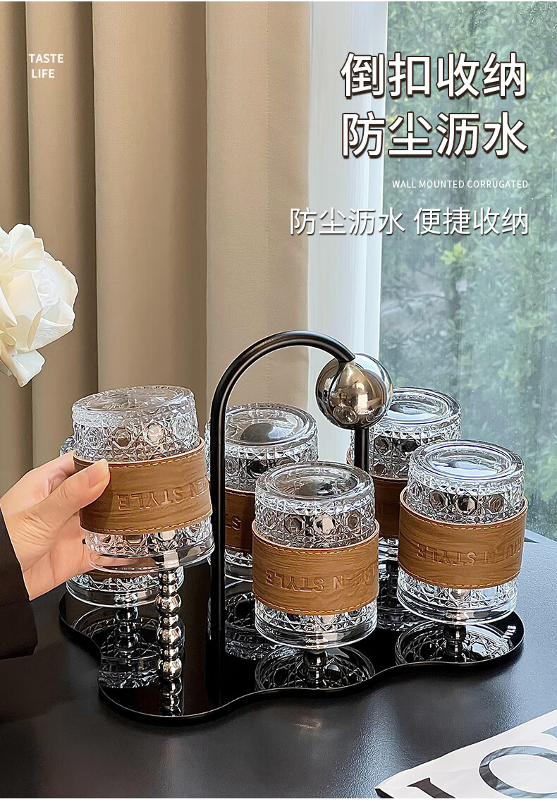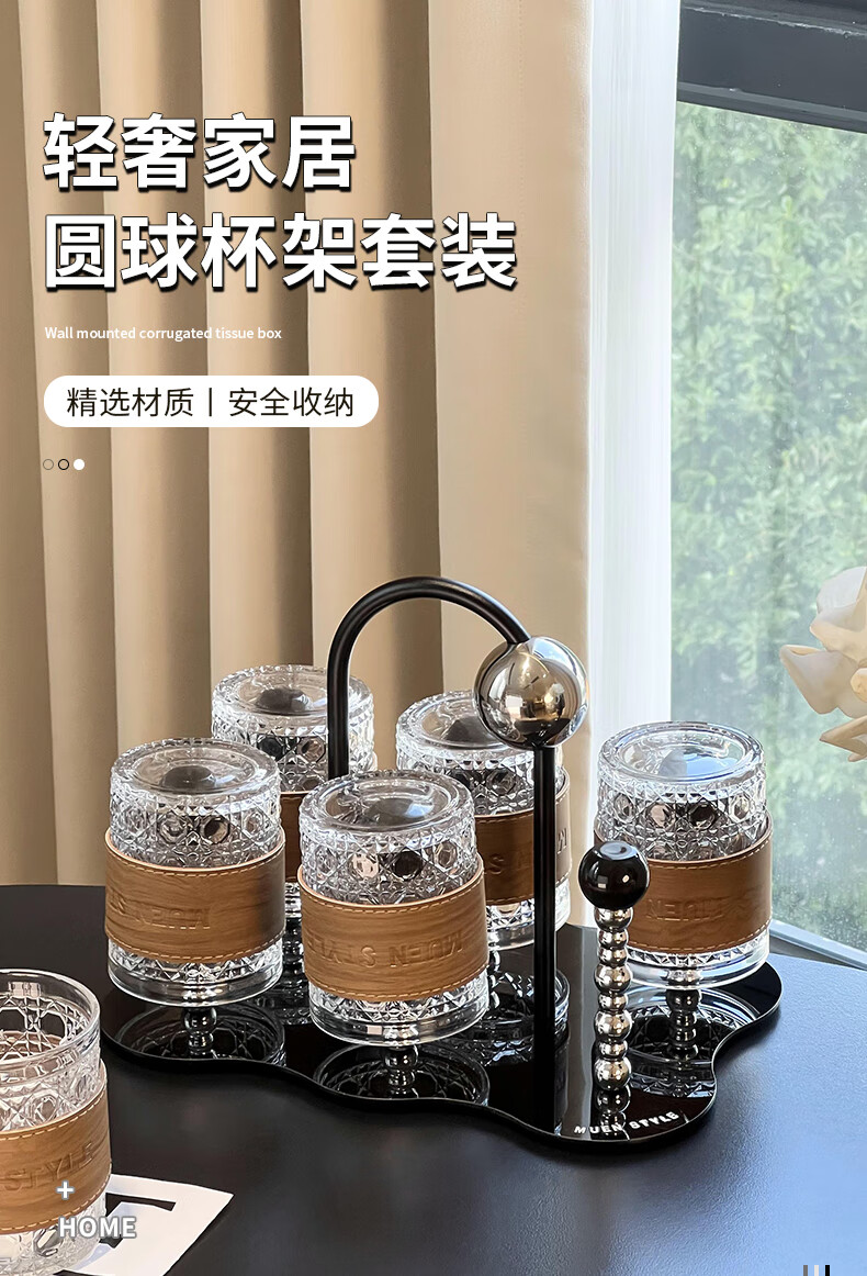 Mousse cup set living room home light luxury high-end glass water cup drink cup coffee cup storage cup holder ball cup holder set 6 cups + 1 rack