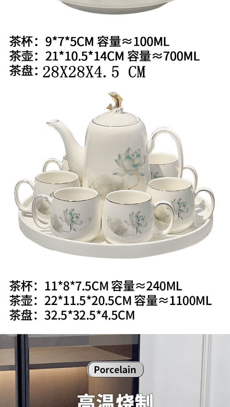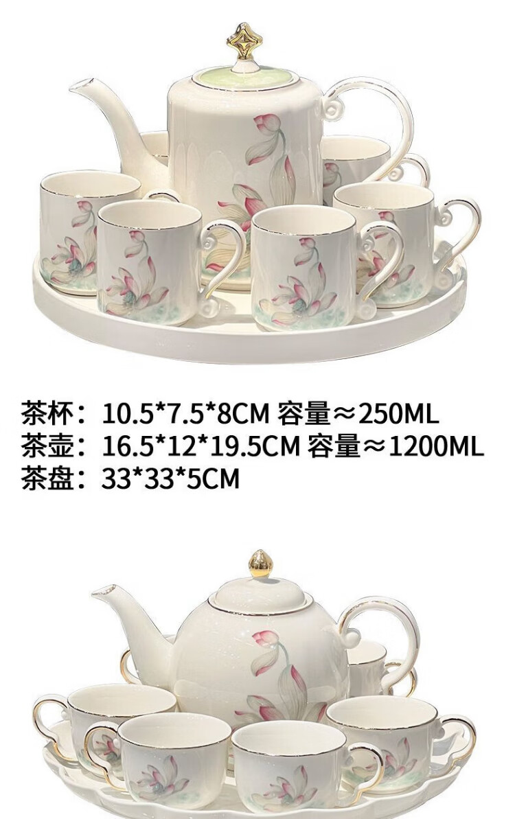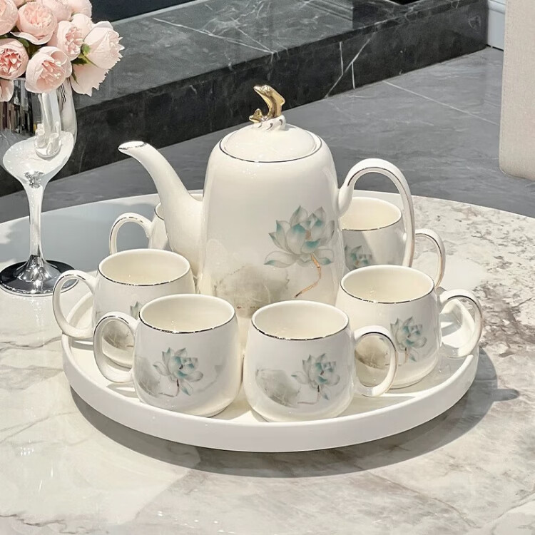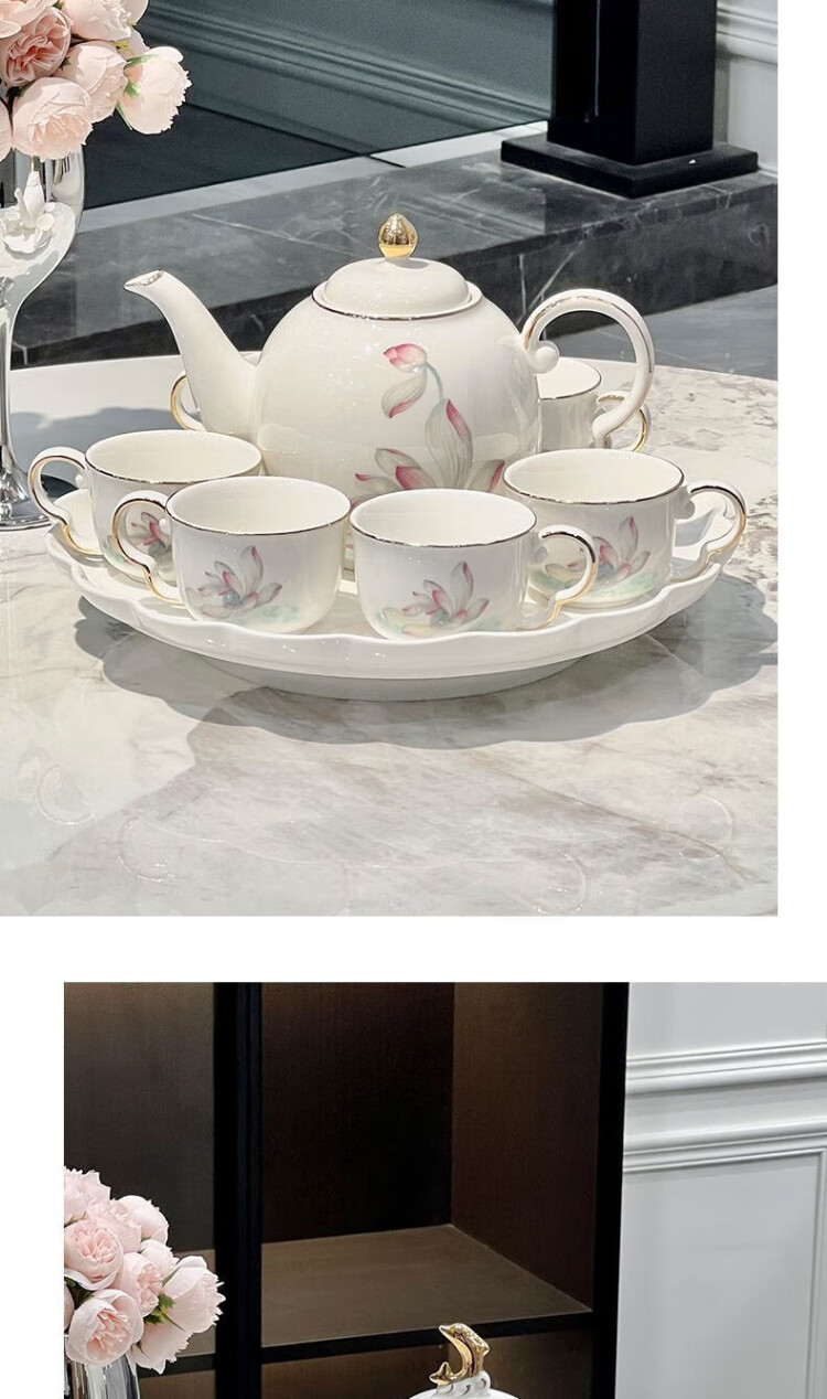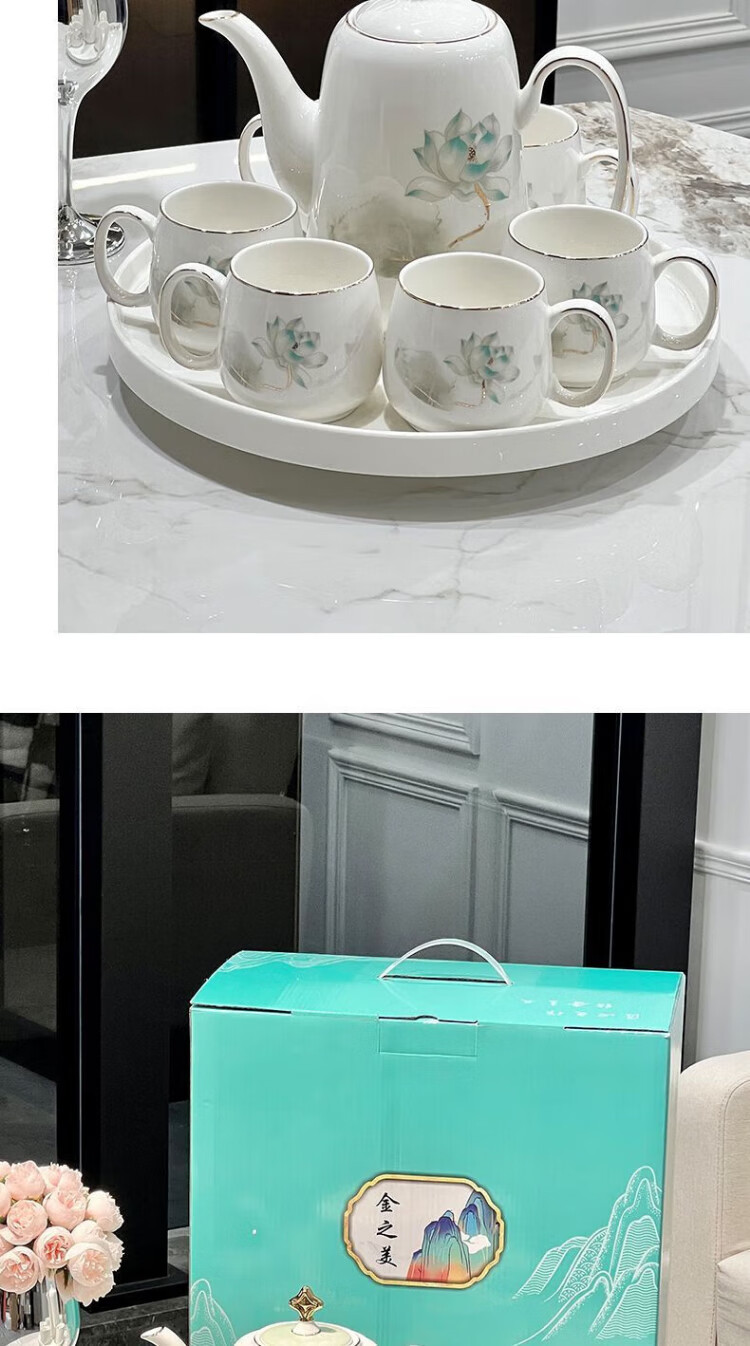 Ruishun high-end tea set wedding gift new style ceramic water cup teapot teacup living room hospitality gift for housewarming Golden lotus dolphin tea set