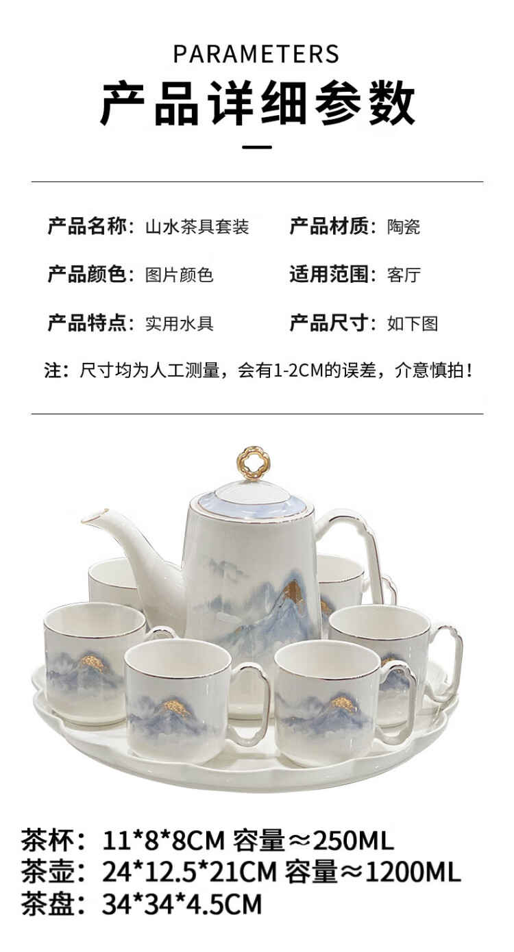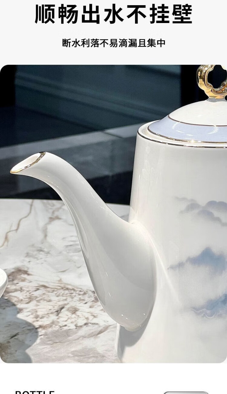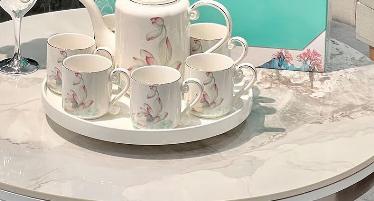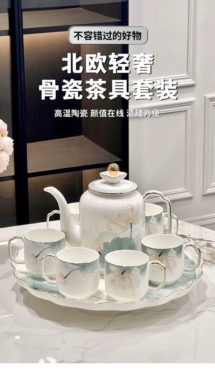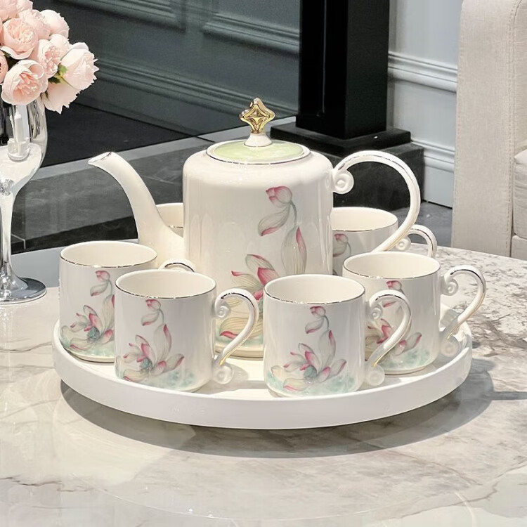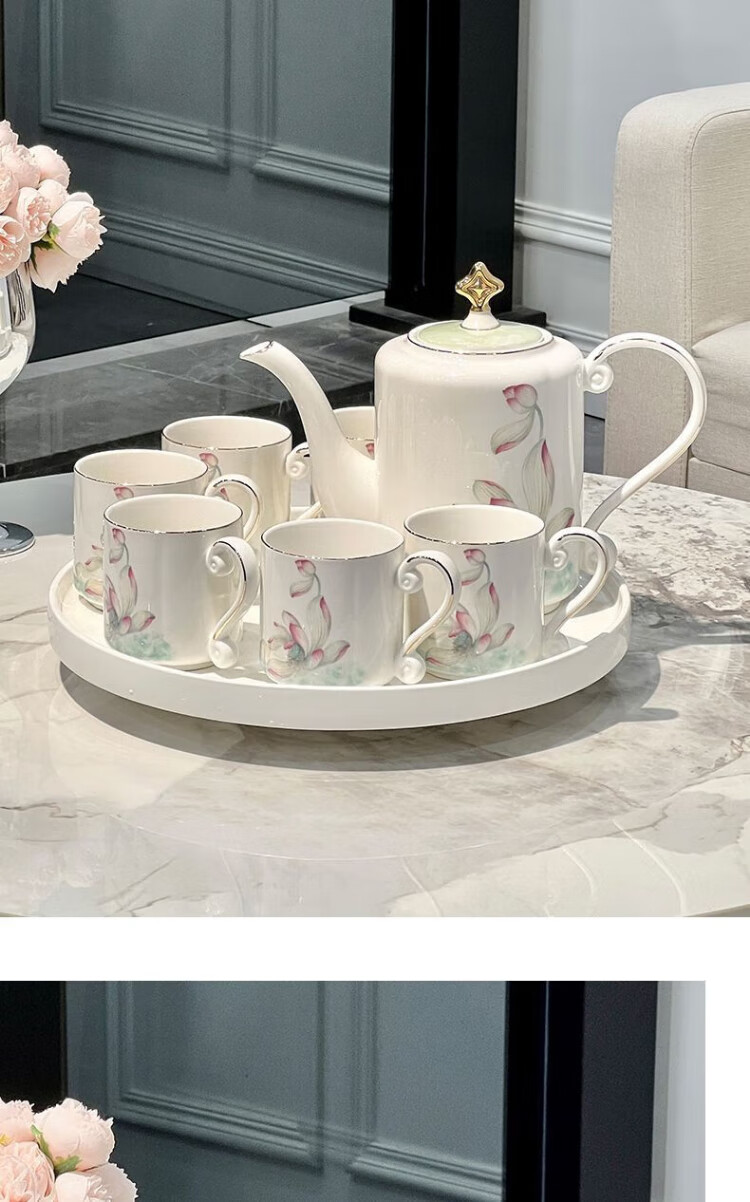 Ruishun high-end tea set wedding gift new style ceramic water cup teapot teacup living room hospitality gift for housewarming Golden lotus dolphin tea set