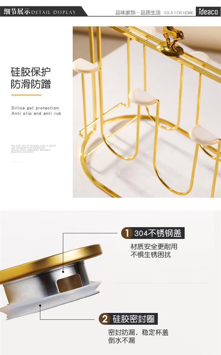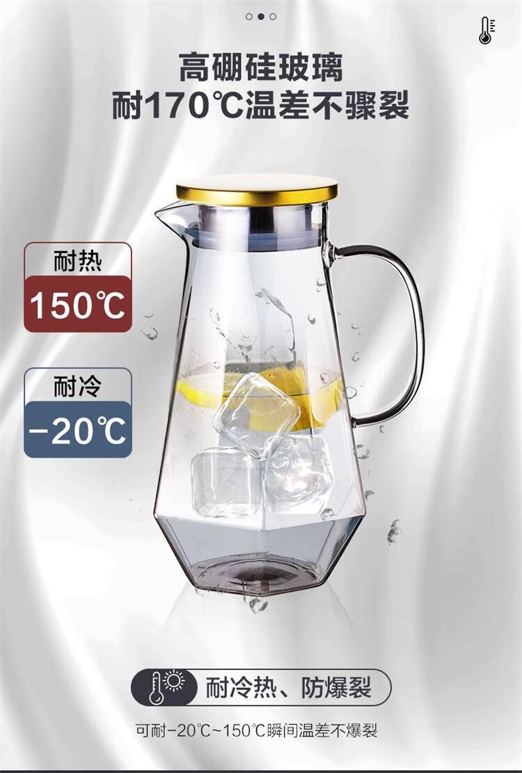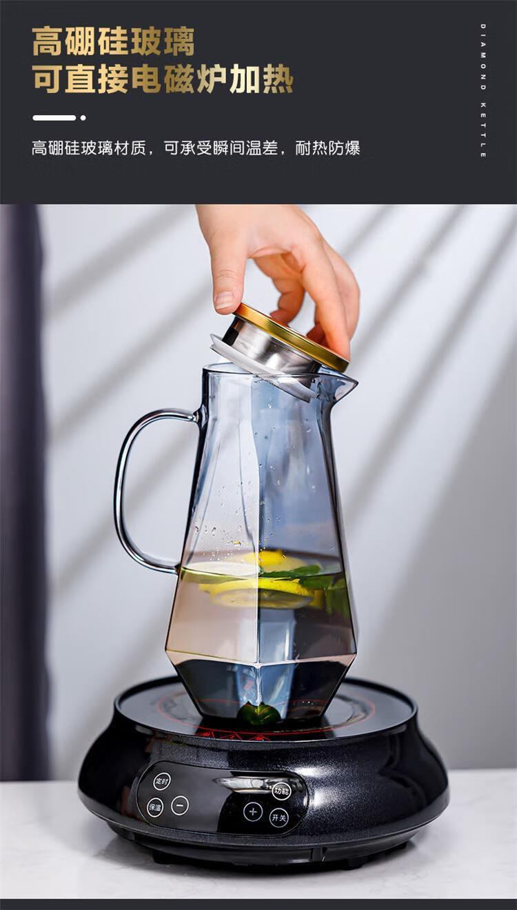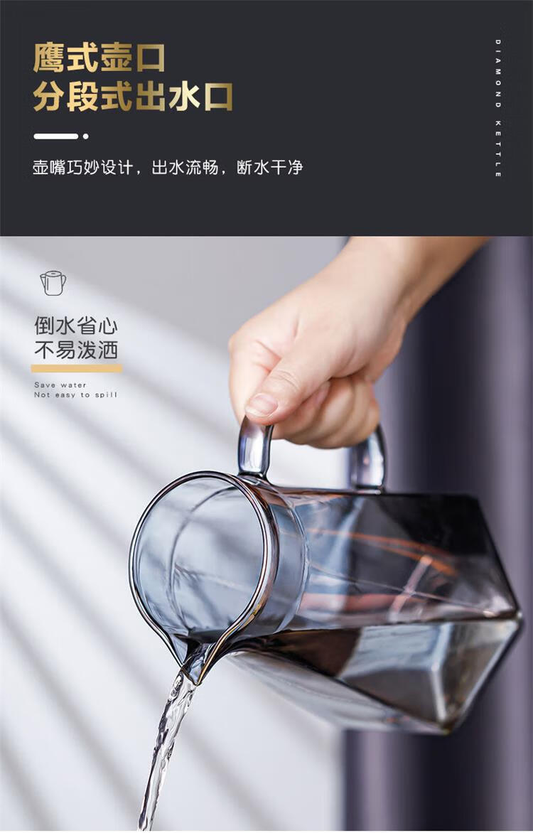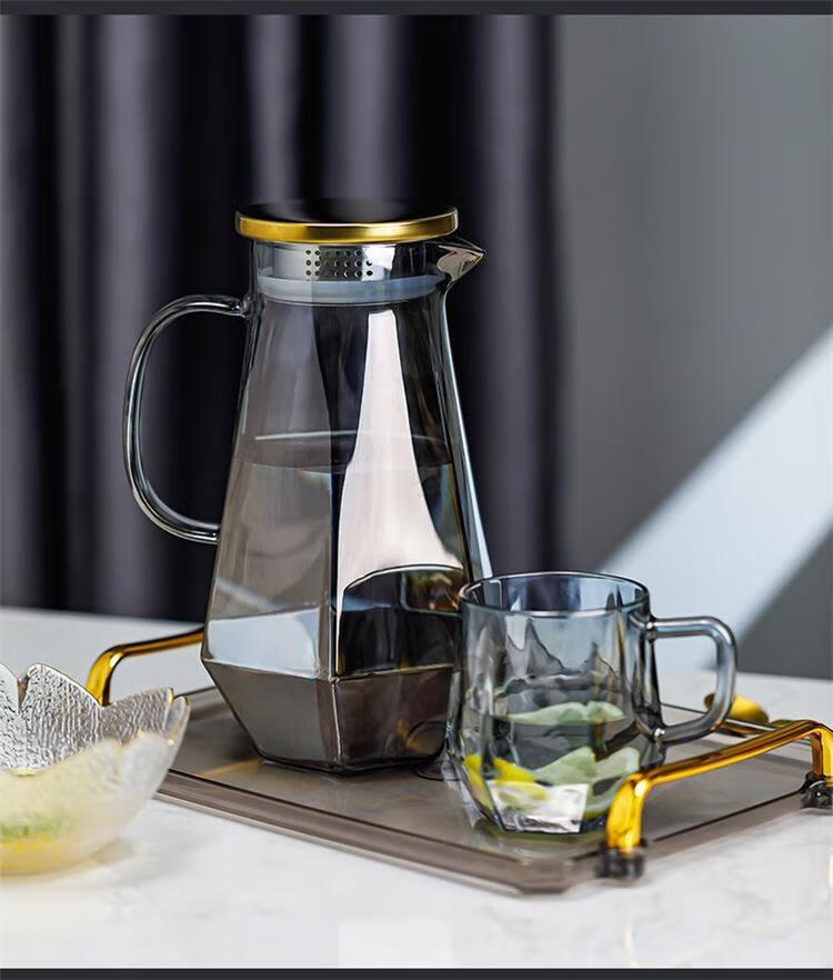 Cold kettle glass cup home set living room cold kettle cup holder light luxury high temperature resistant diamond kettle (elegant gray) + 6 cups + deer stand + tray