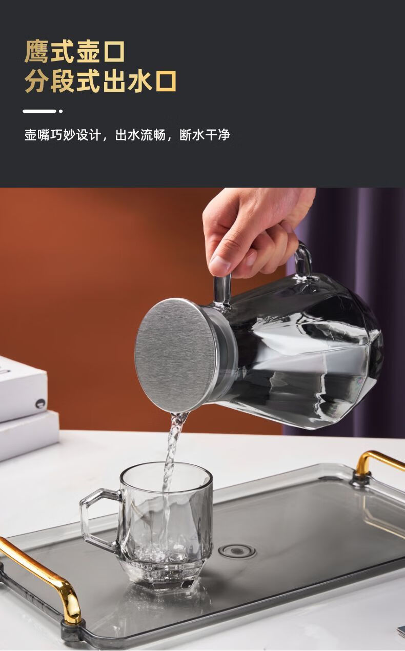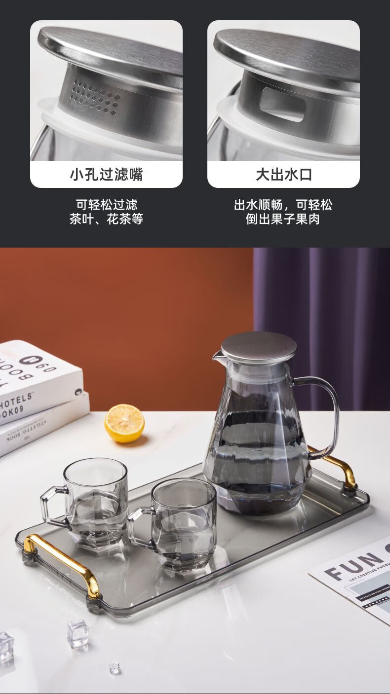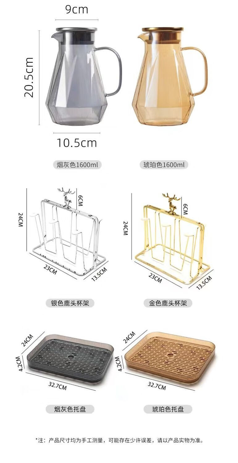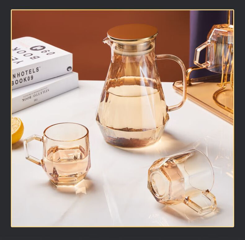 FANCYCHIC cold kettle diamond glass water cup home set living room cold kettle cup holder light luxury high temperature resistant smoke gray high temperature resistant electric ceramic stove diamond kettle + six diamond handle cups home set
