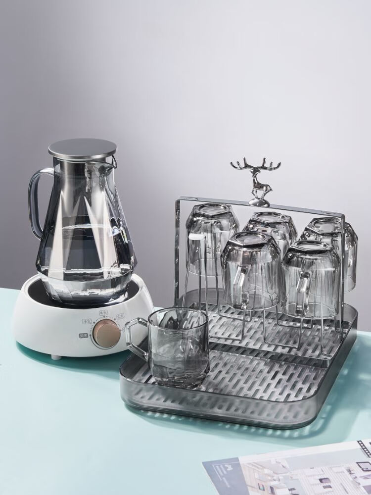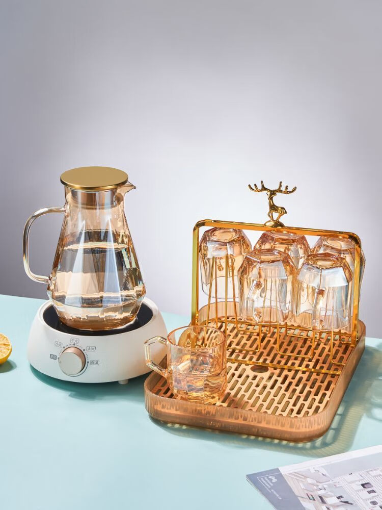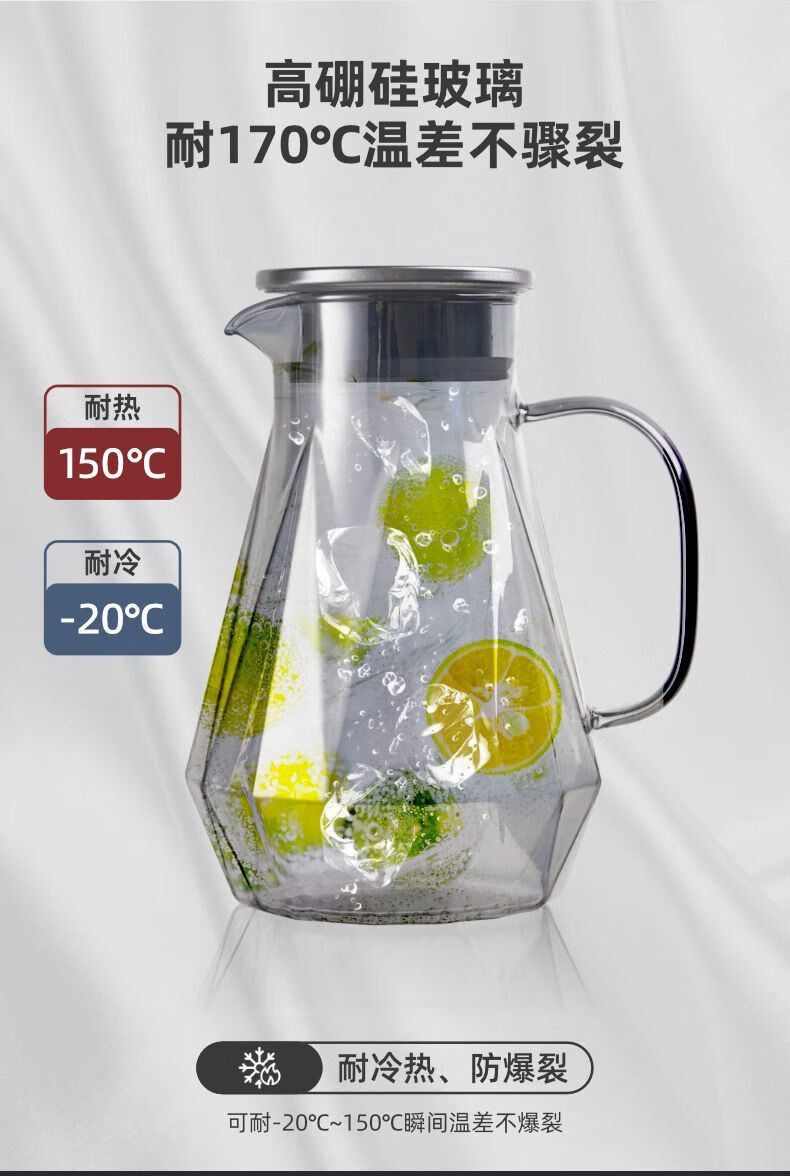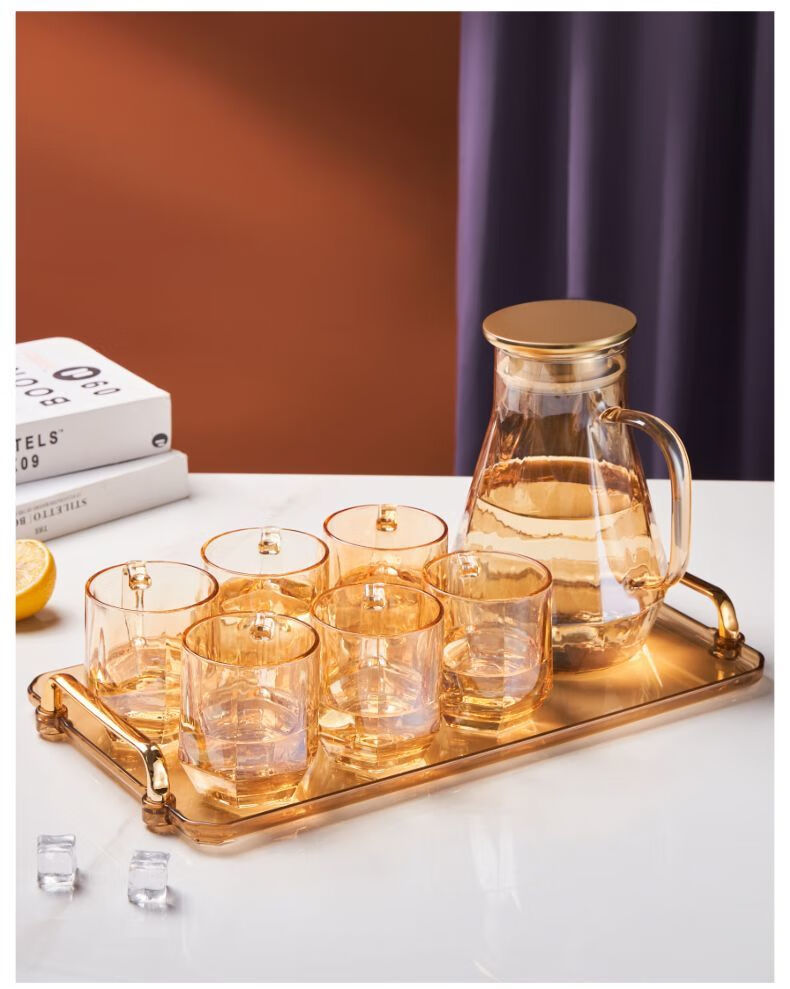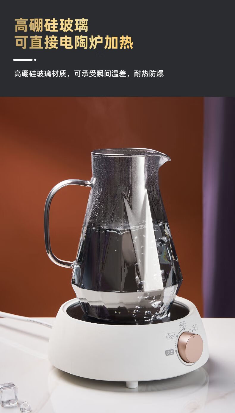 FANCYCHIC cold kettle diamond glass water cup home set living room cold kettle cup holder light luxury high temperature resistant smoke gray high temperature resistant electric ceramic stove diamond kettle + six diamond handle cups home set