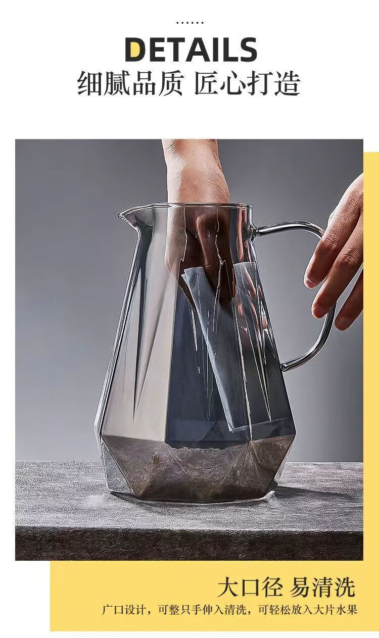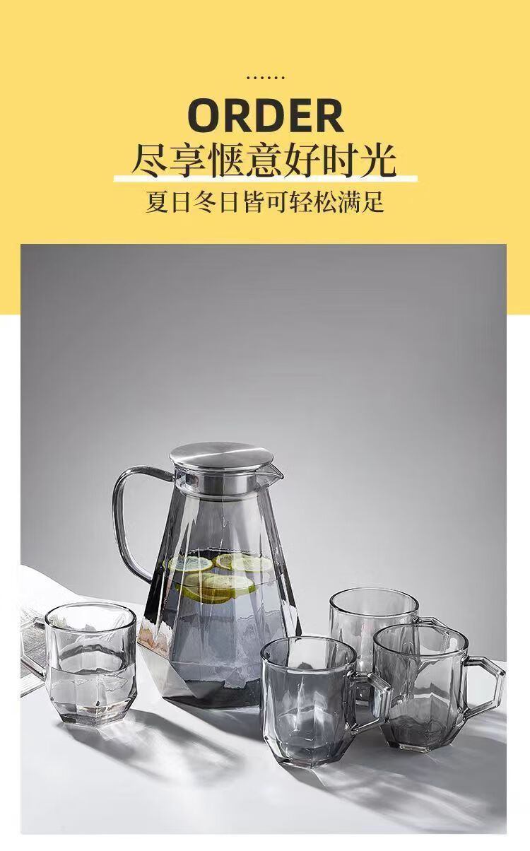 Cup set for home living room high-end high temperature resistant diamond advanced teapot glass cup living room kettle cup amber 1 pot + 6 cups + cup holder + tray default