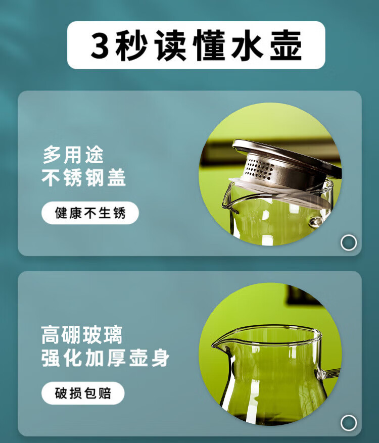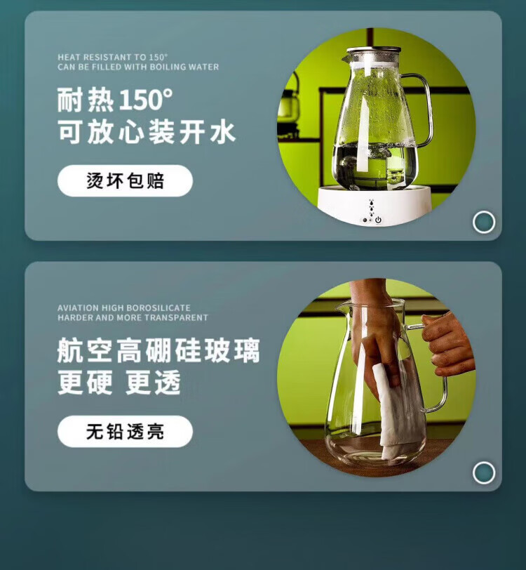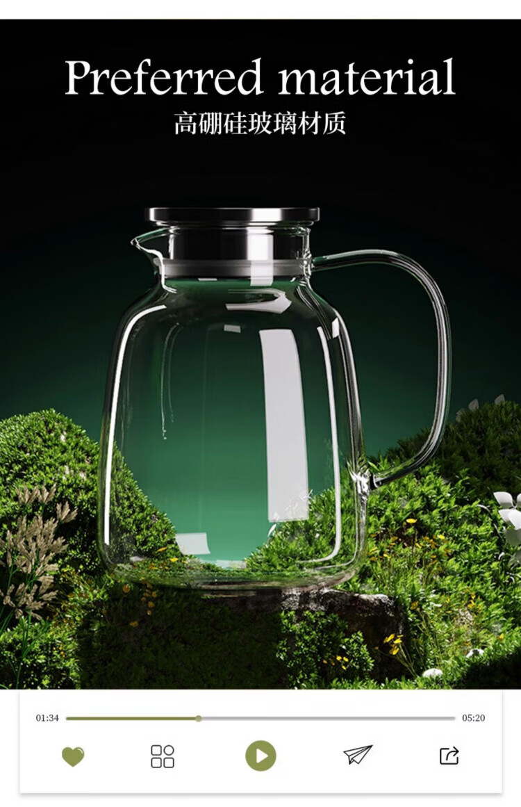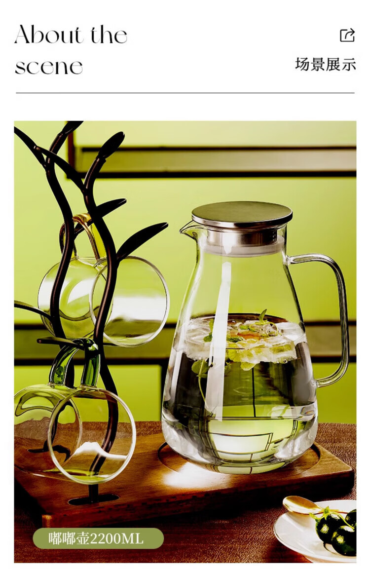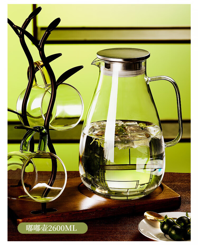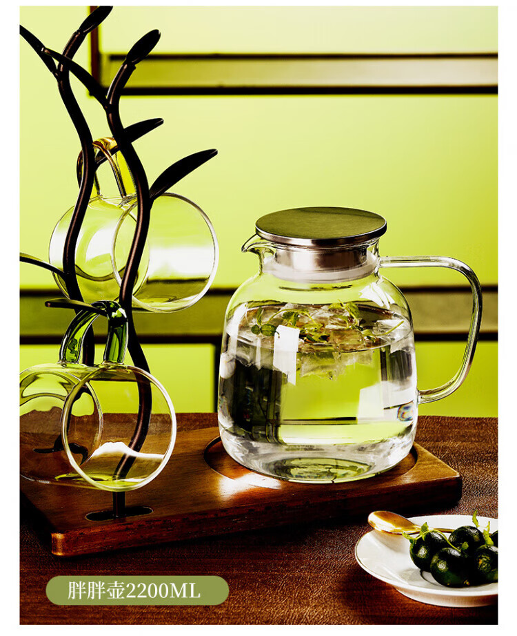 Yaofeng large-capacity heat-resistant high borosilicate glass kettle, high-temperature-resistant household cold water cup, teapot, boiling water bottle, cold water kettle, 50% thickened glass, fat pot 1.8 liters + dual-purpose steel lid