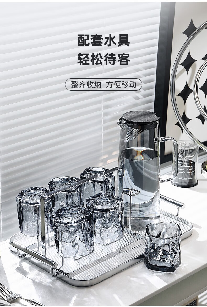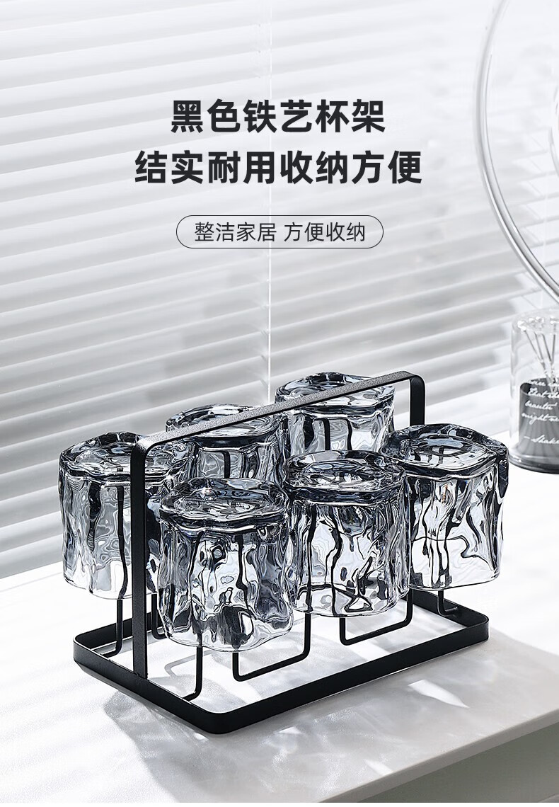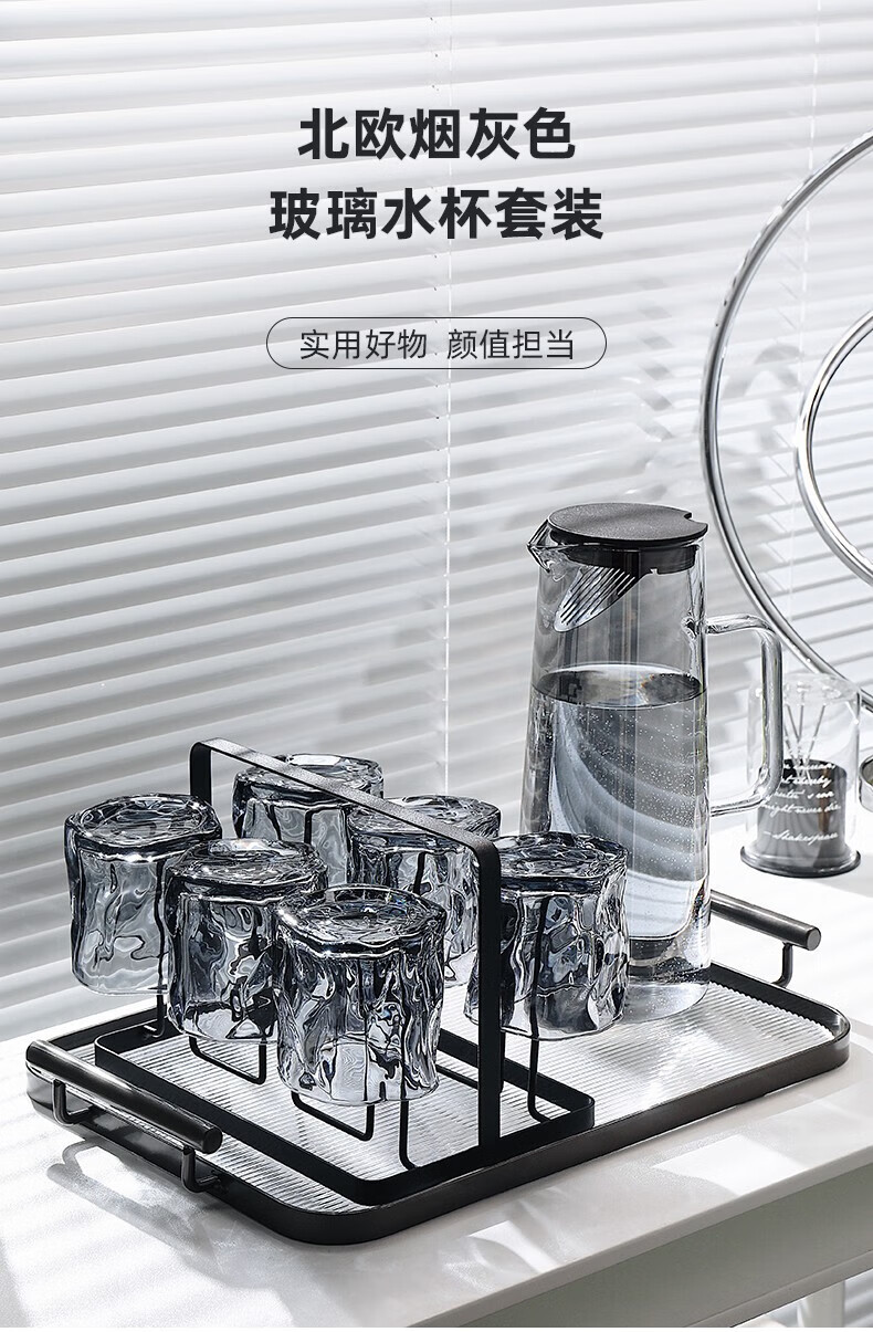 Lugaris Nordic style glass home set living room drinking cup simple family tea cup for entertaining guests 6 ash twist cups + black stand + straight pot + black iron plate