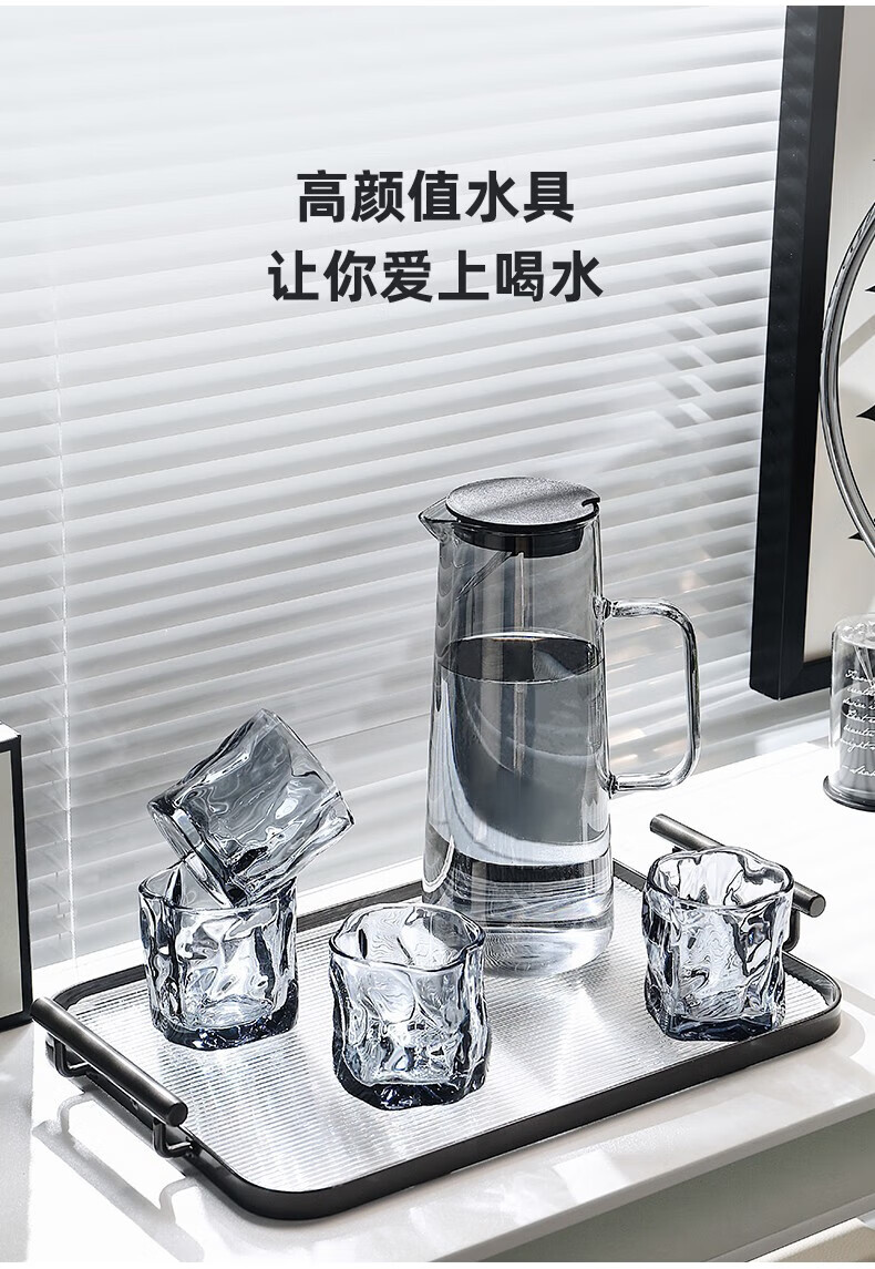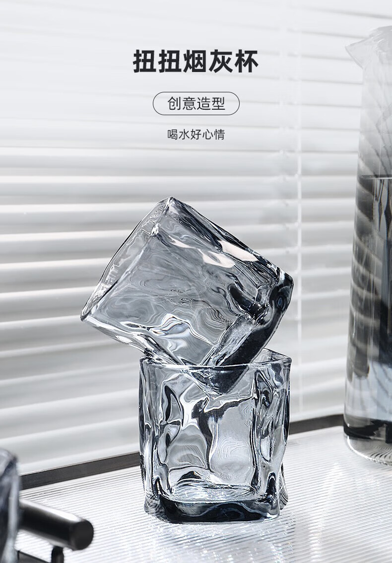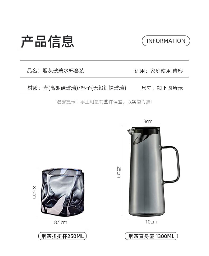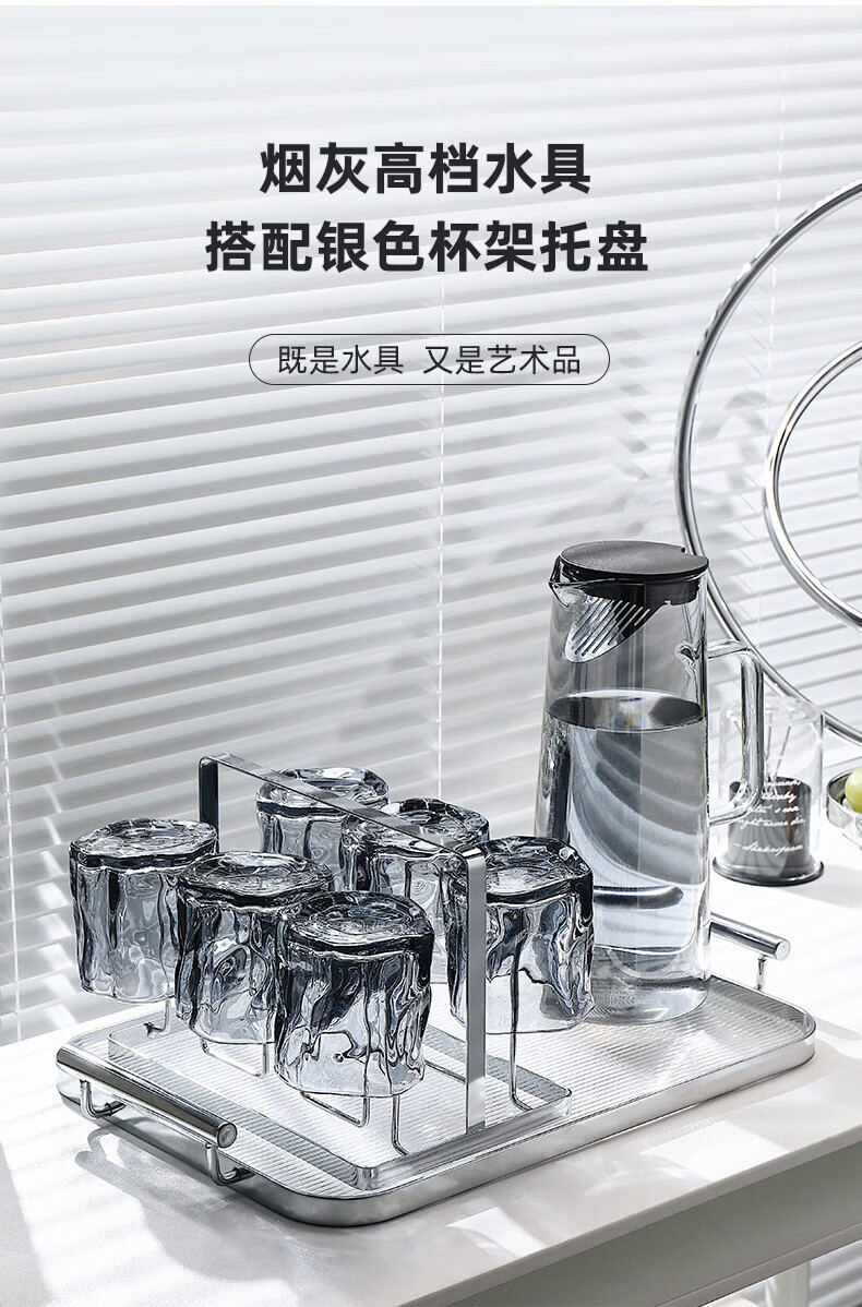 Lugaris Nordic style glass home set living room drinking cup simple family tea cup for entertaining guests 6 ash twist cups + black stand + straight pot + black iron plate