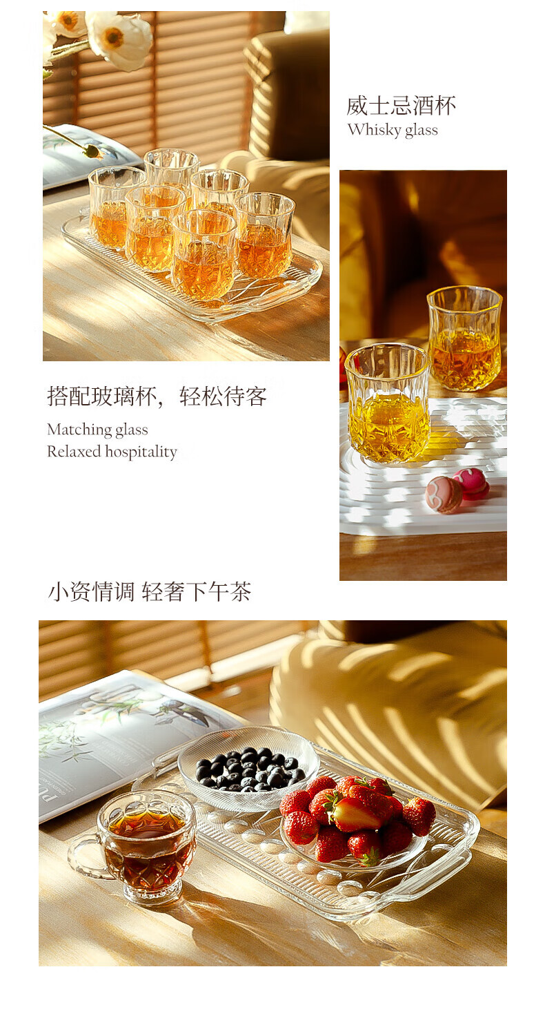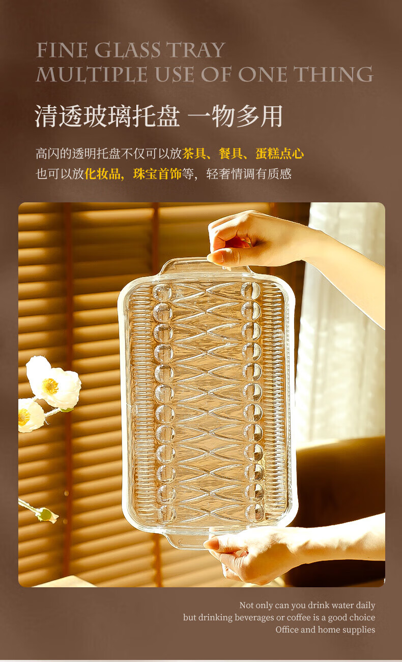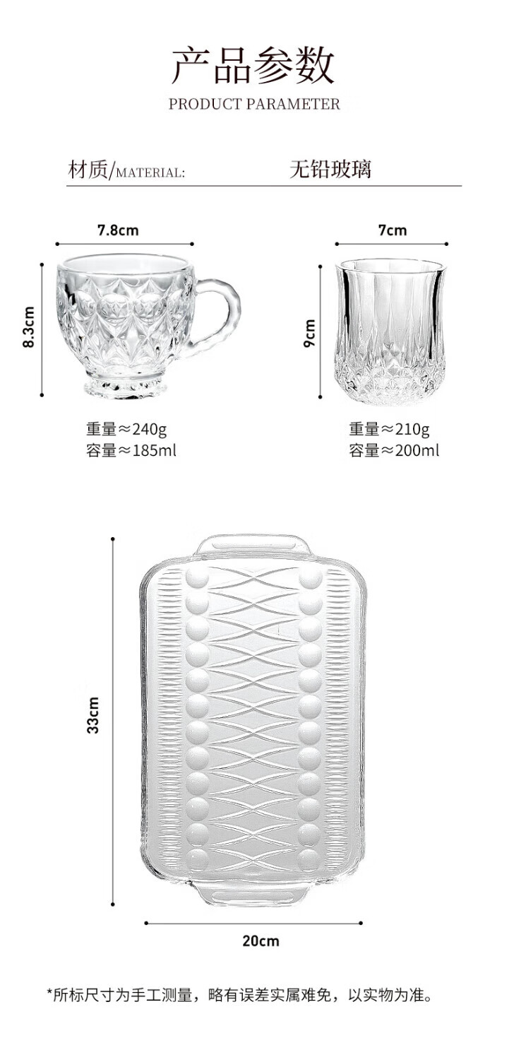 Langxu glass cup and plate set seven-piece set for new home, living room coffee table ornaments, thickened cups 6 pieces with tray, diamond style seven-piece set
