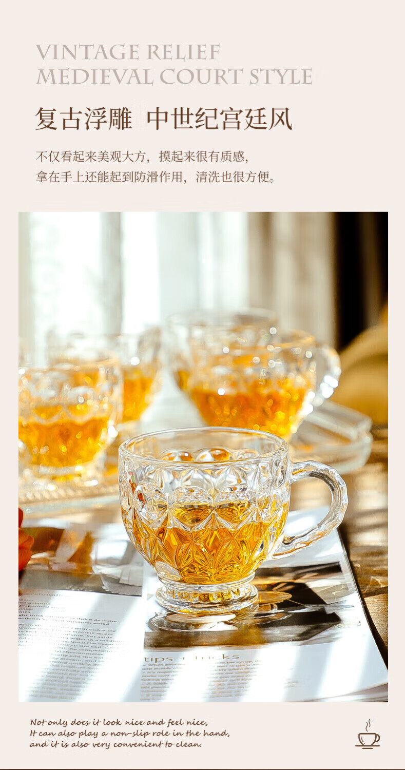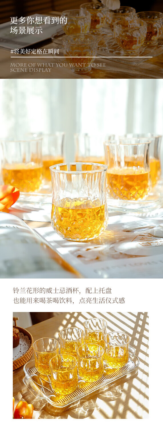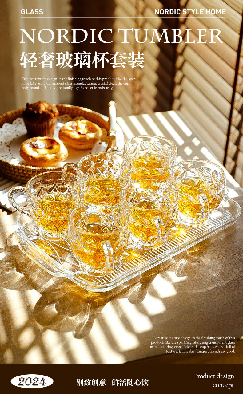 Langxu glass cup and plate set seven-piece set for new home, living room coffee table ornaments, thickened cups 6 pieces with tray, diamond style seven-piece set