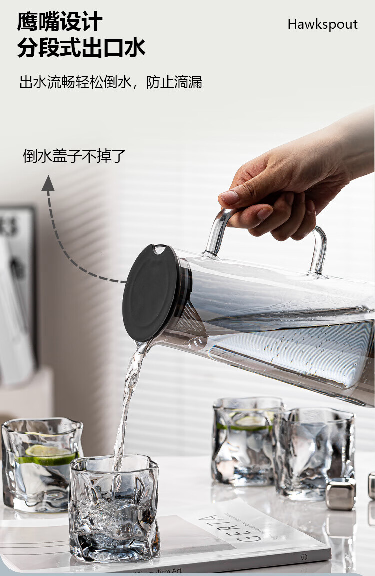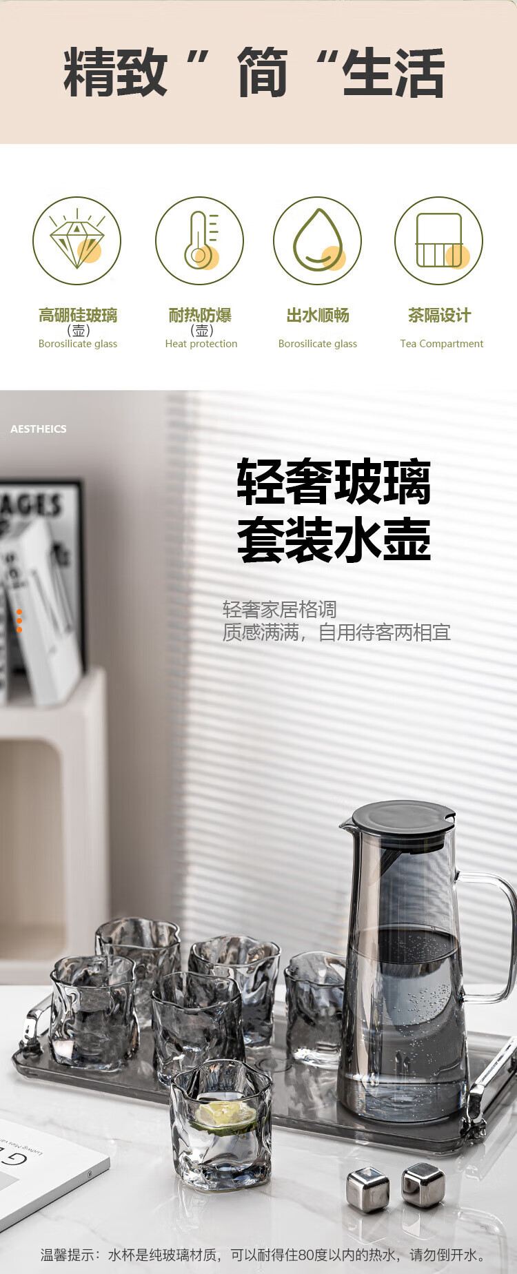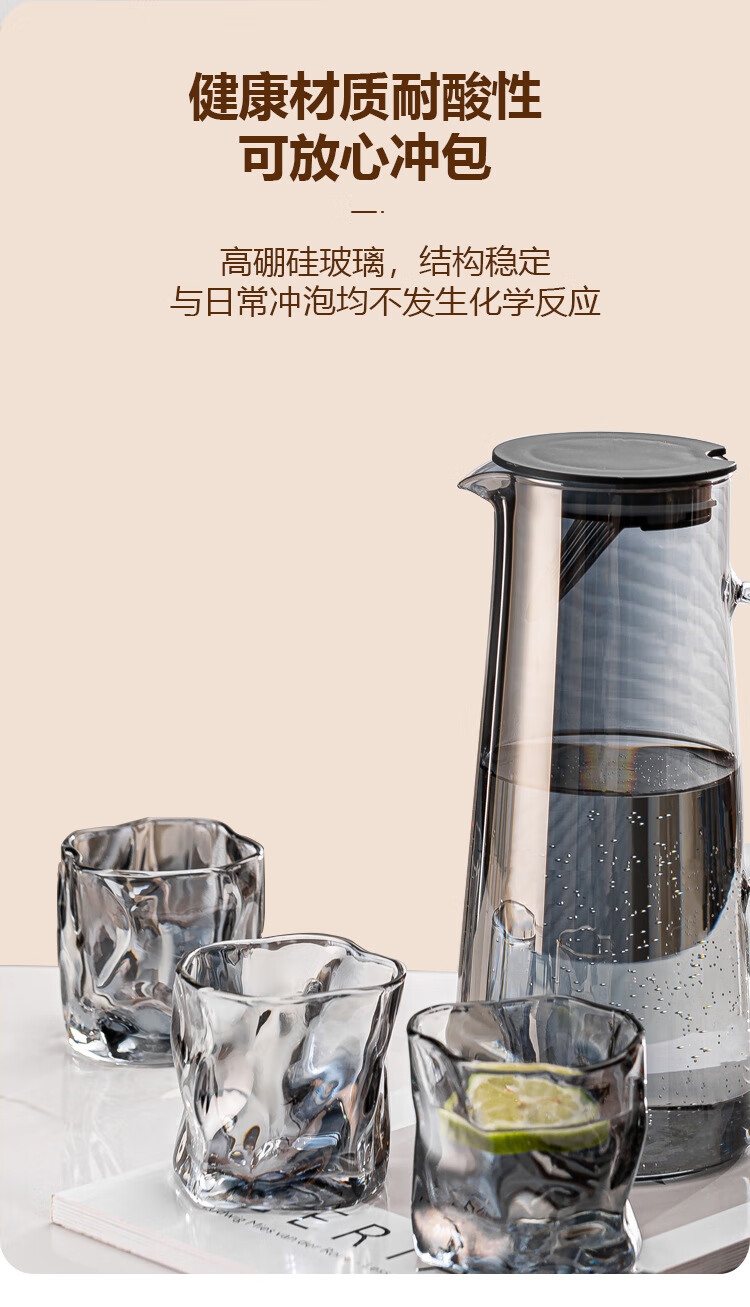 LOEB Nordic high-end glass home set living room drinking cup simple family tea cup for entertaining guests 1 pot + 6 twist cups + ash tray + silver cup holder