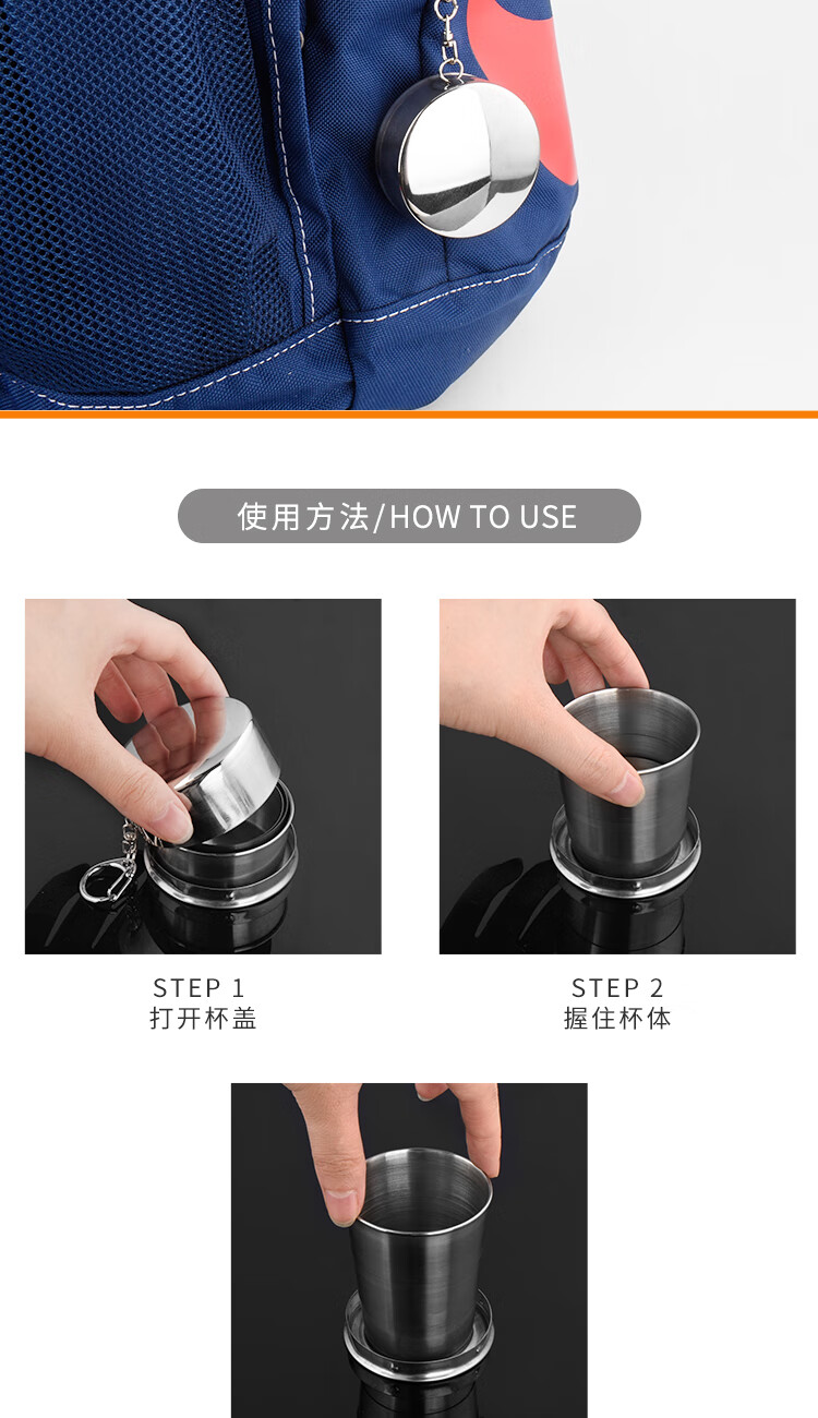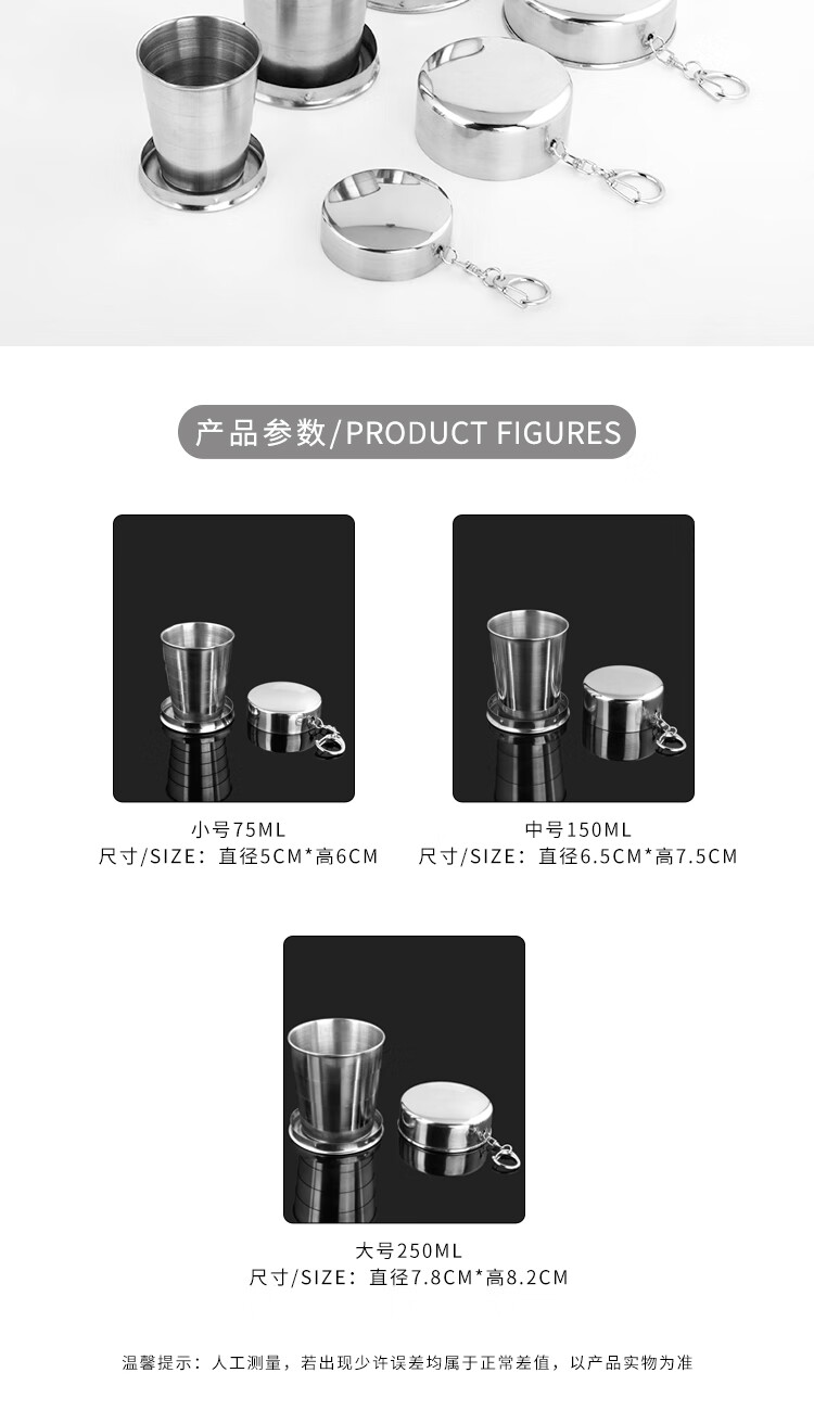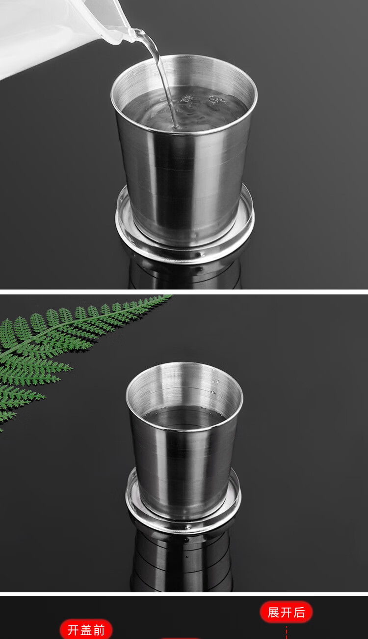 High-quality travel folding cup 316 stainless steel stainless steel folding water cup/portable outdoor travel compression cup, 2 small, medium and large each