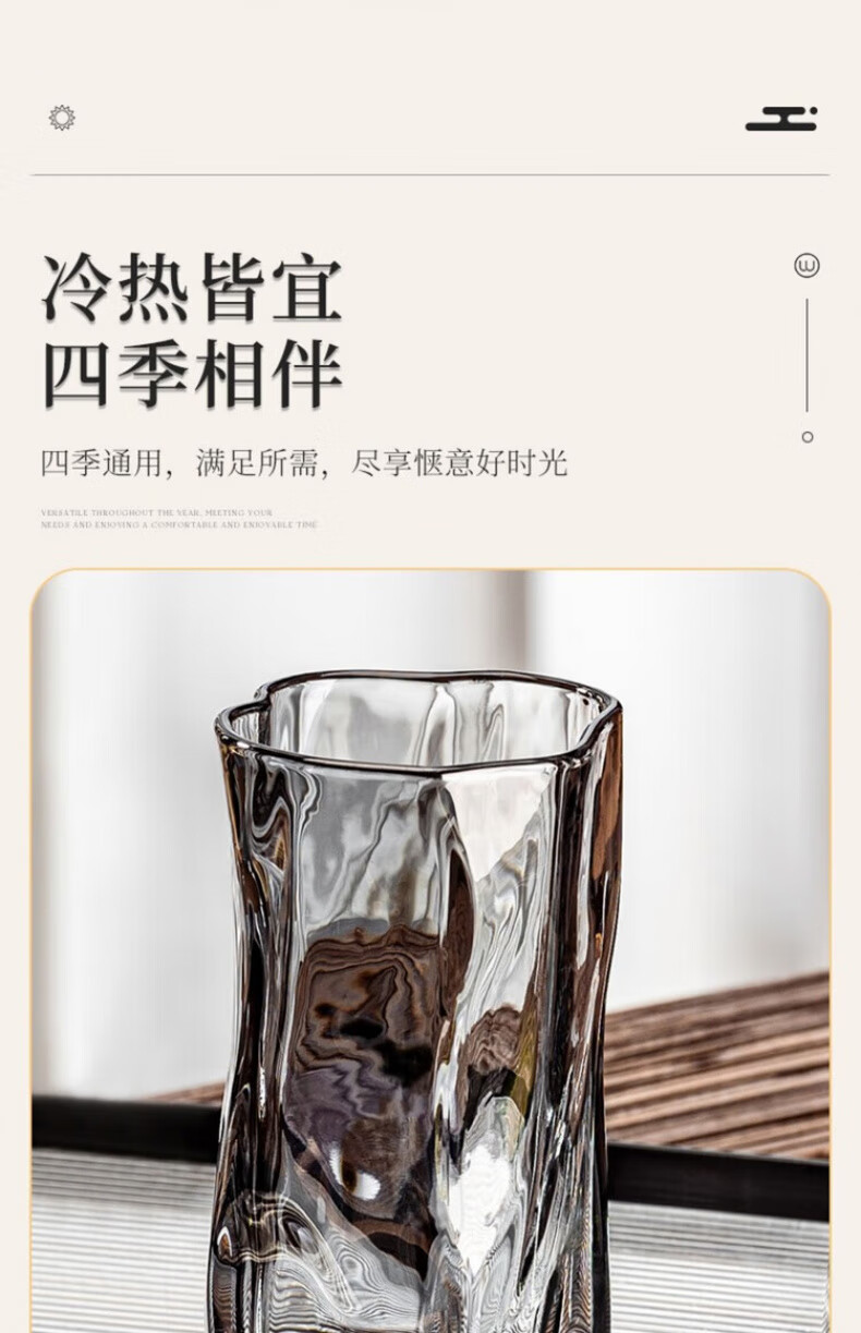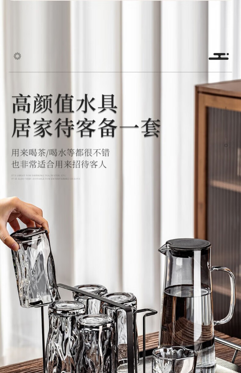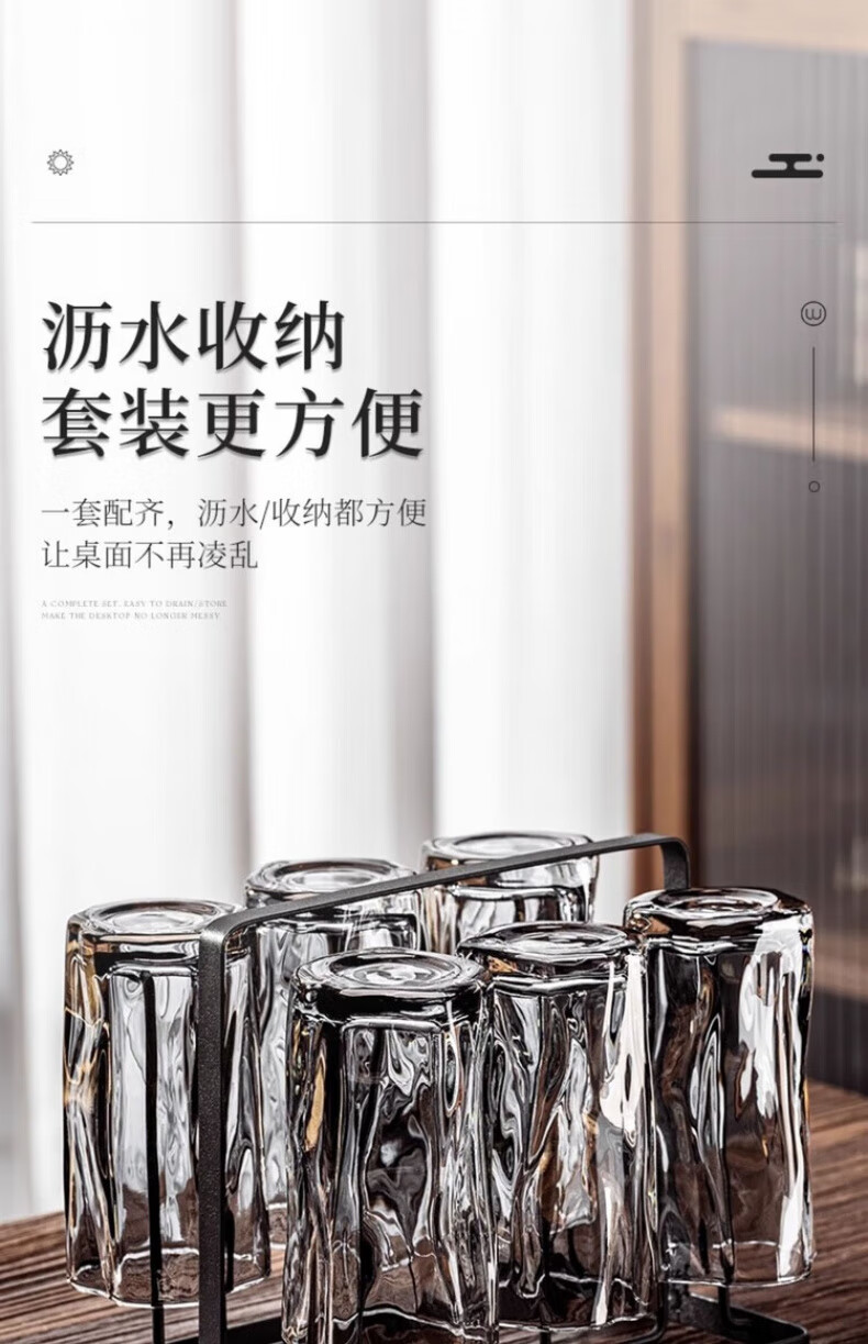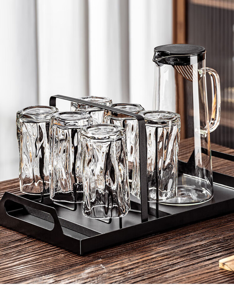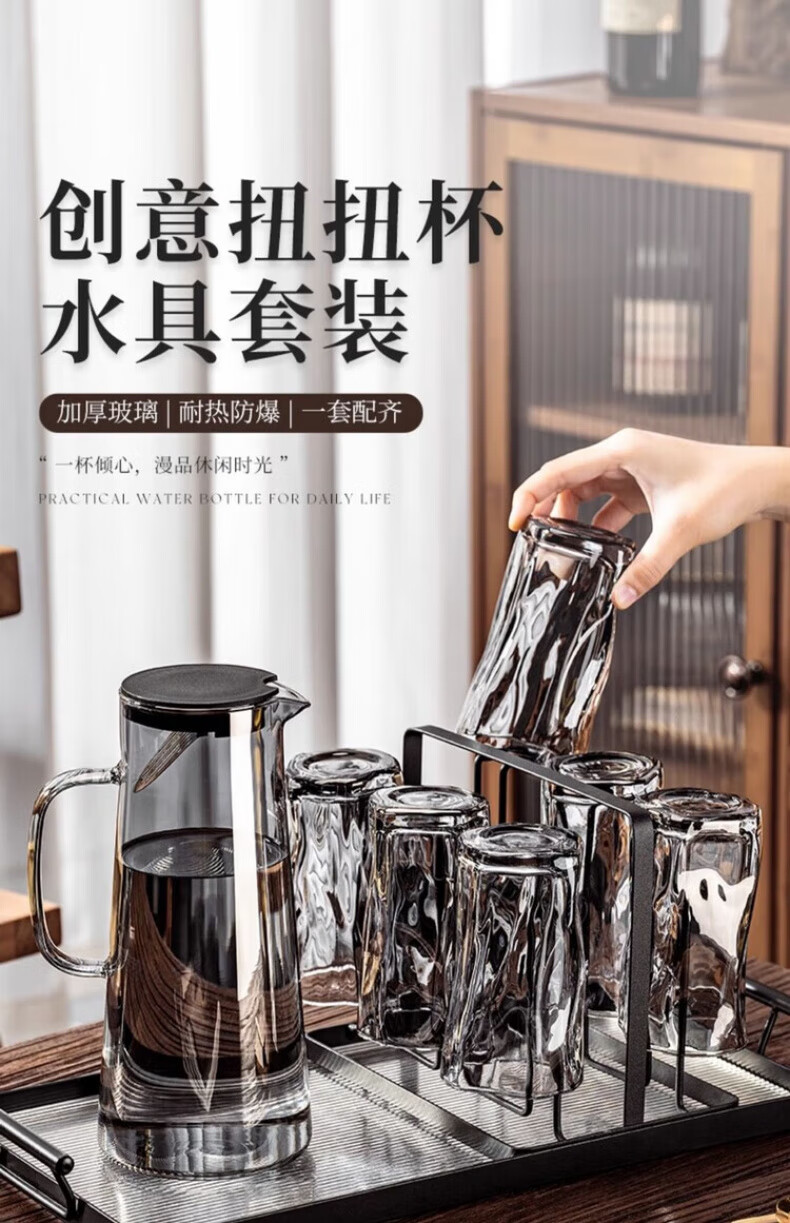 DIKTT German twist glass water cup set for home living room to entertain guests, high-looking tea set and juice cup 275ml ash cup x6 + ash straight pot 1300ml