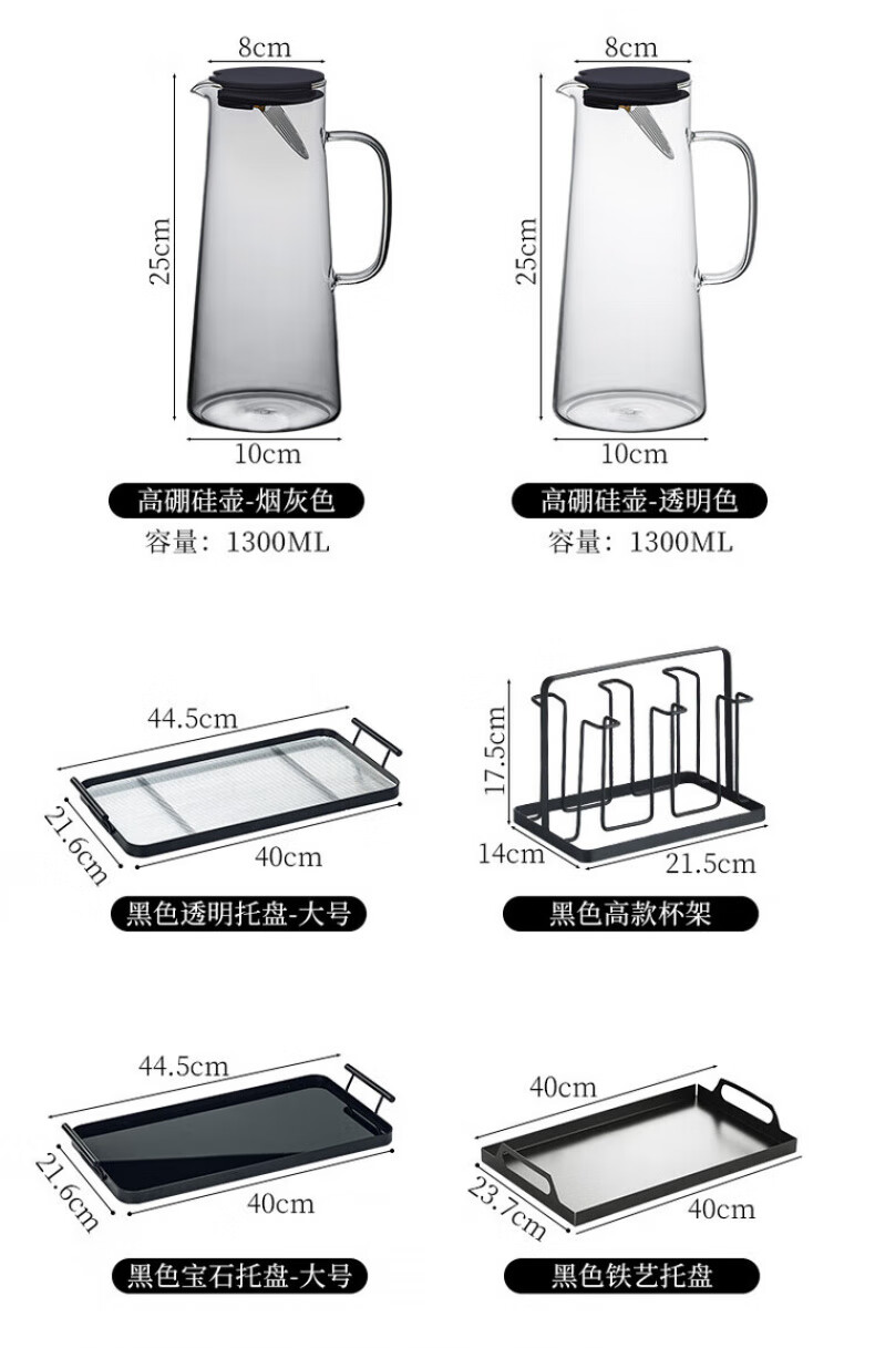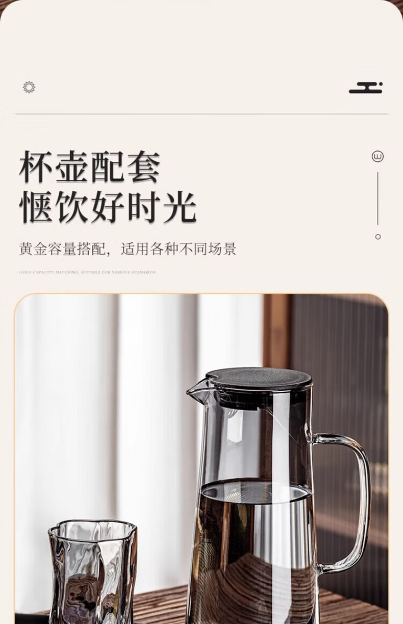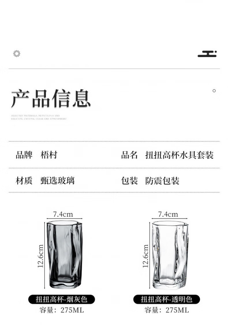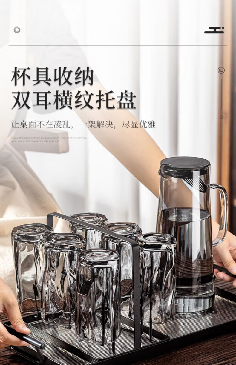 DIKTT German twist glass water cup set for home living room to entertain guests, high-looking tea set and juice cup 275ml ash cup x6 + ash straight pot 1300ml