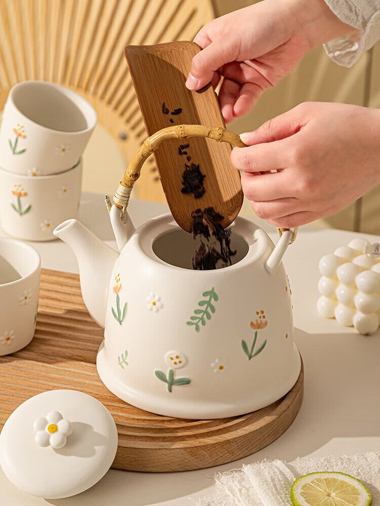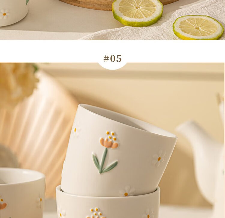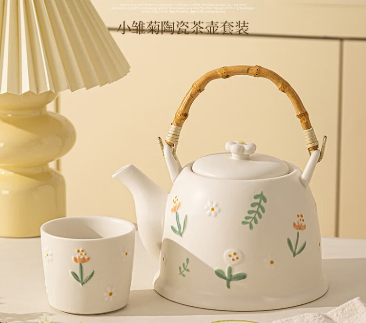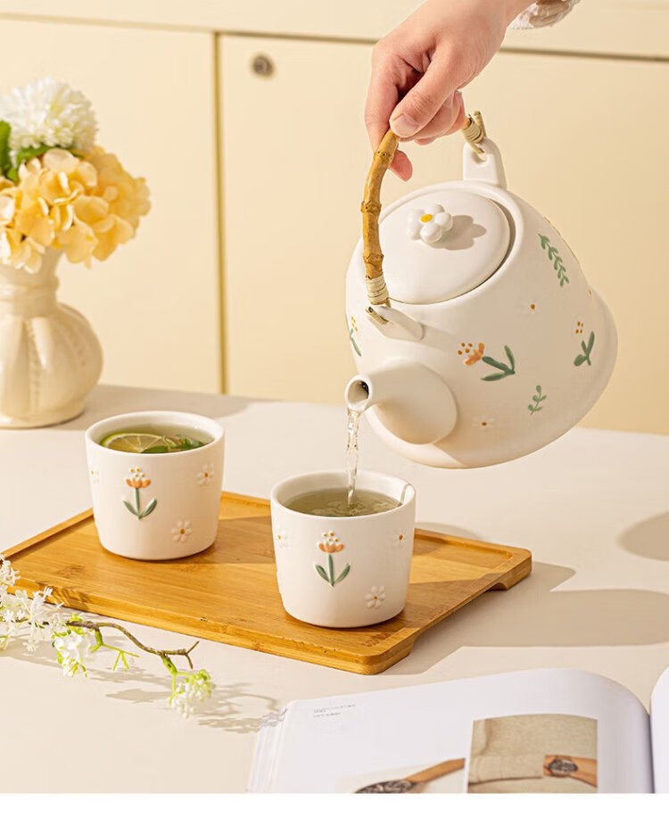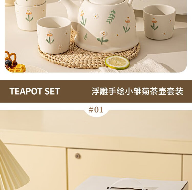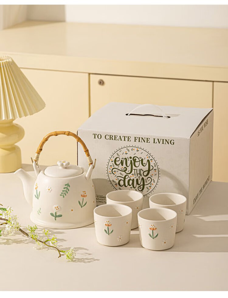 Meidu ceramic water set mug afternoon tea living room flower teapot teacup set housewarming wedding gift box small daisy flower tea set one pot four cups