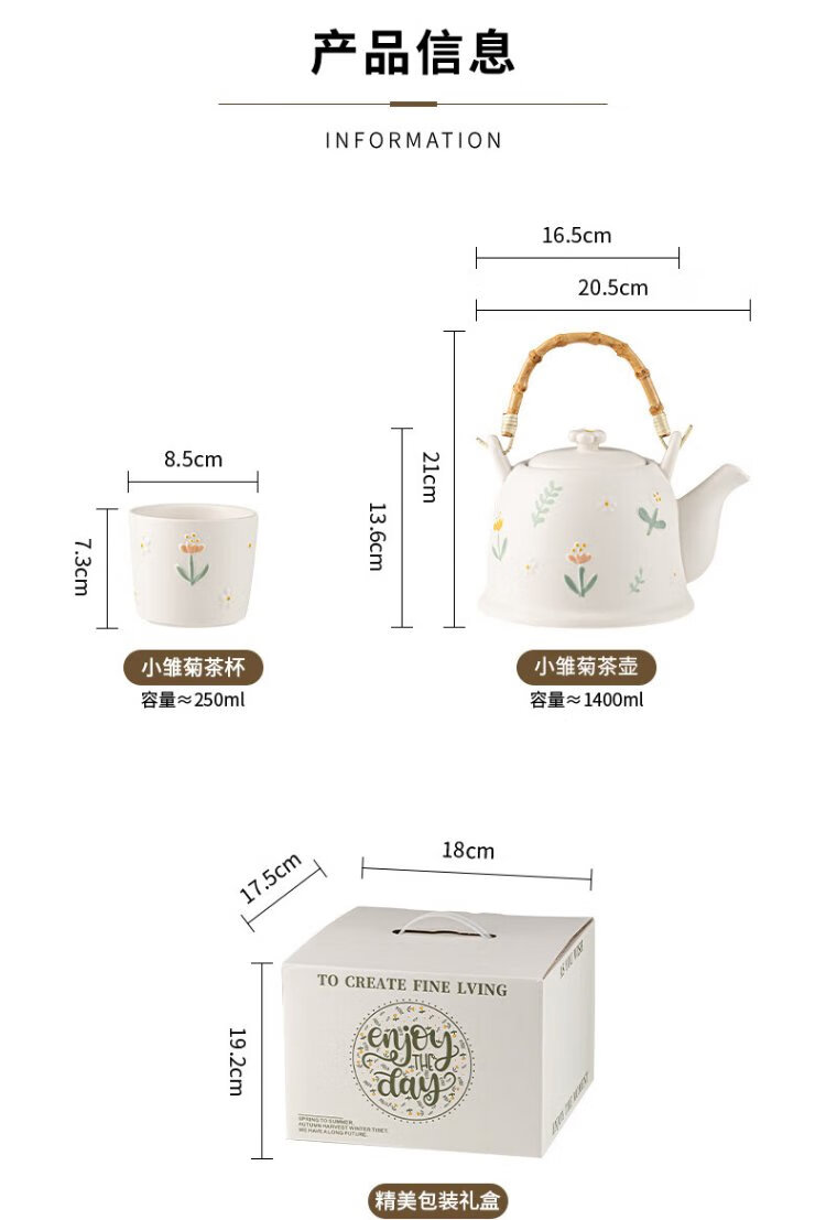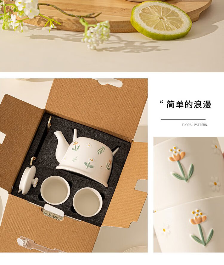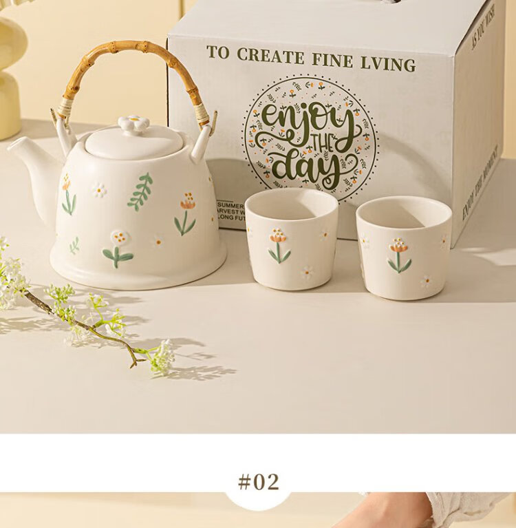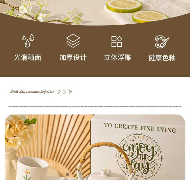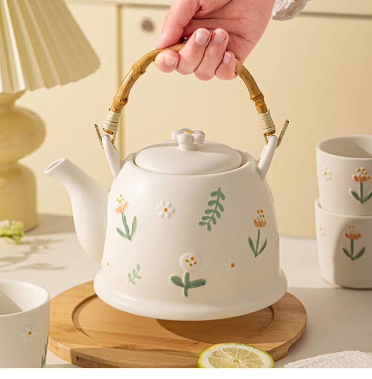 Meidu ceramic water set mug afternoon tea living room flower teapot teacup set housewarming wedding gift box small daisy flower tea set one pot four cups