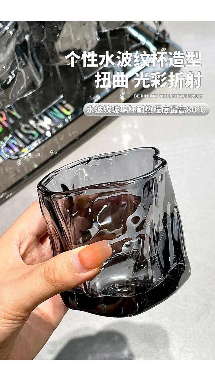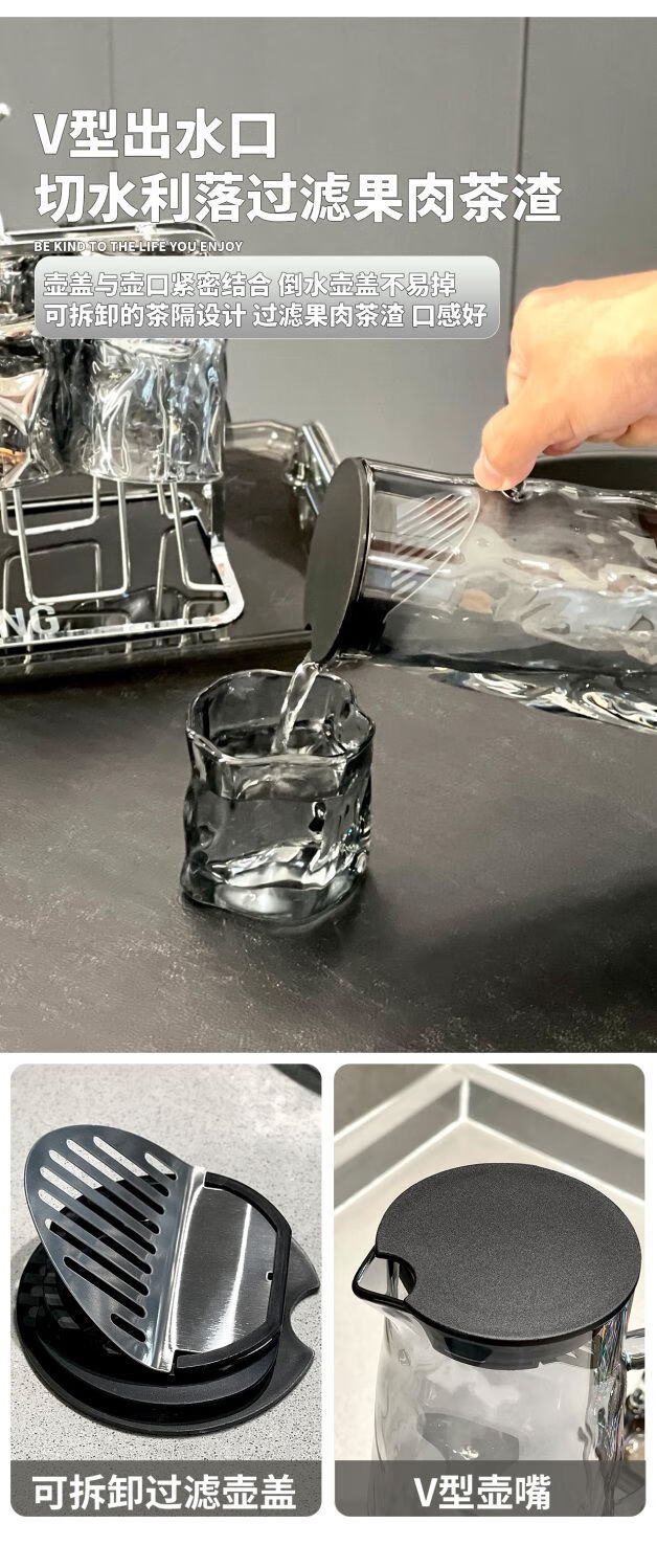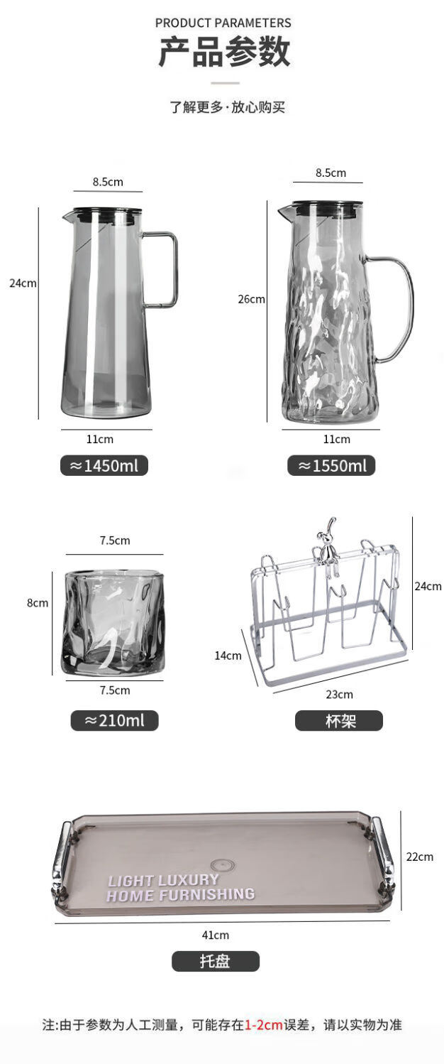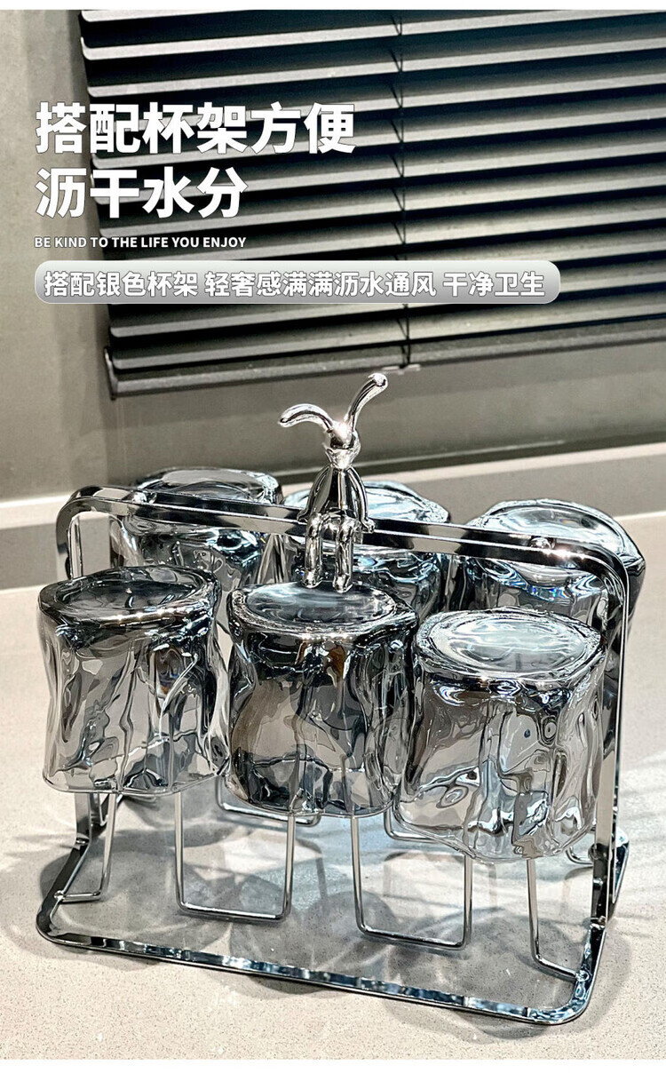 Renowned Nordic Feng Shui set household cold kettle glass living room drinking cup family hospitality tea cup high-end 1 glacier pot + 6 ice pattern cups + tray + cup holder