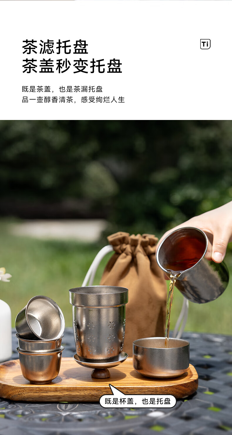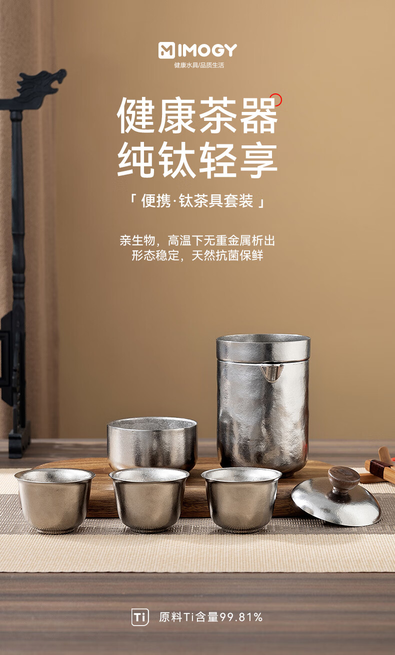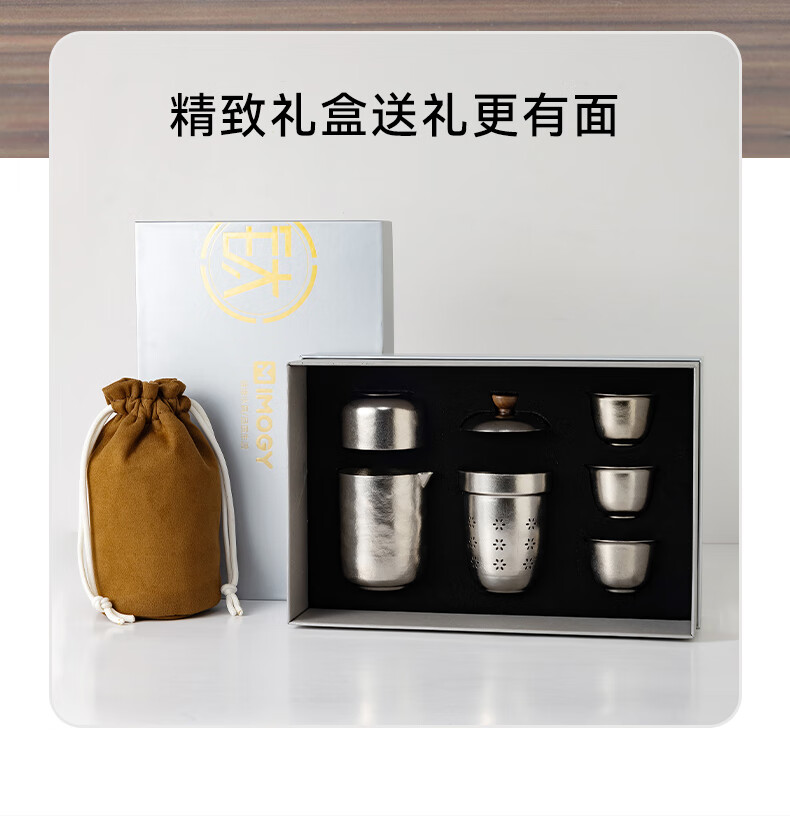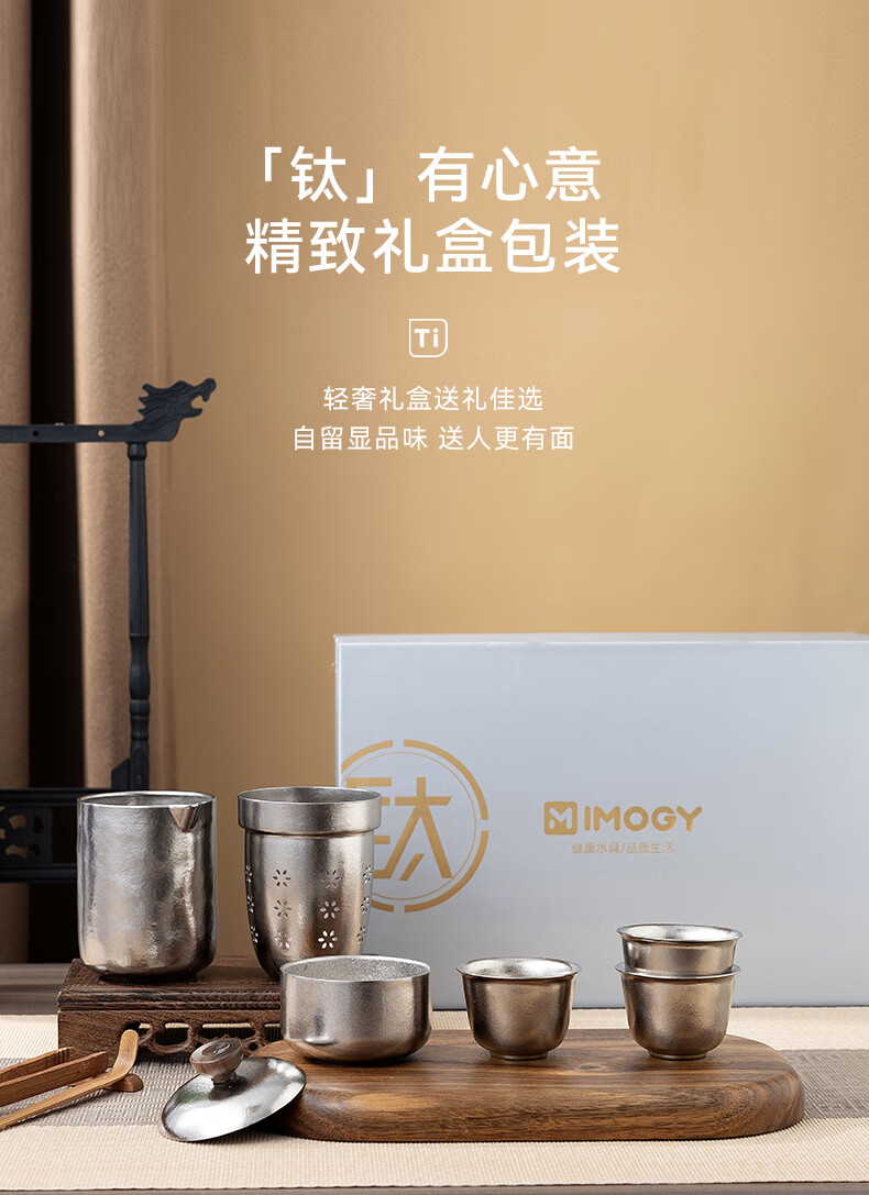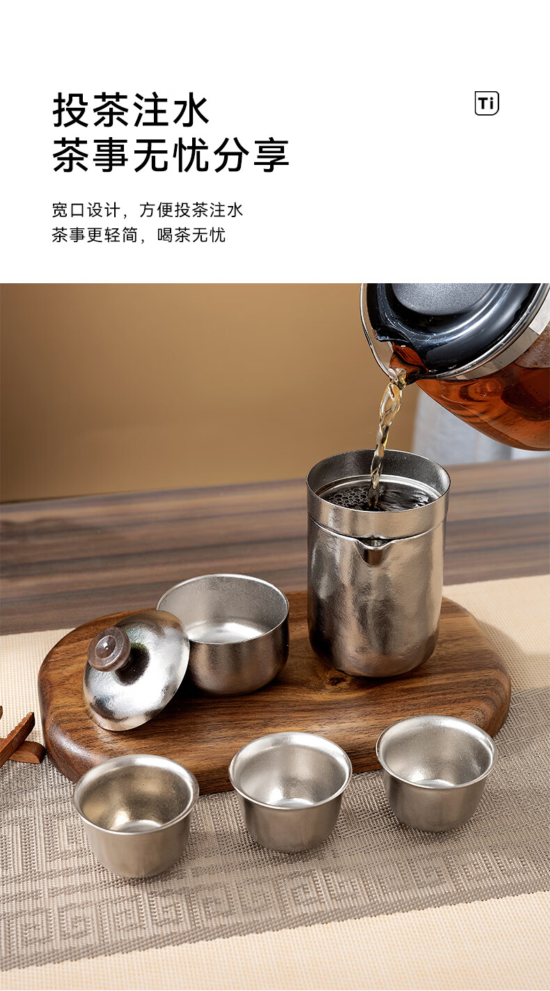 IMOGY Pure Titanium Travel Tea Set Tea Cup Holiday Gift Insulation Anti-scald Outdoor Camping Portable Quick Cup Tea Cup Titanium Natural Color 1 Pot 3 Cup Gift Box Internal and External Pure Titanium