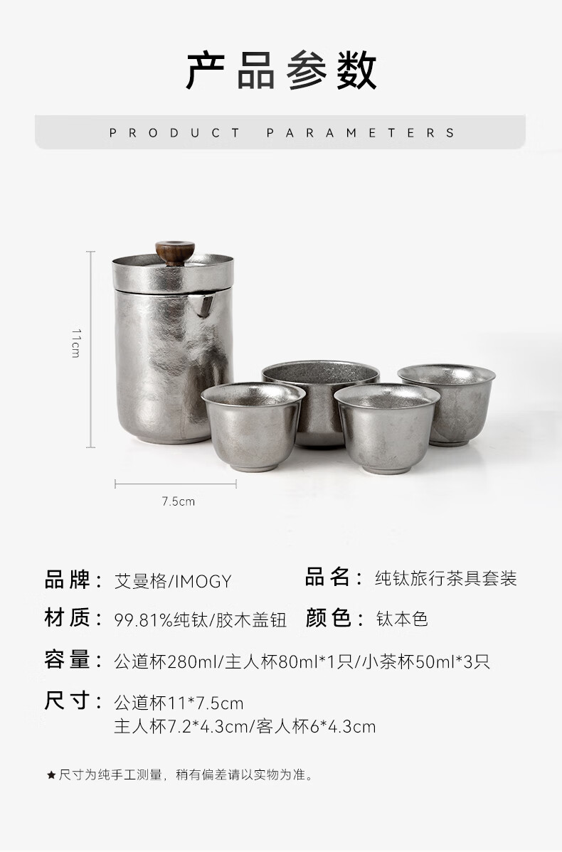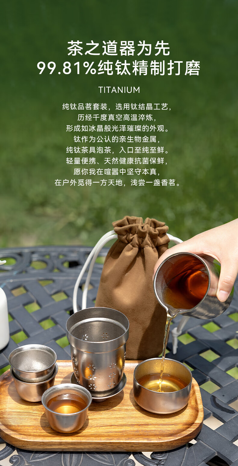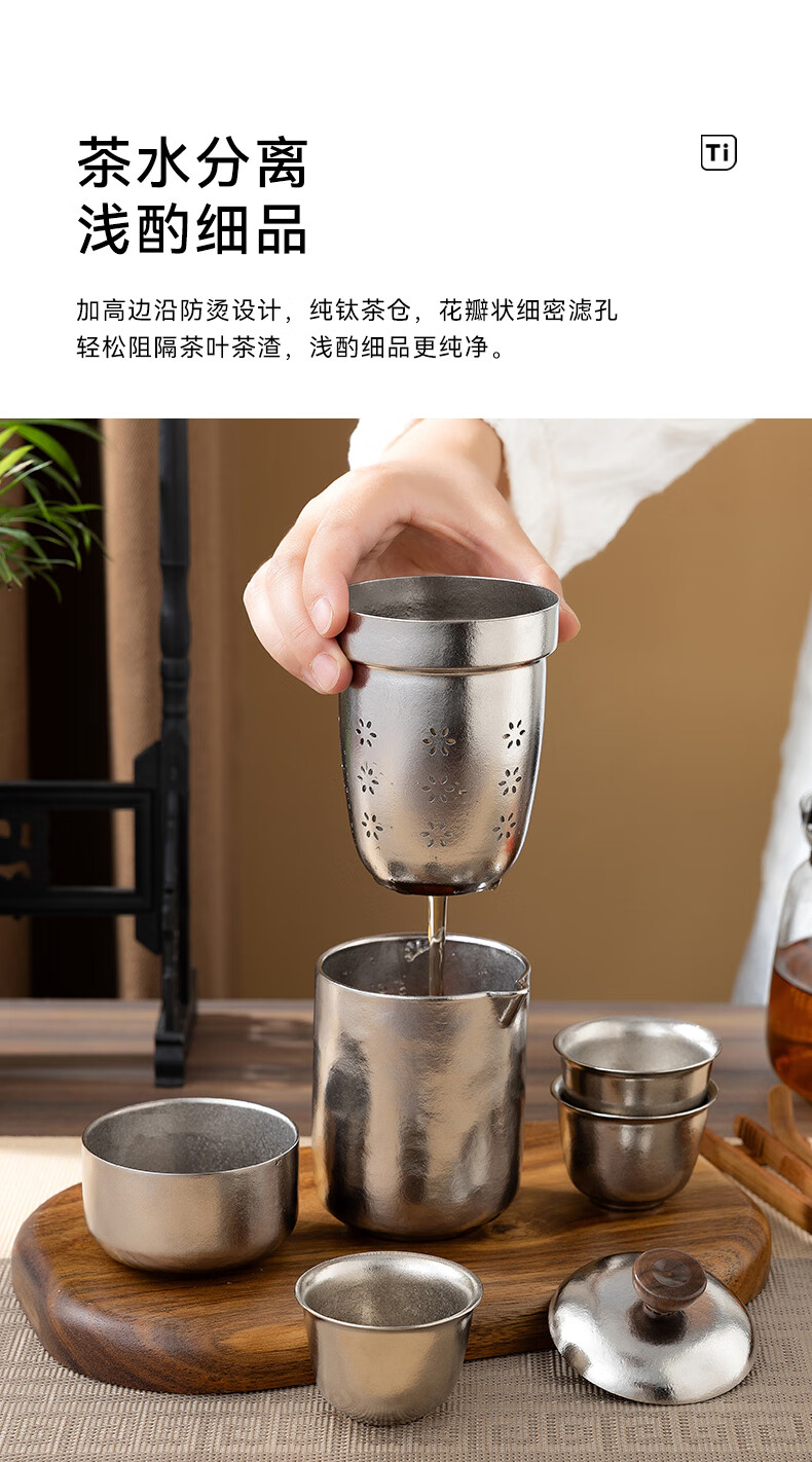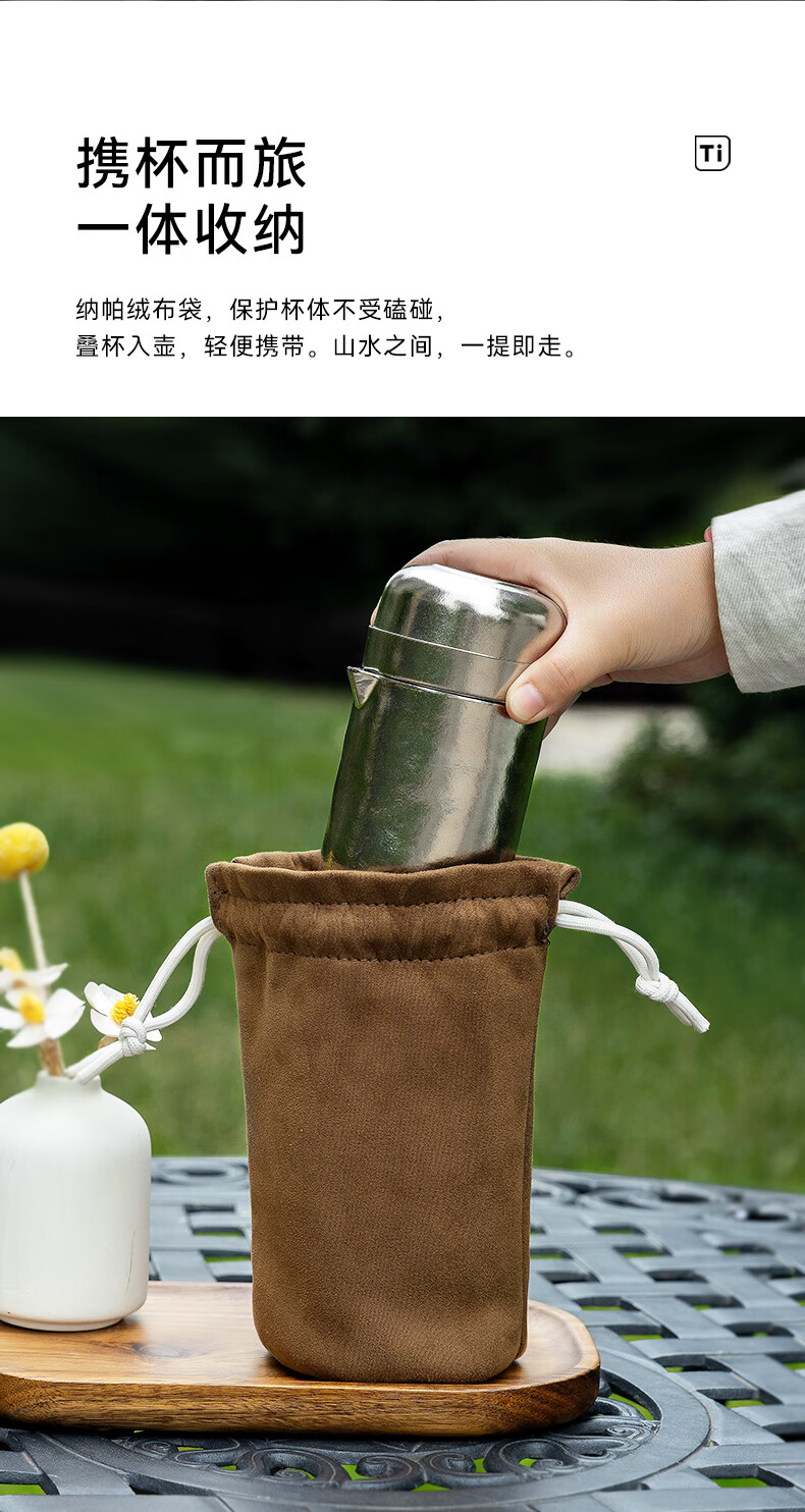 IMOGY Pure Titanium Travel Tea Set Tea Cup Holiday Gift Insulation Anti-scald Outdoor Camping Portable Quick Cup Tea Cup Titanium Natural Color 1 Pot 3 Cup Gift Box Internal and External Pure Titanium