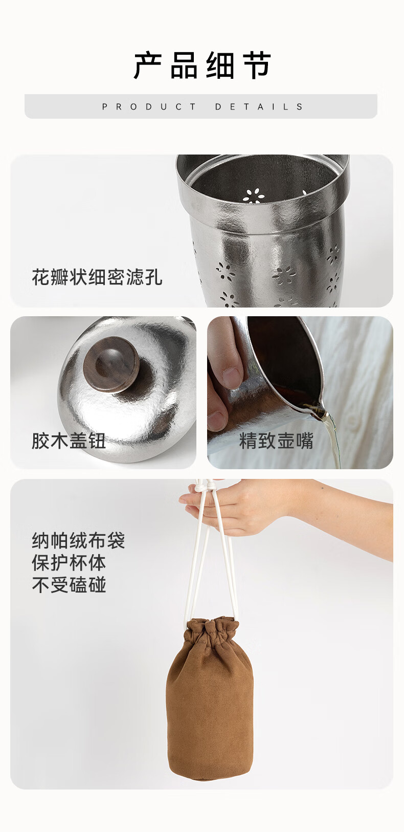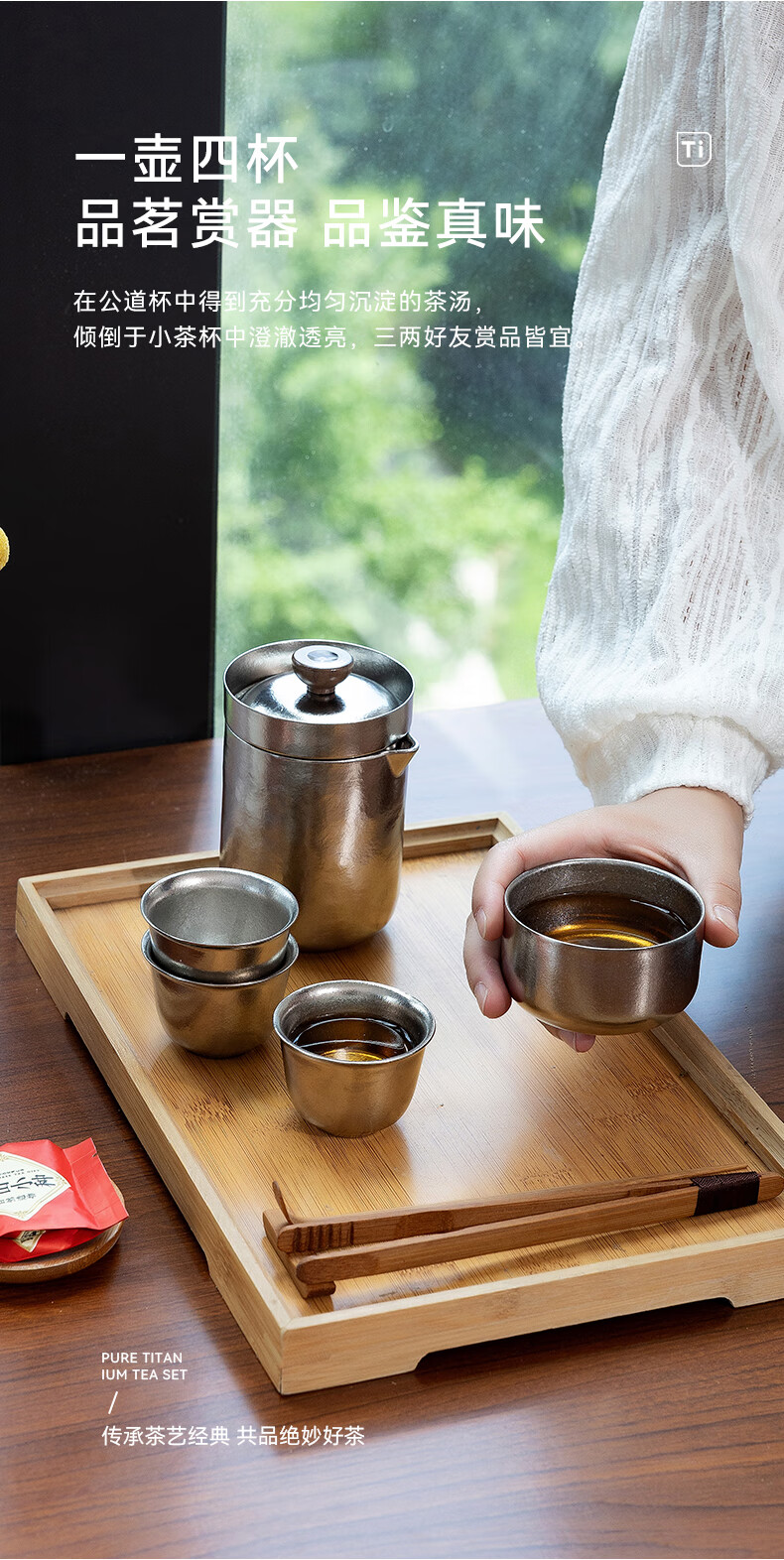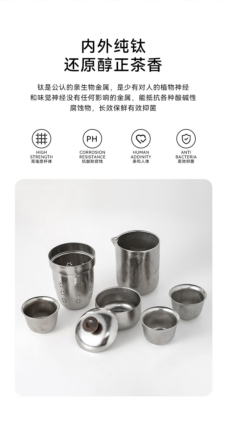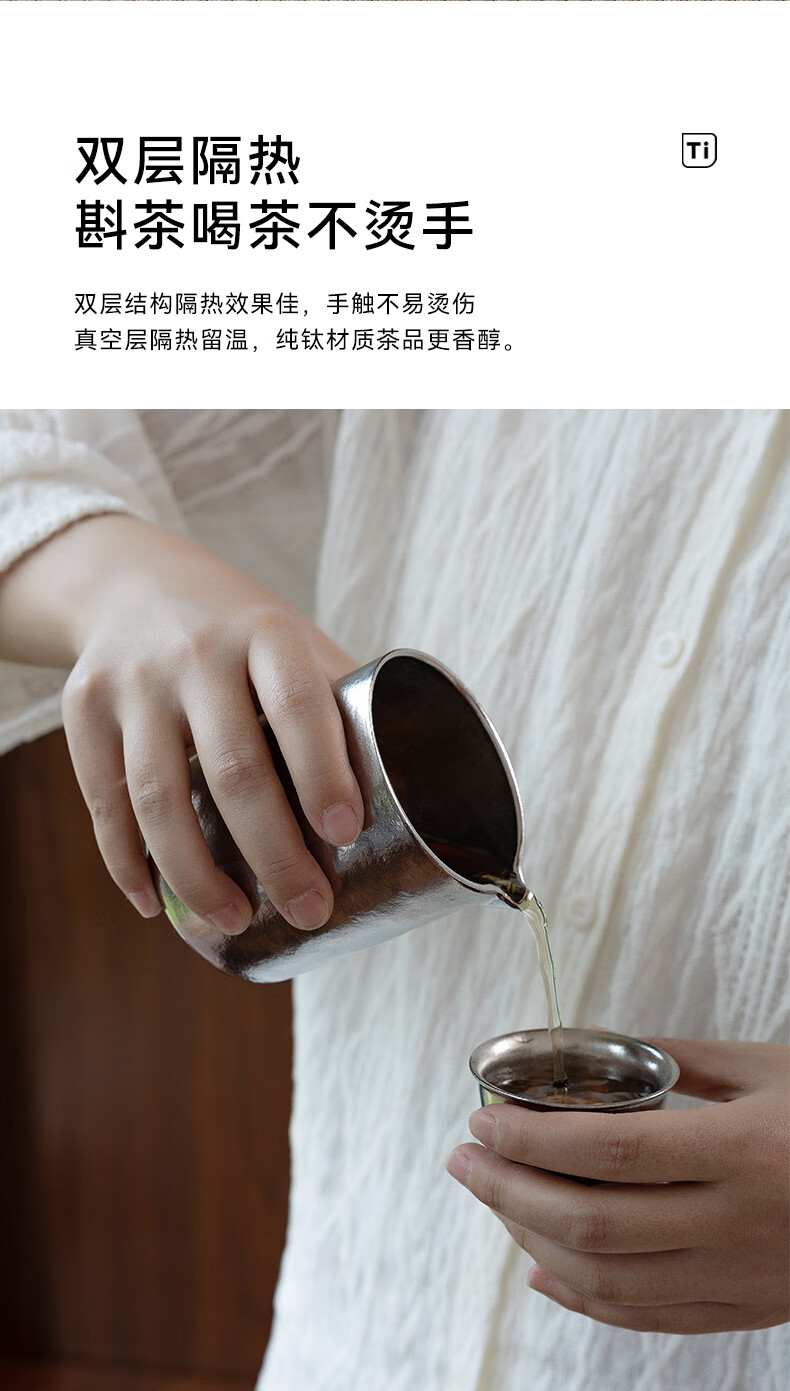 IMOGY Pure Titanium Travel Tea Set Tea Cup Holiday Gift Insulation Anti-scald Outdoor Camping Portable Quick Cup Tea Cup Titanium Natural Color 1 Pot 3 Cup Gift Box Internal and External Pure Titanium
