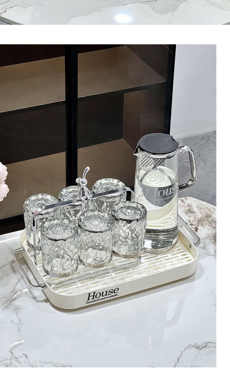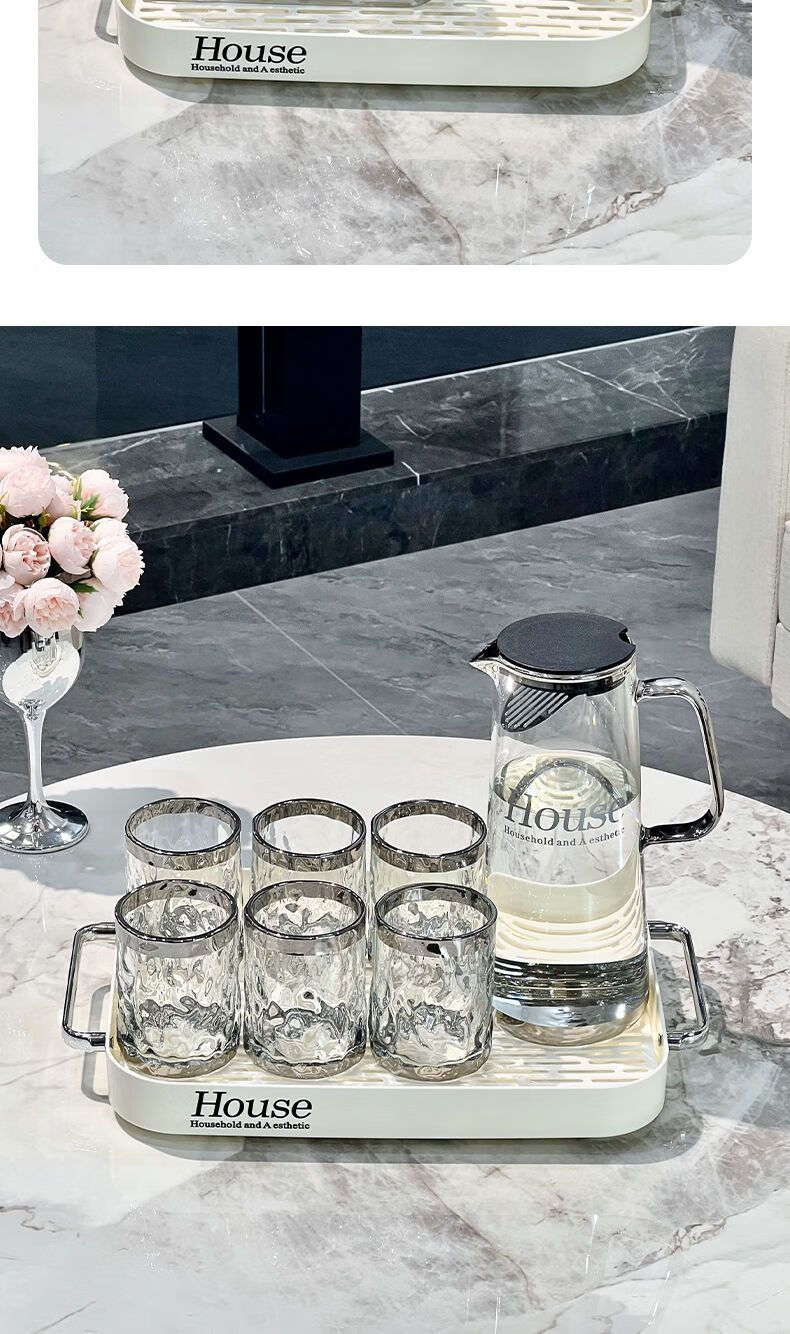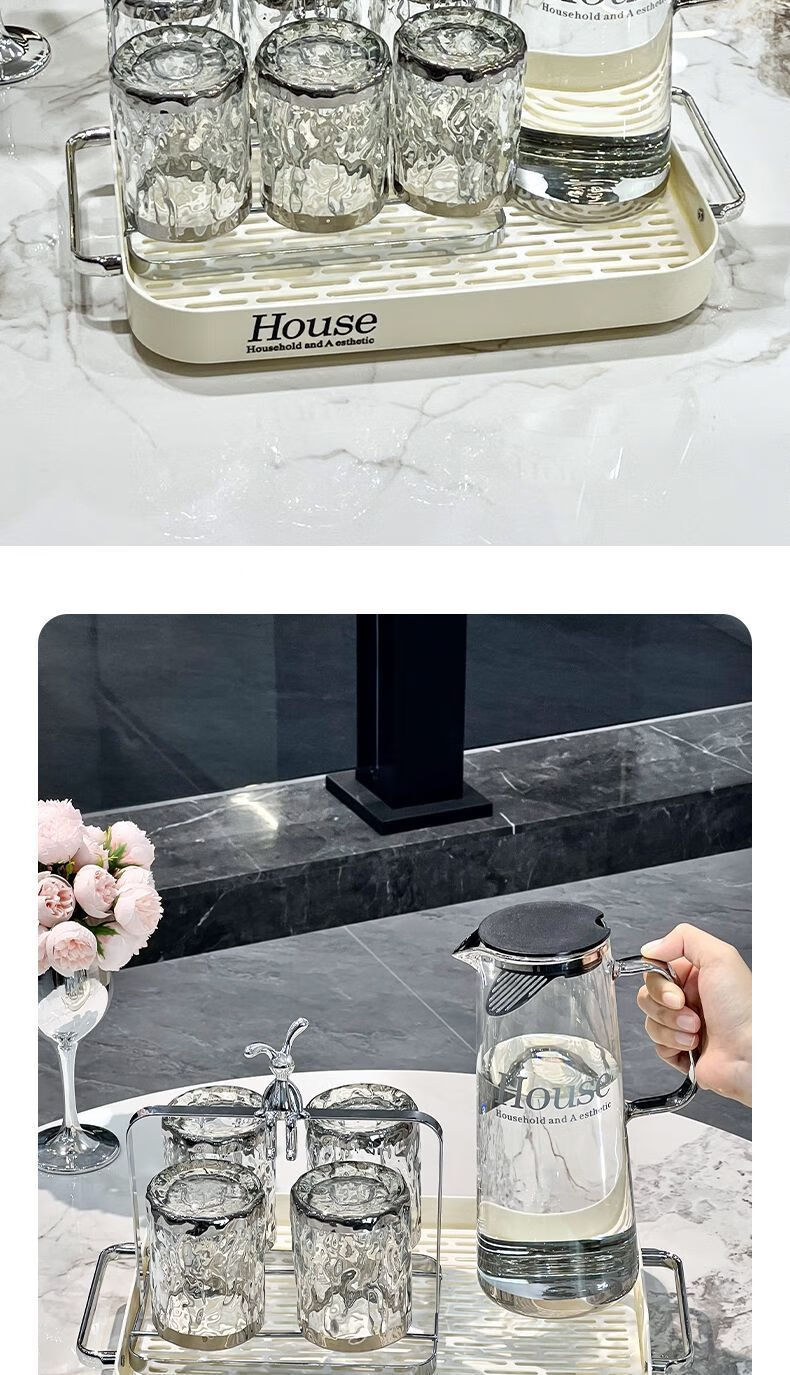 GUIG light luxury cold kettle household water utensil set living room high borosilicate glass cold kettle cup high temperature resistance large capacity light luxury silver-plated water ripple cup - four pieces