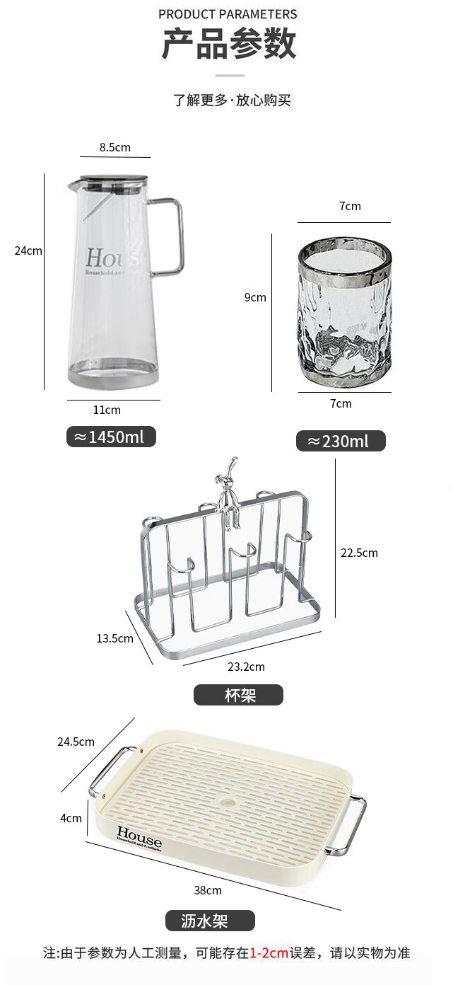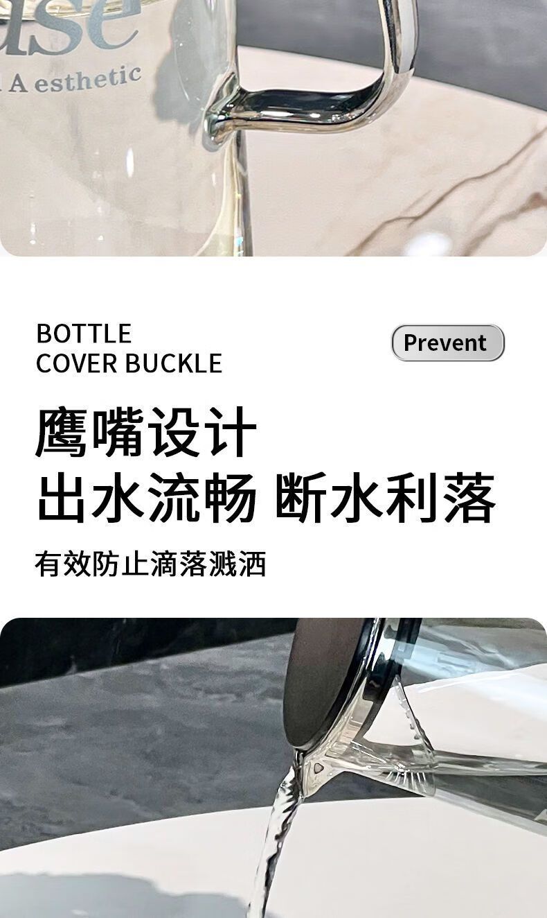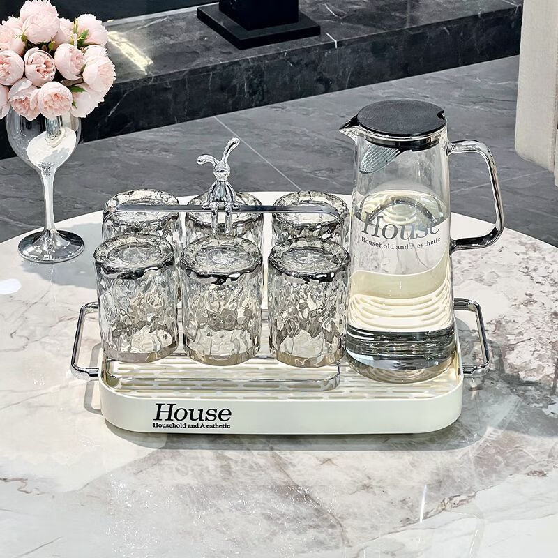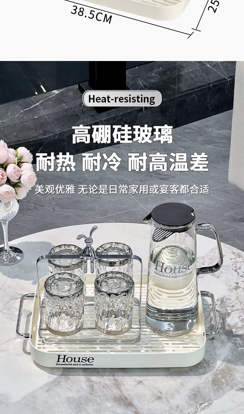 GUIG light luxury cold kettle household water utensil set living room high borosilicate glass cold kettle cup high temperature resistance large capacity light luxury silver-plated water ripple cup - four pieces
