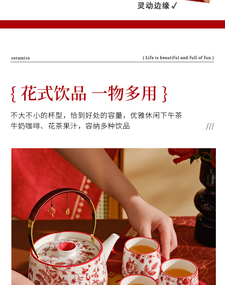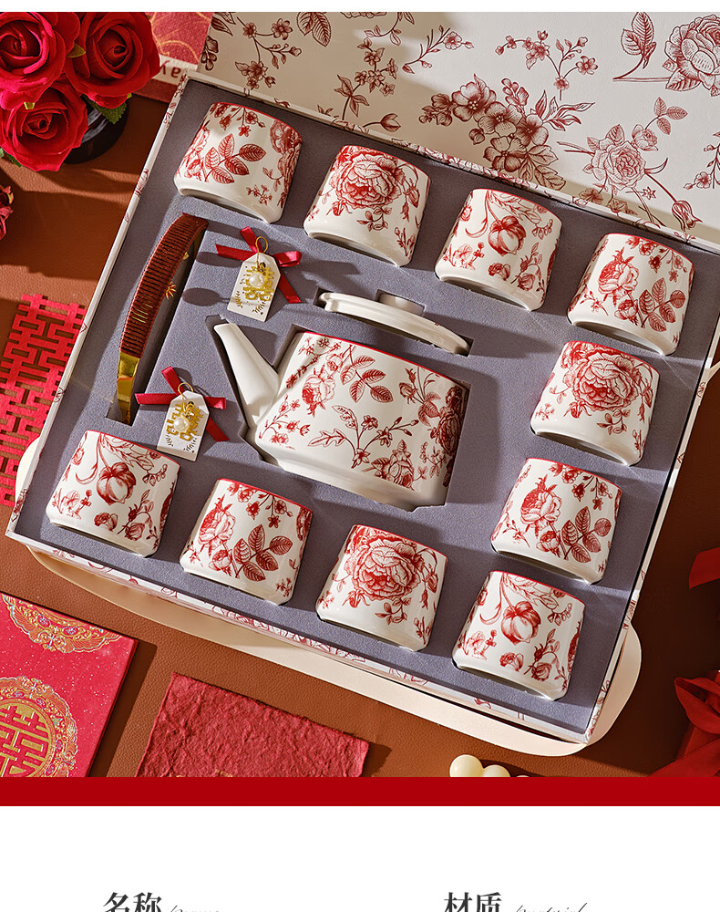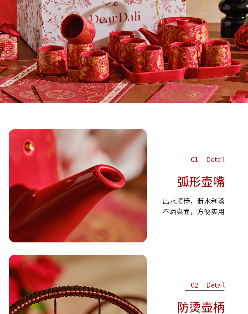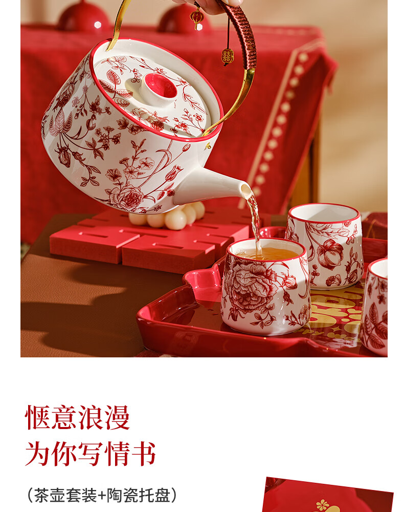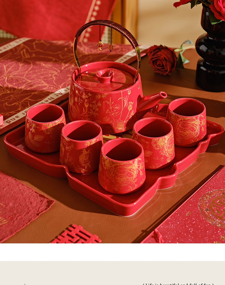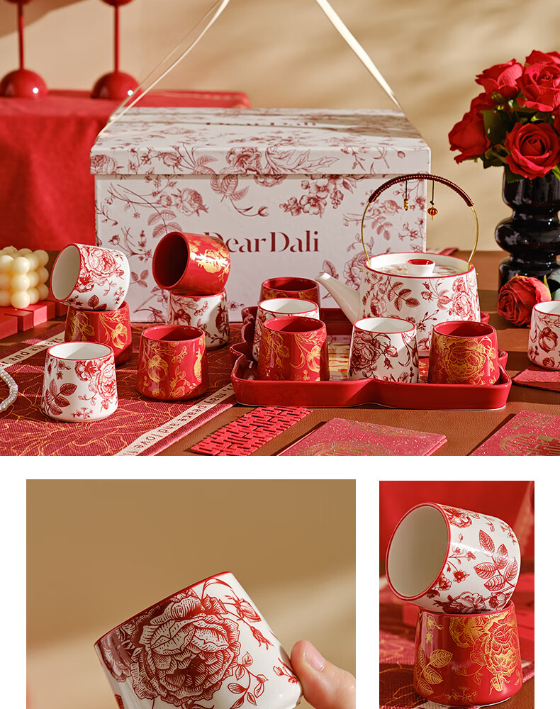 DearDali Tea Ceremony Tea Set Teapot Tea Cup Set Home Wedding Gift for Best Friend Bride and Couple Wedding Engagement Gift One Pot Six Cups White