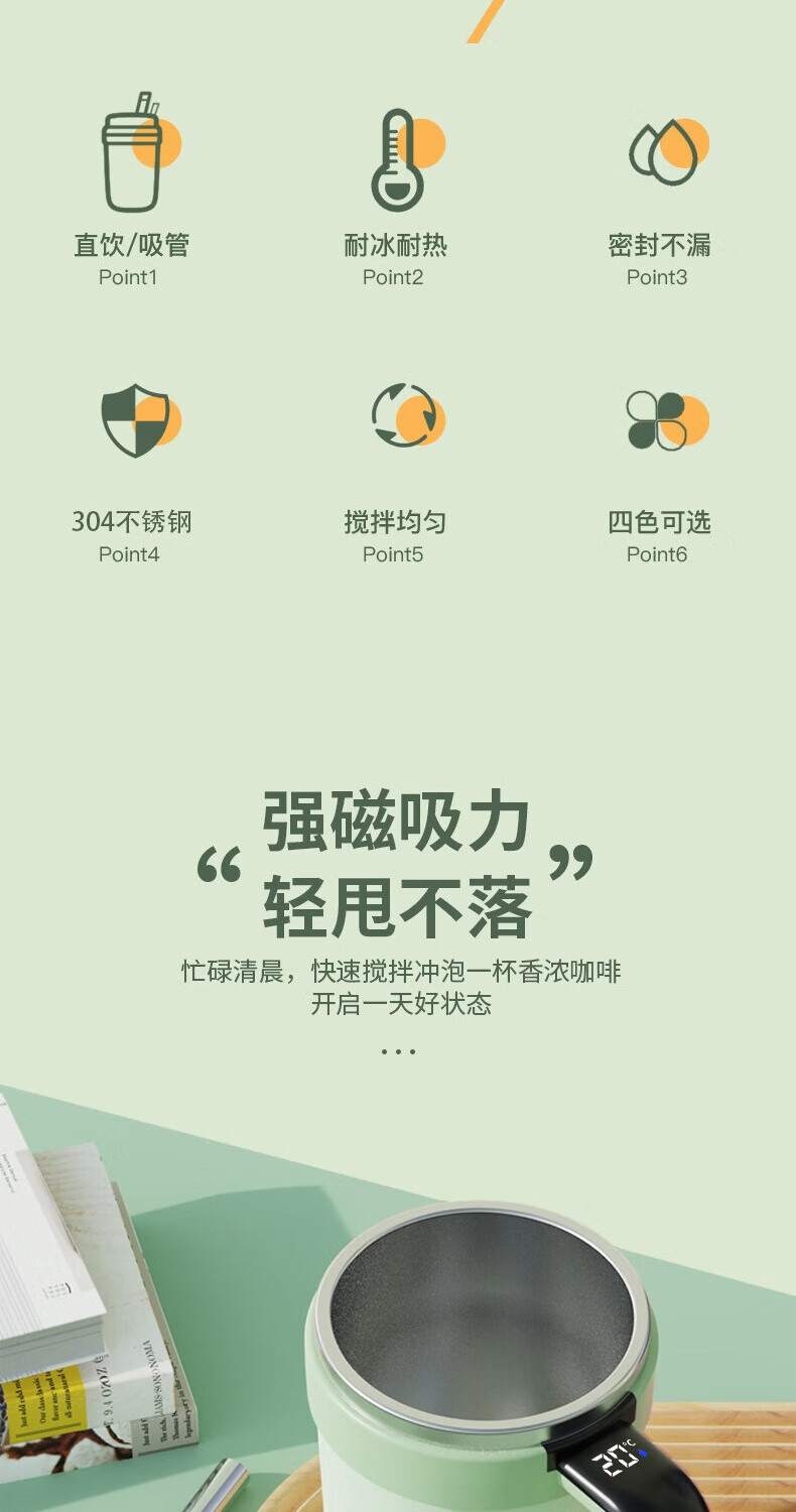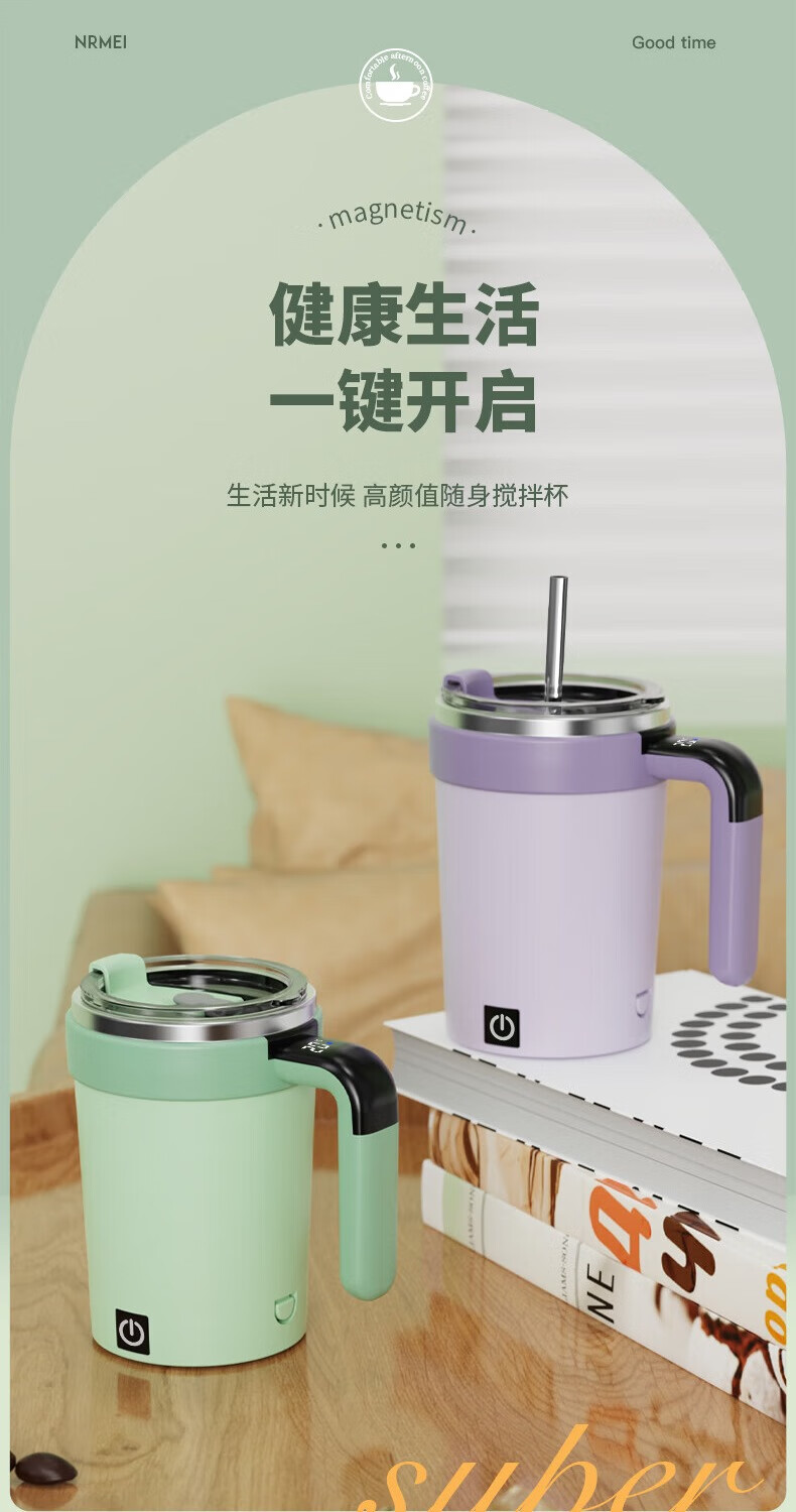 Detachable split mixing cup, lazy coffee cup, intelligent temperature measuring electric soy milk cup, light purple