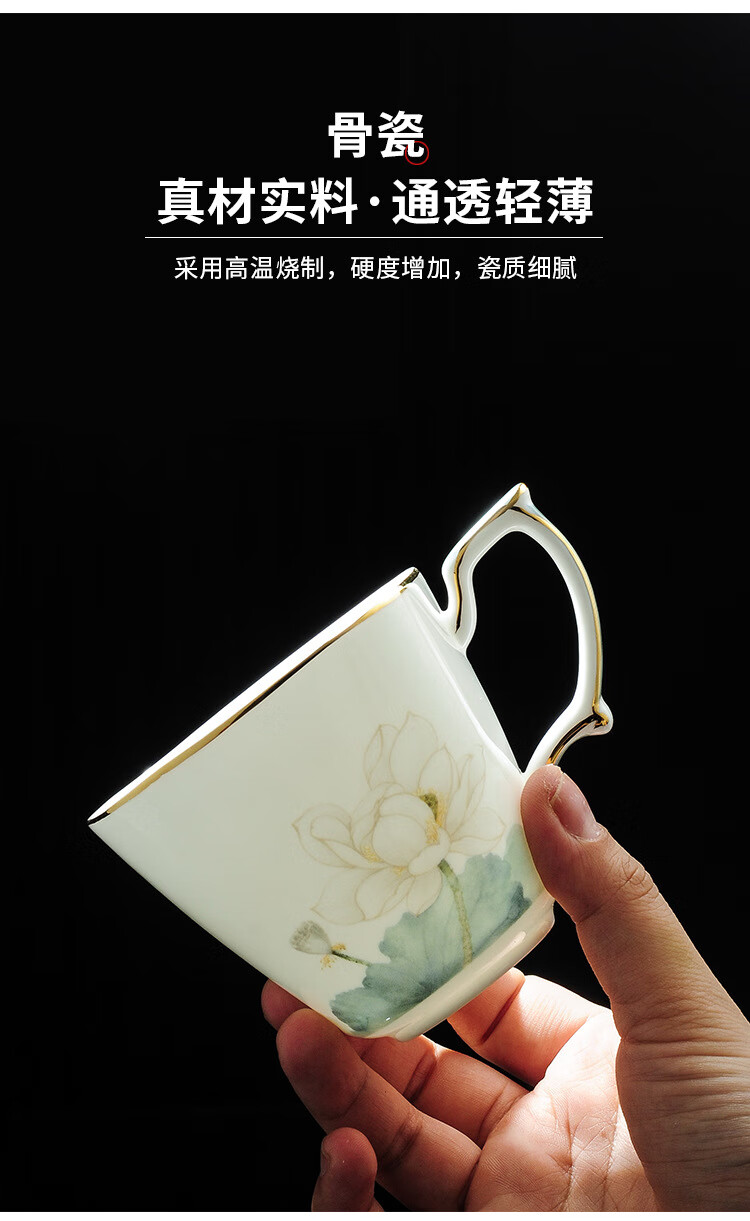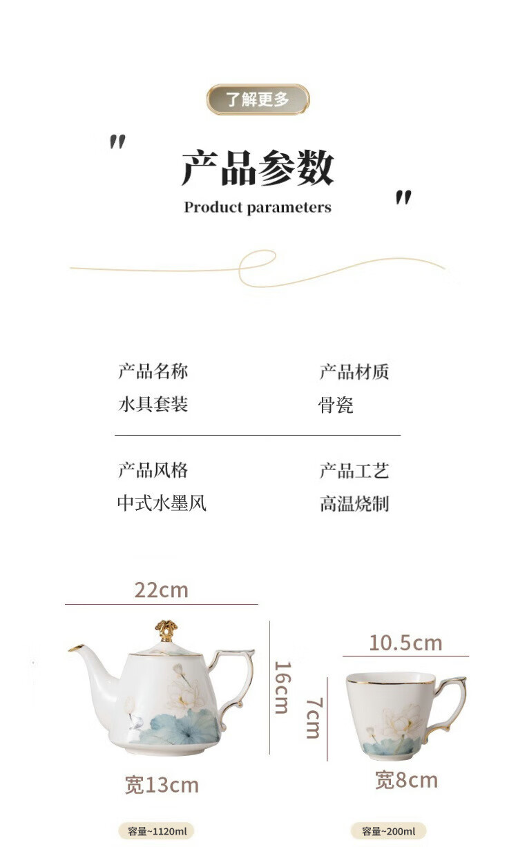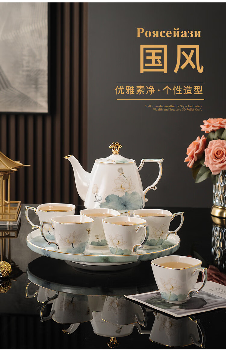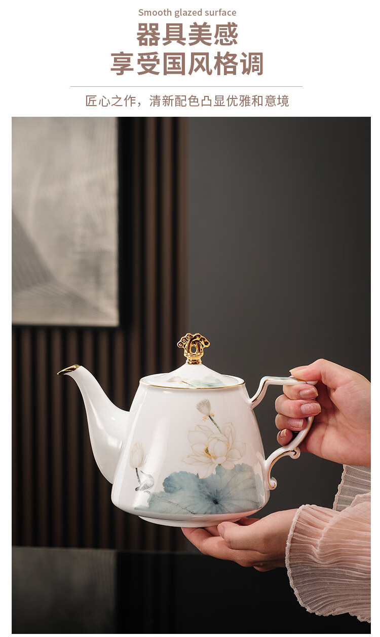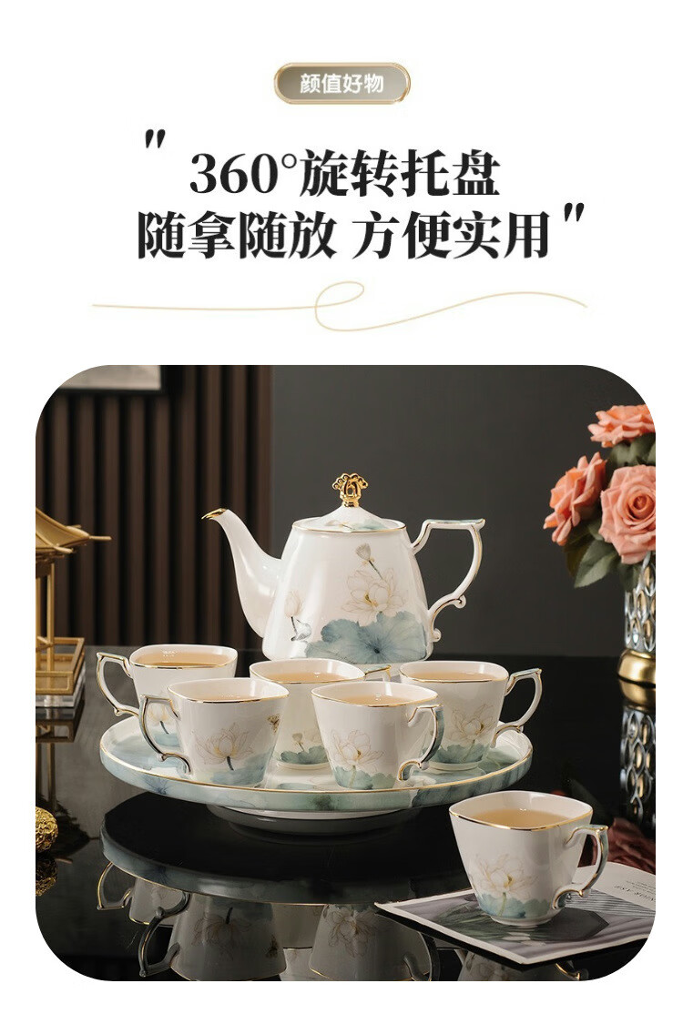 LOEB bone china rotatable water set tea set teapot tea cup set opening housewarming gift light luxury high-end gift box gift bone china ink leaf white lotus set-gift box