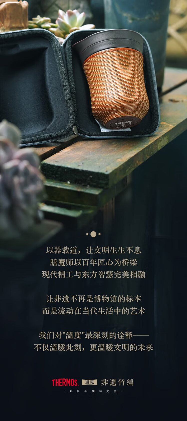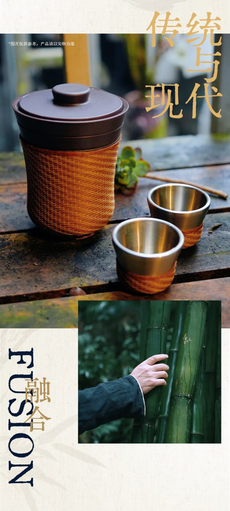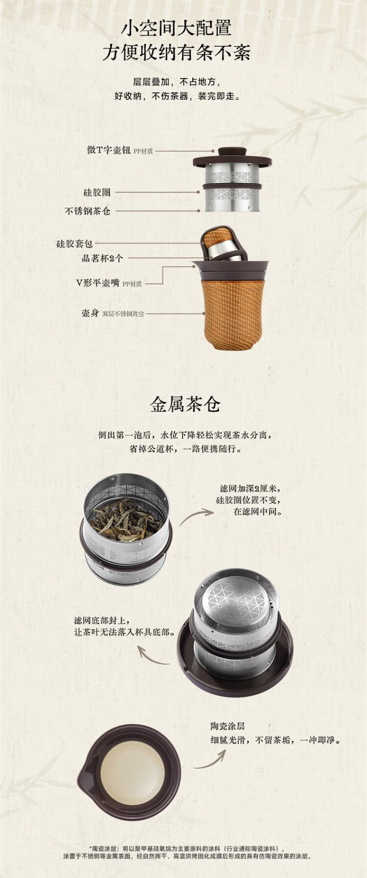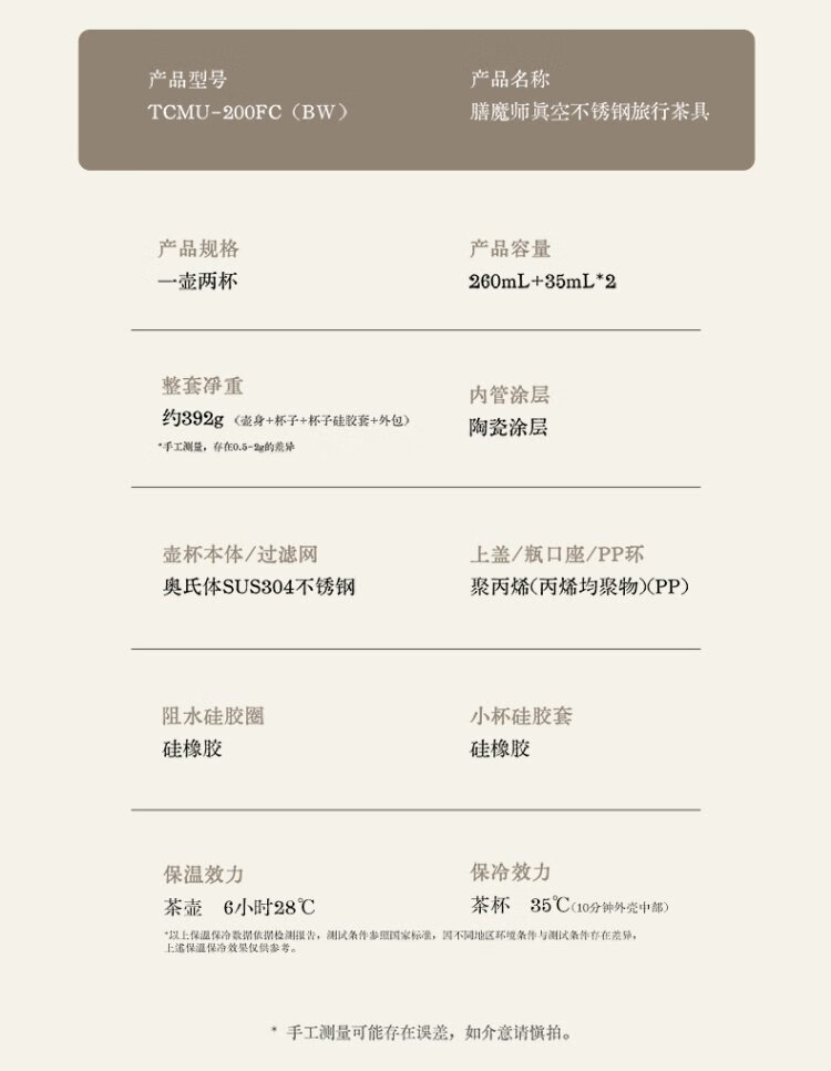 Thermos Travel Tea Set Outdoor Camping Portable Teapot Teacup Set Intangible Cultural Heritage Porcelain Body Bamboo Woven Holiday Gift TCMU Coated Liner Matte Brown (No Base Version)
