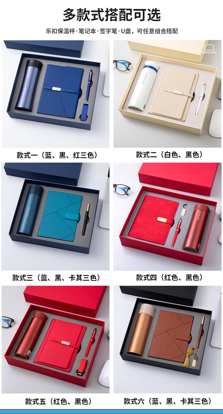 LOCK&LOCK winter souvenir gift box, practical small gifts, company team building annual meeting prizes, trade union activities, employee induction thermos cup, B2 blue style four-piece set