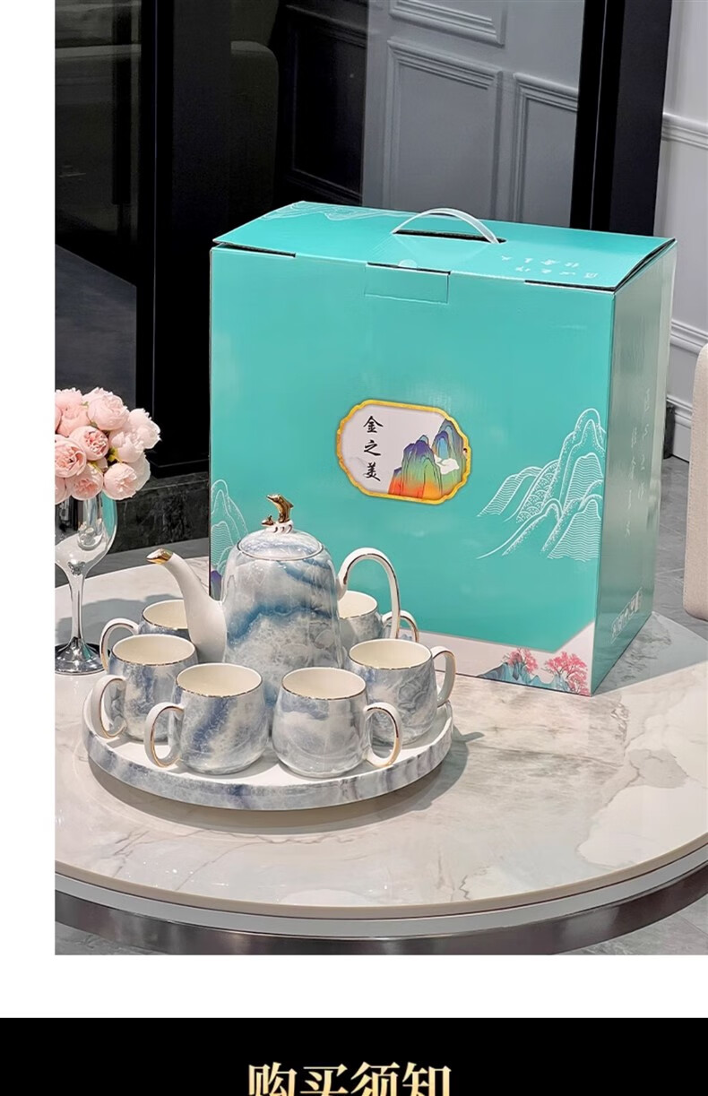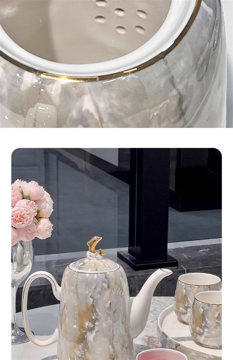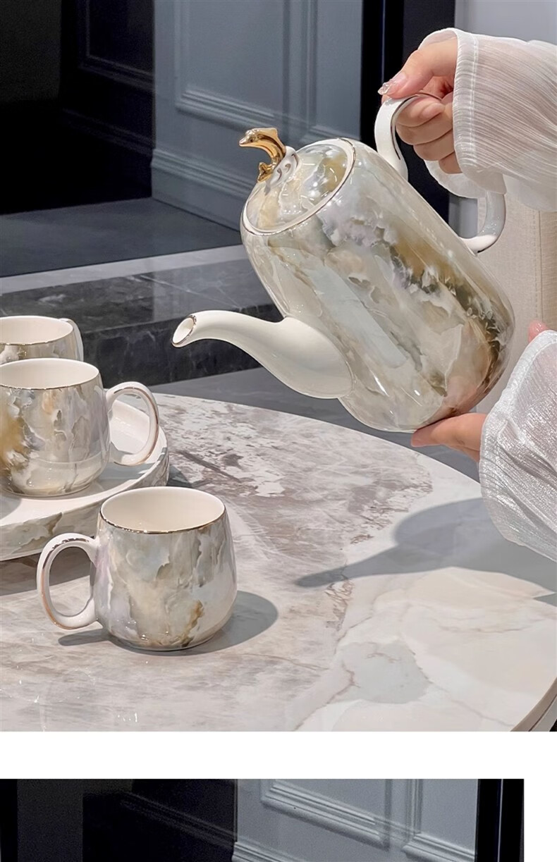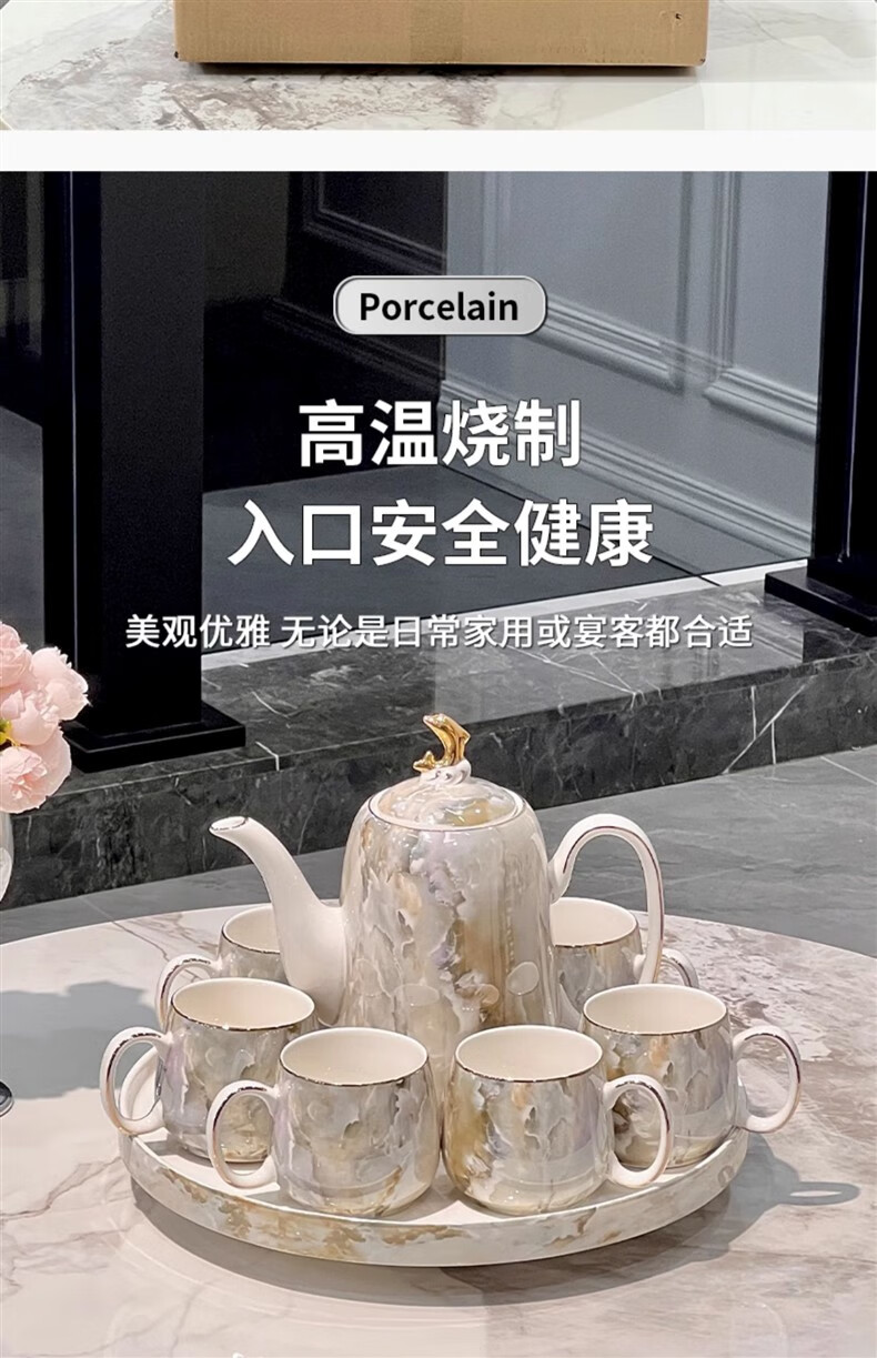 Light luxury high-end tea set 2025 new ceramic water cup teapot teacup home living room hospitality wedding gift warm yellow stone pattern dolphin tea set gift box set
