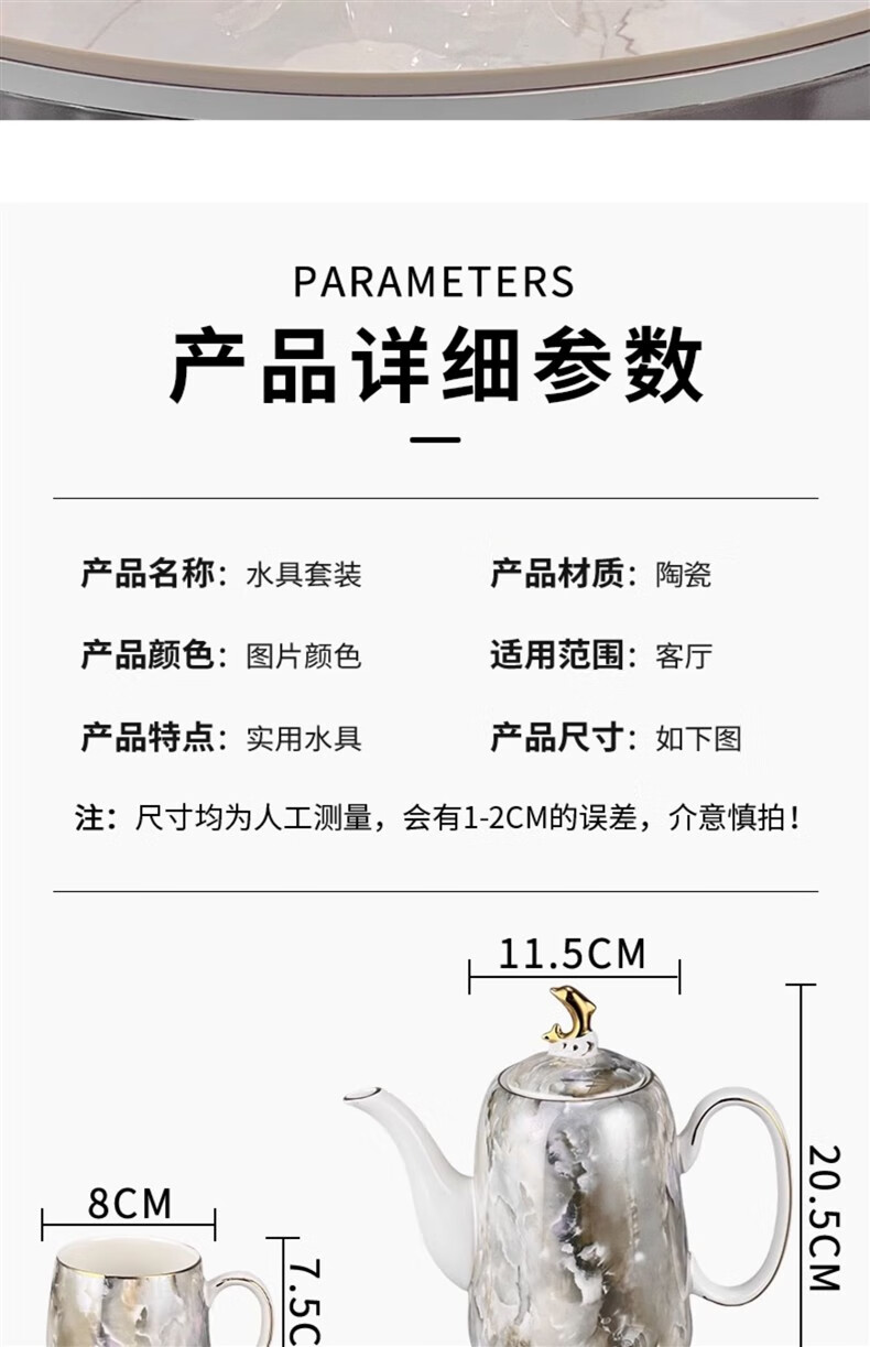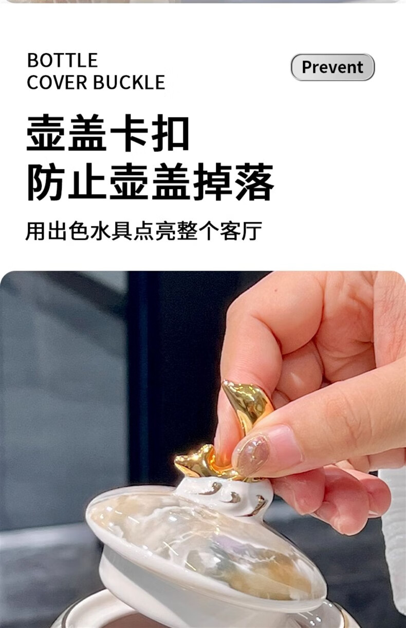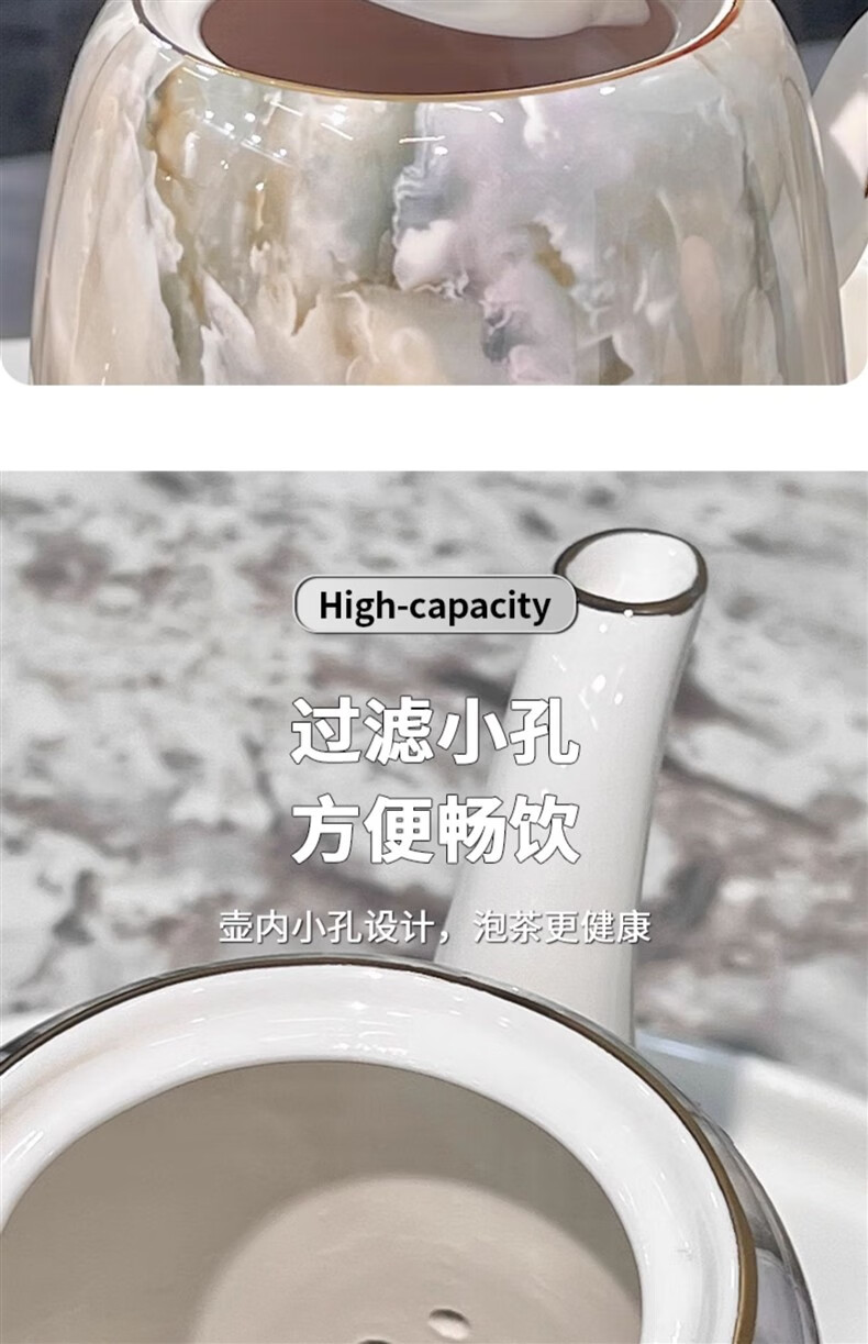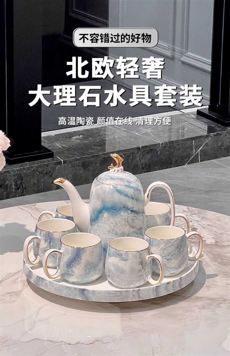 Light luxury high-end tea set 2025 new ceramic water cup teapot teacup home living room hospitality wedding gift warm yellow stone pattern dolphin tea set gift box set