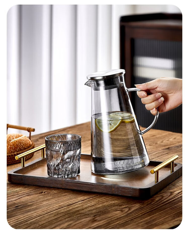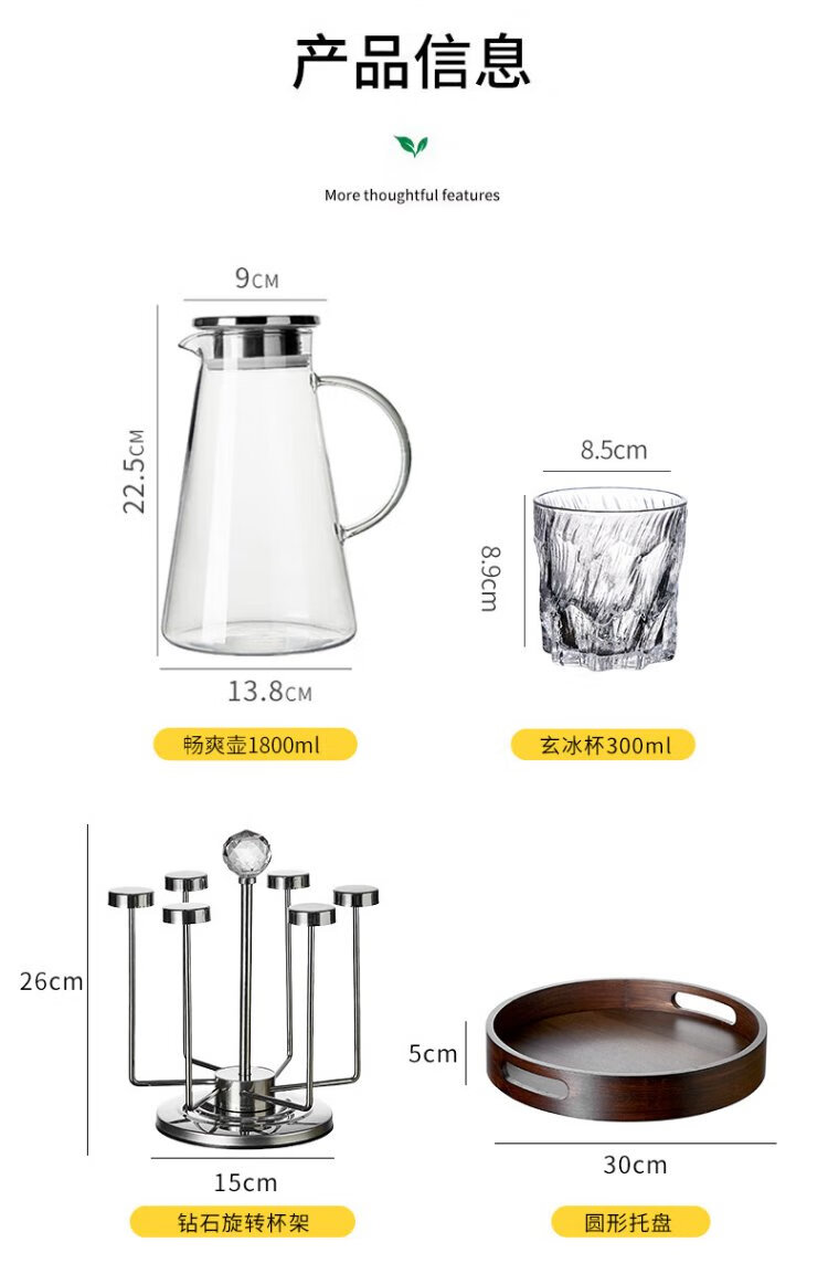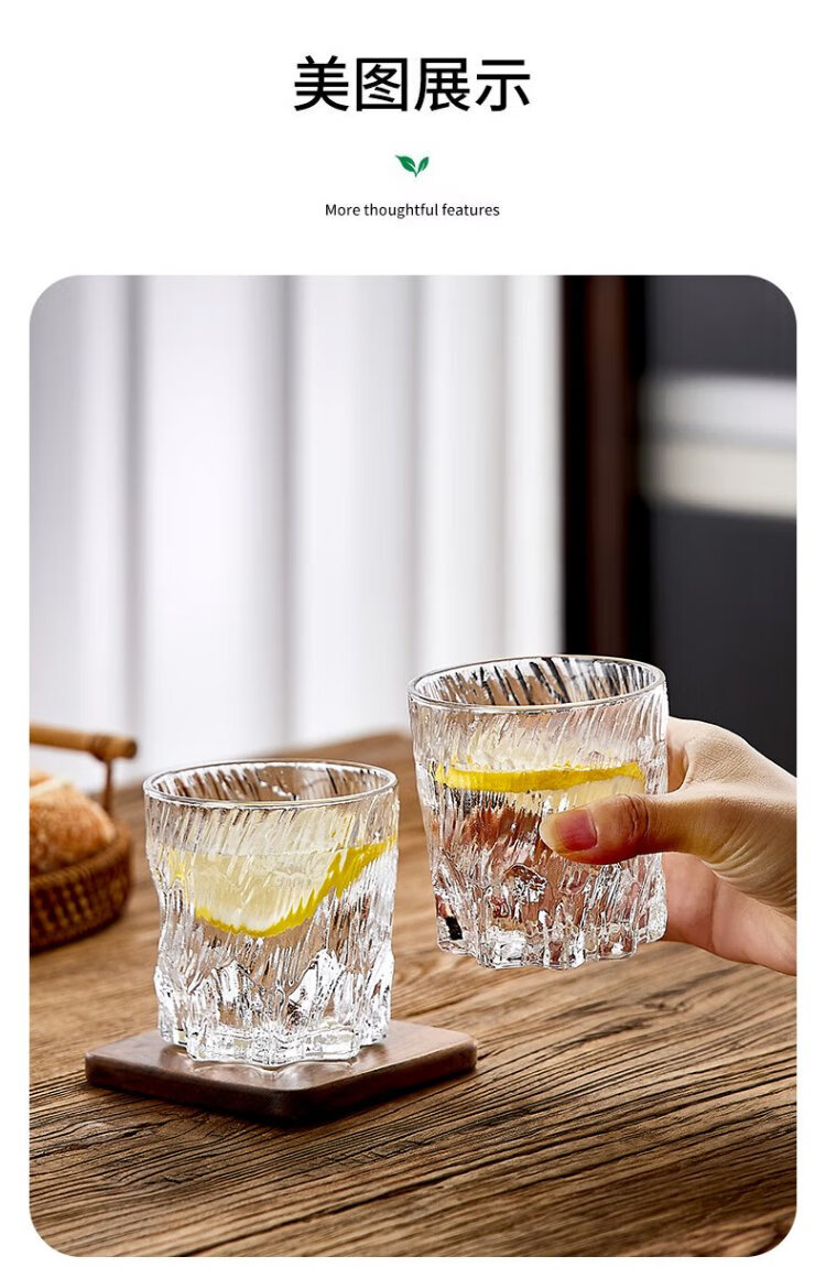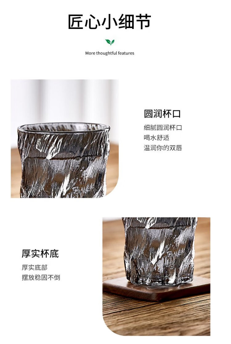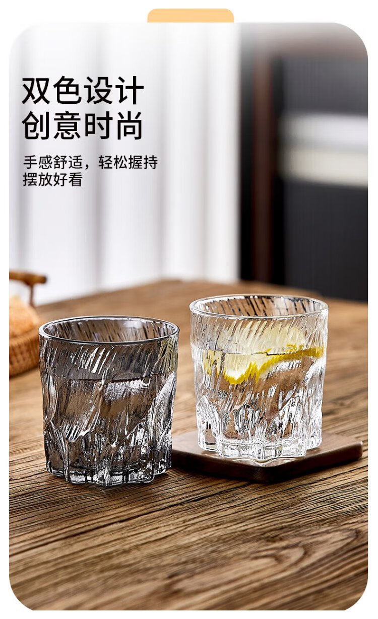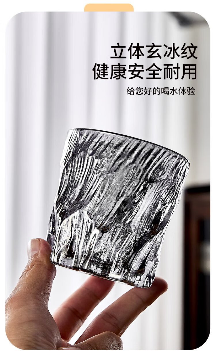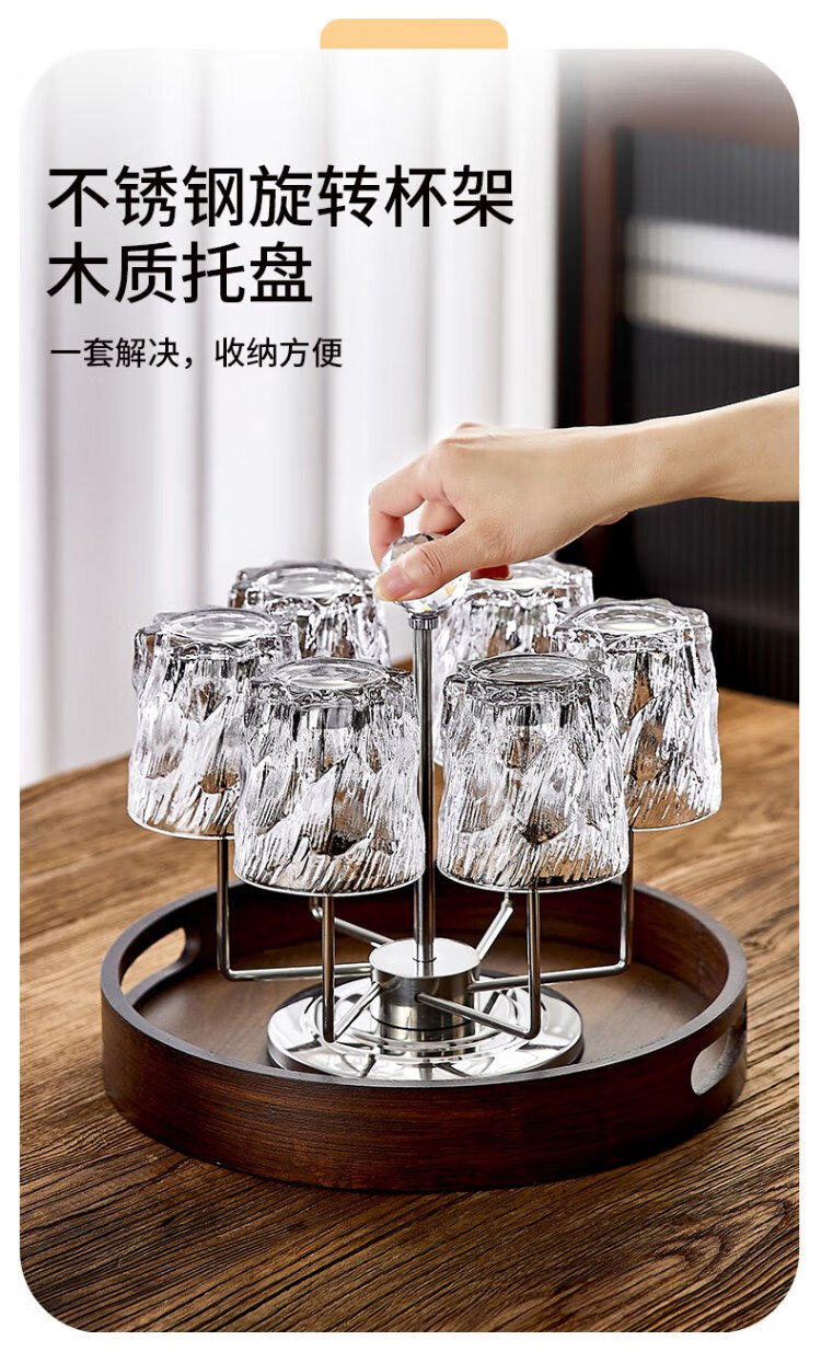 DELISOGA Glacier Glass Embossed Water Cup Home Hospitality Drinking Set High-end Light Luxury Red Beer and Wine Tea Cup Transparent - 6 Black Ice Cups + Rotating Metal Stand + Round Tray
