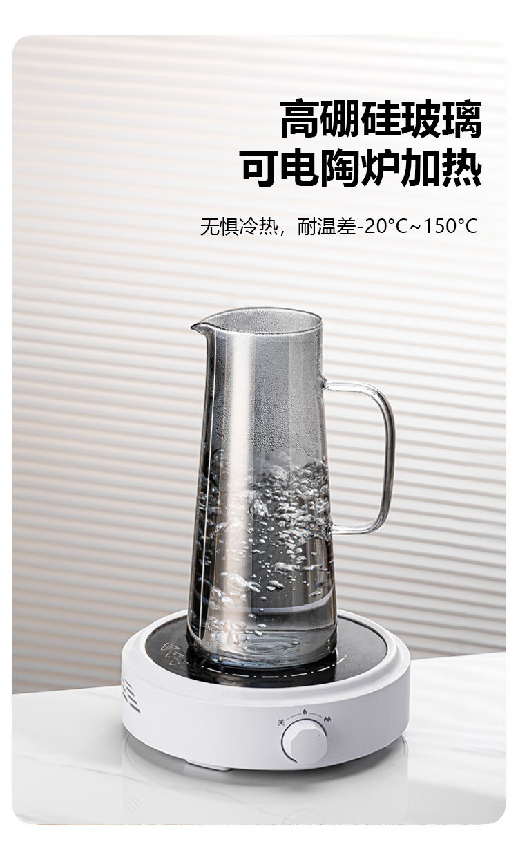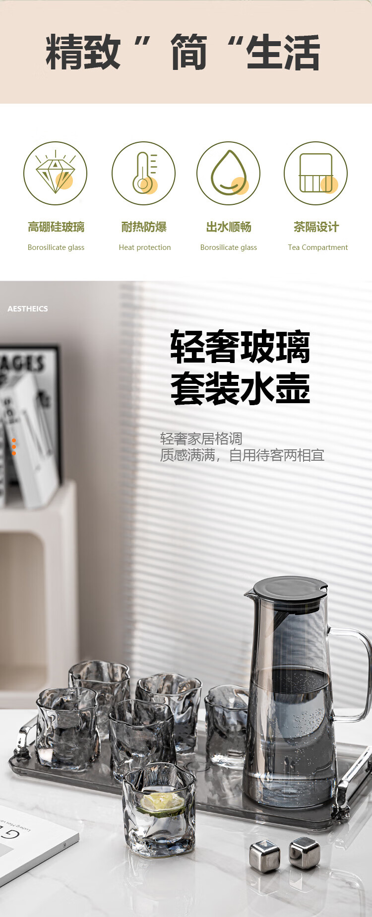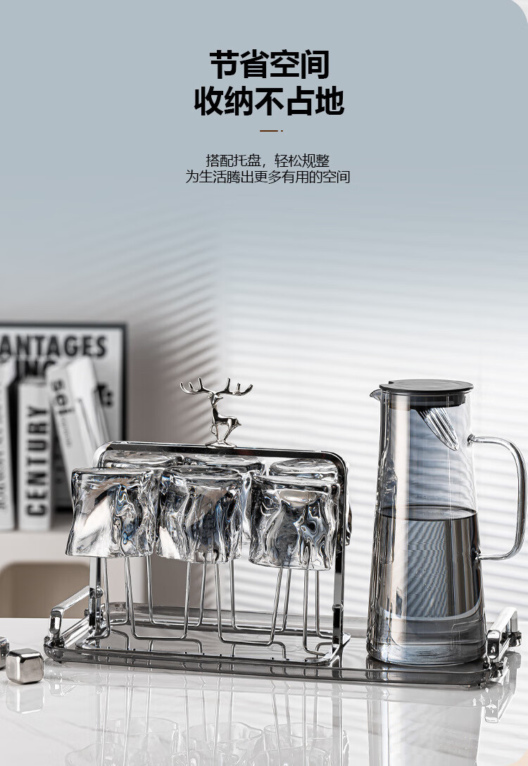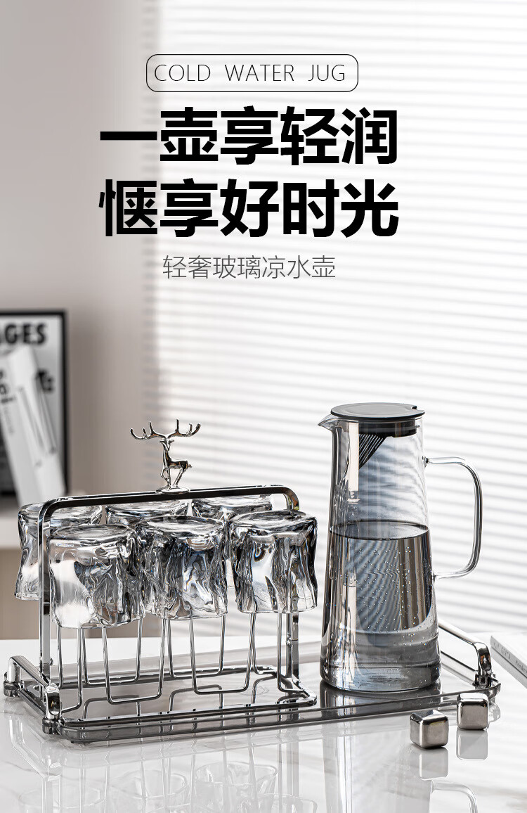 Light luxury high-end glass kettle set, kettle can be heated by open flame, high temperature resistant water cup, water set, tea kettle, 1 pot + 6 cups + cup holder + cup tray