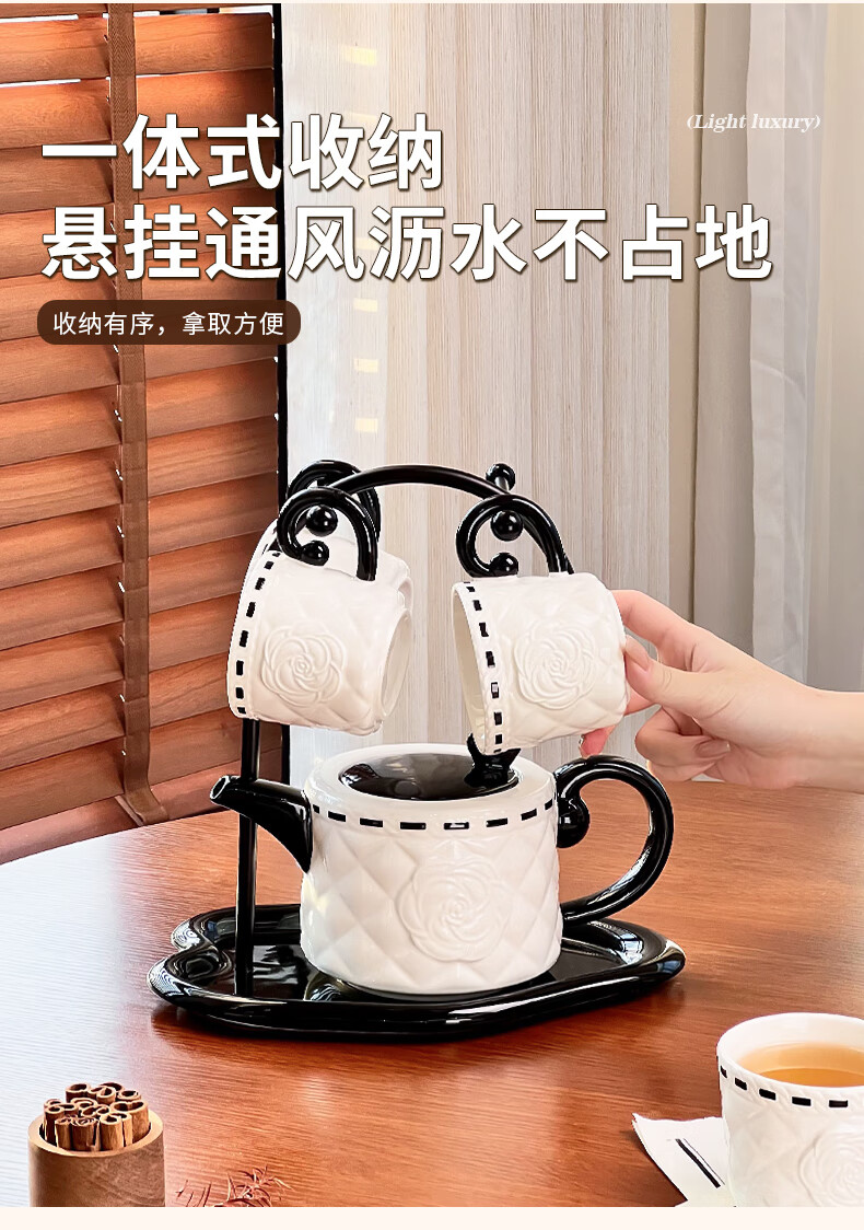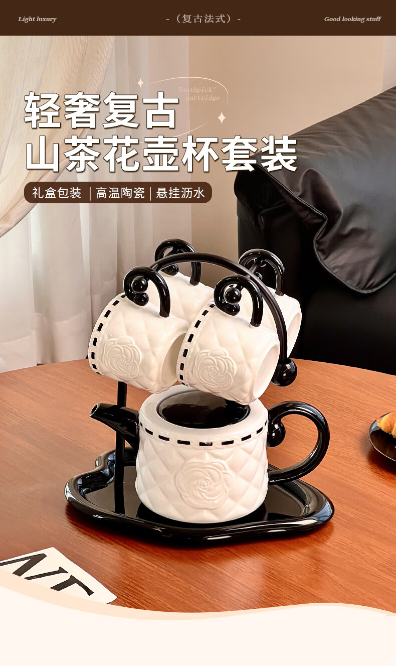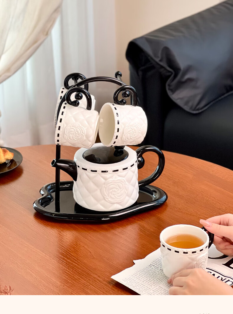 ZUNMOS small fragrant cup set French tea set water cup water set gift box wedding gift housewarming souvenir small fragrant water set gift box 1 pot 4 cups 1 shelf